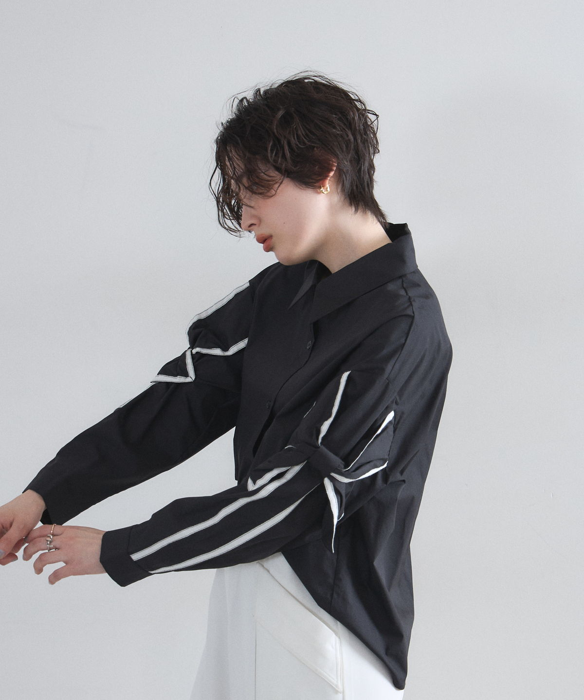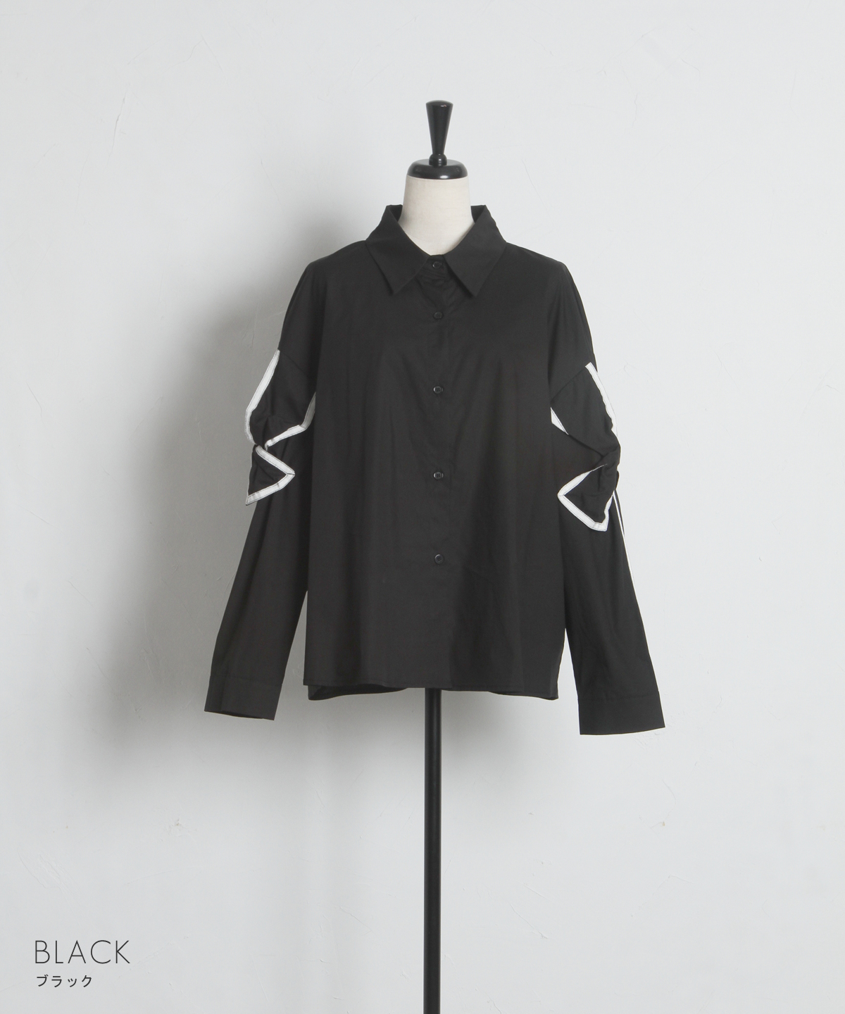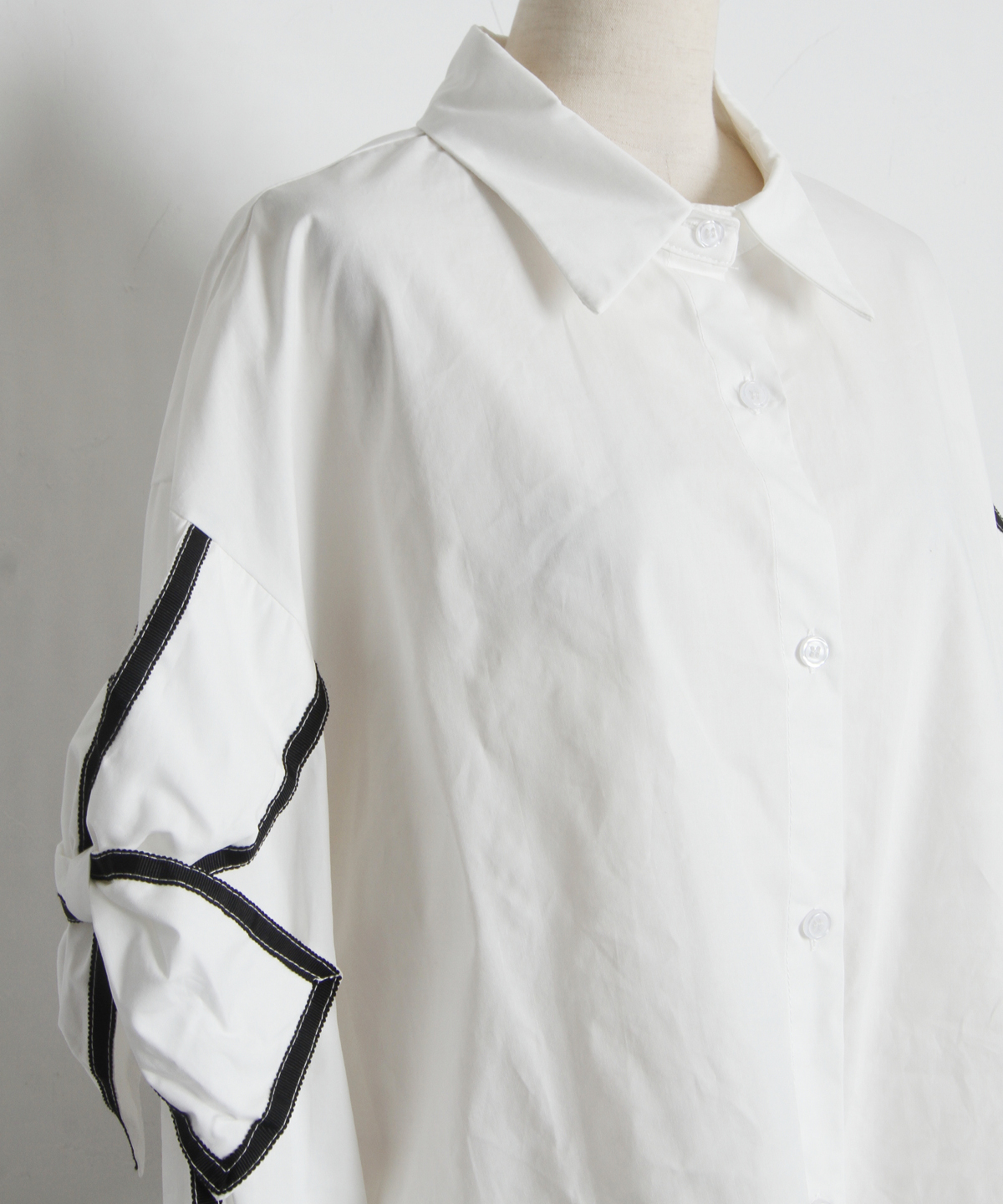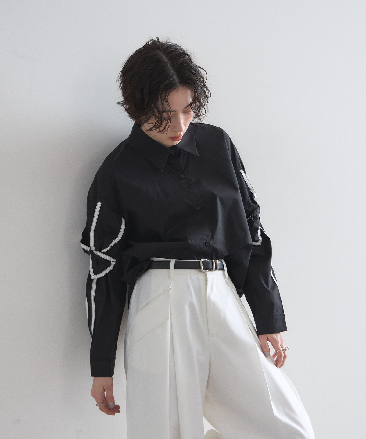 | 商品説明 | : | 袖のリボンデザインが目を惹く、大人可愛い主役級ブラウス。 袖にあしらわれた大胆なバイカラーのリボンモチーフが、1枚で華やかな印象を与えてくれるブラウスです。 ゆったりとしたワイドシルエットで抜け感を出しつつ、クリーンなシャツ襟が上品さをキープ。 モノトーン配色なので甘くなりすぎず、パンツにもスカートにも合わせやすい一着です。 |
