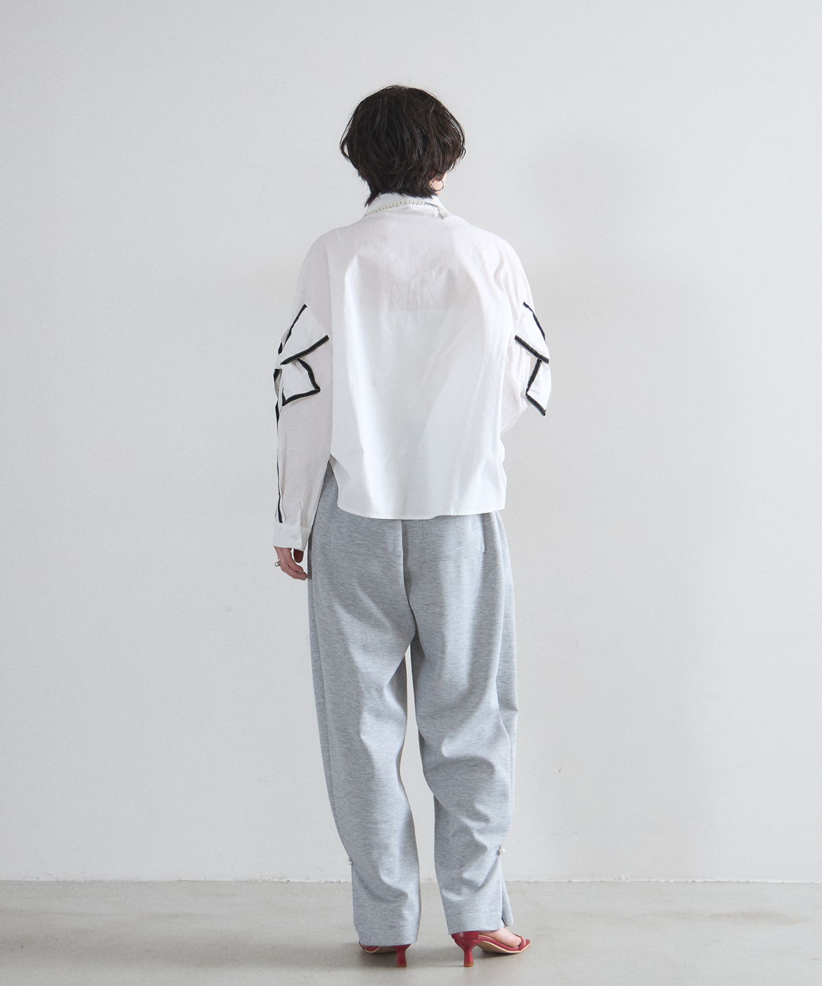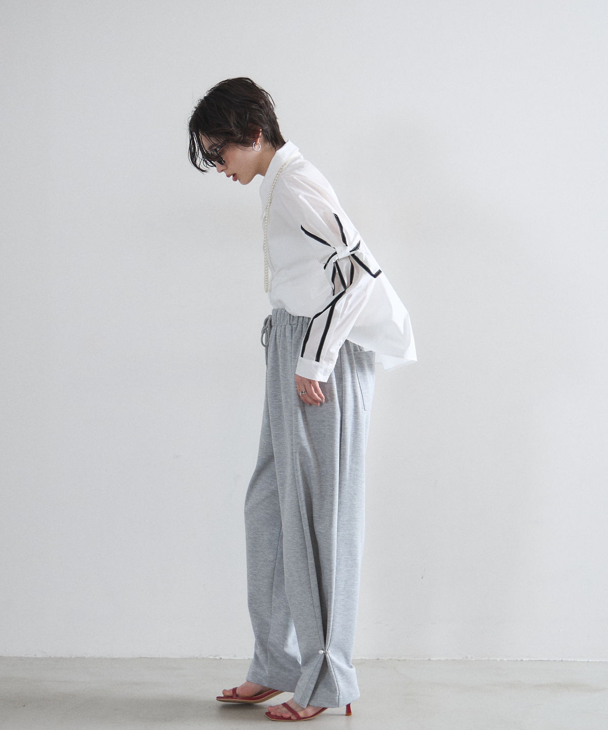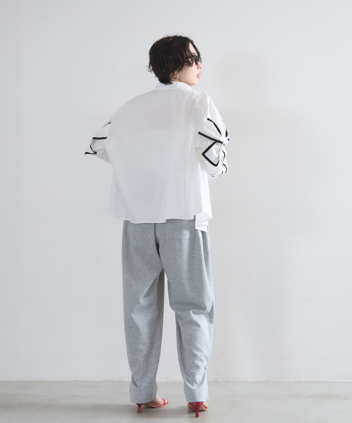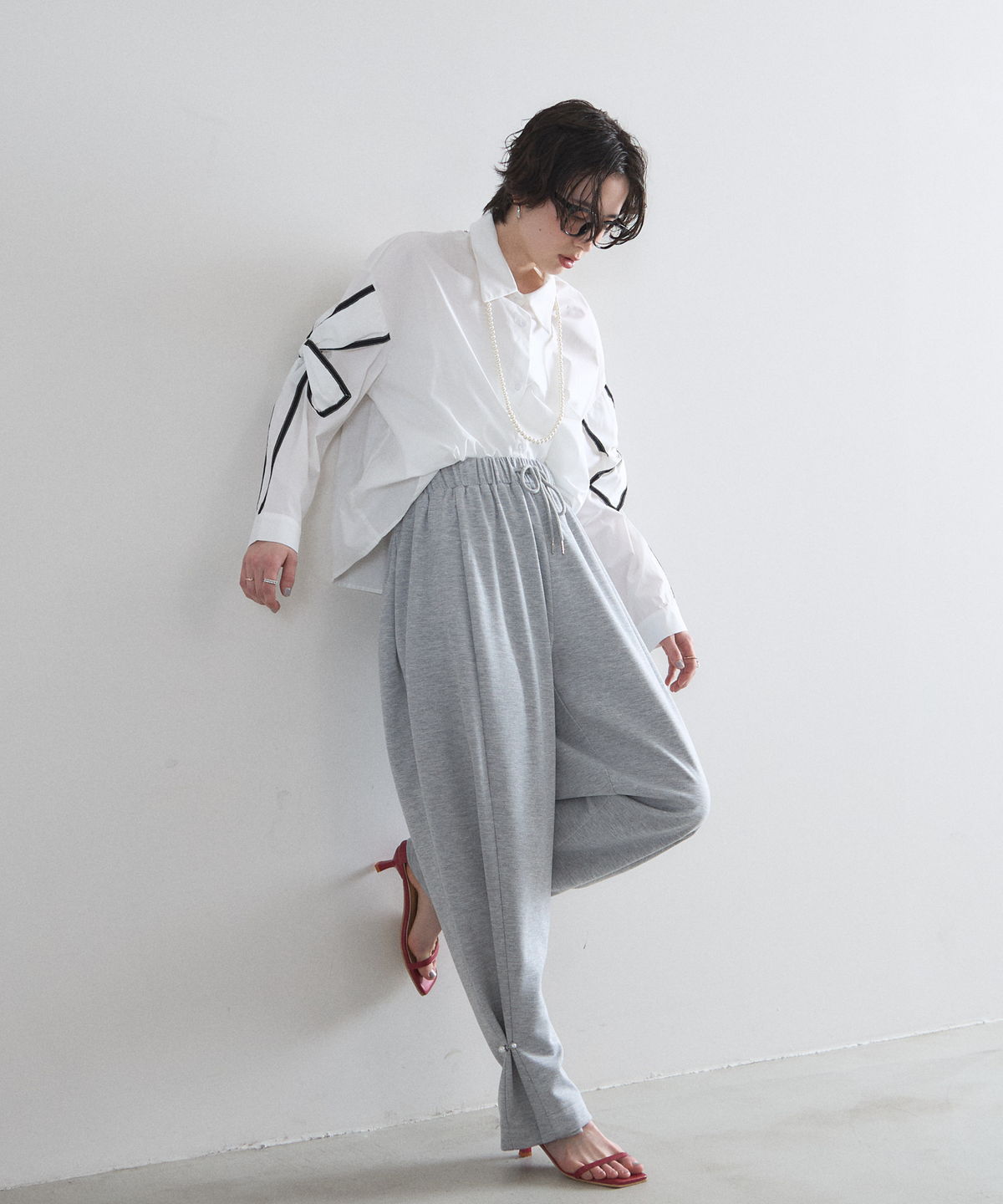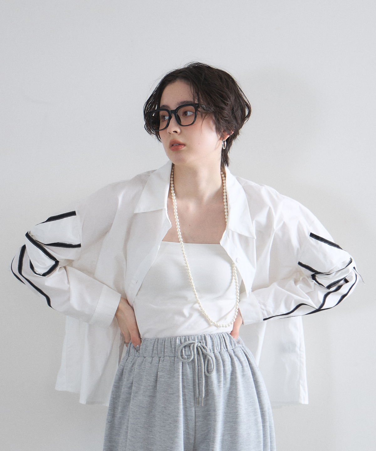 | 商品説明 | : | 袖のリボンデザインが目を惹く、大人可愛い主役級ブラウス。 袖にあしらわれた大胆なバイカラーのリボンモチーフが、1枚で華やかな印象を与えてくれるブラウスです。 ゆったりとしたワイドシルエットで抜け感を出しつつ、クリーンなシャツ襟が上品さをキープ。 モノトーン配色なので甘くなりすぎず、パンツにもスカートにも合わせやすい一着です。 |