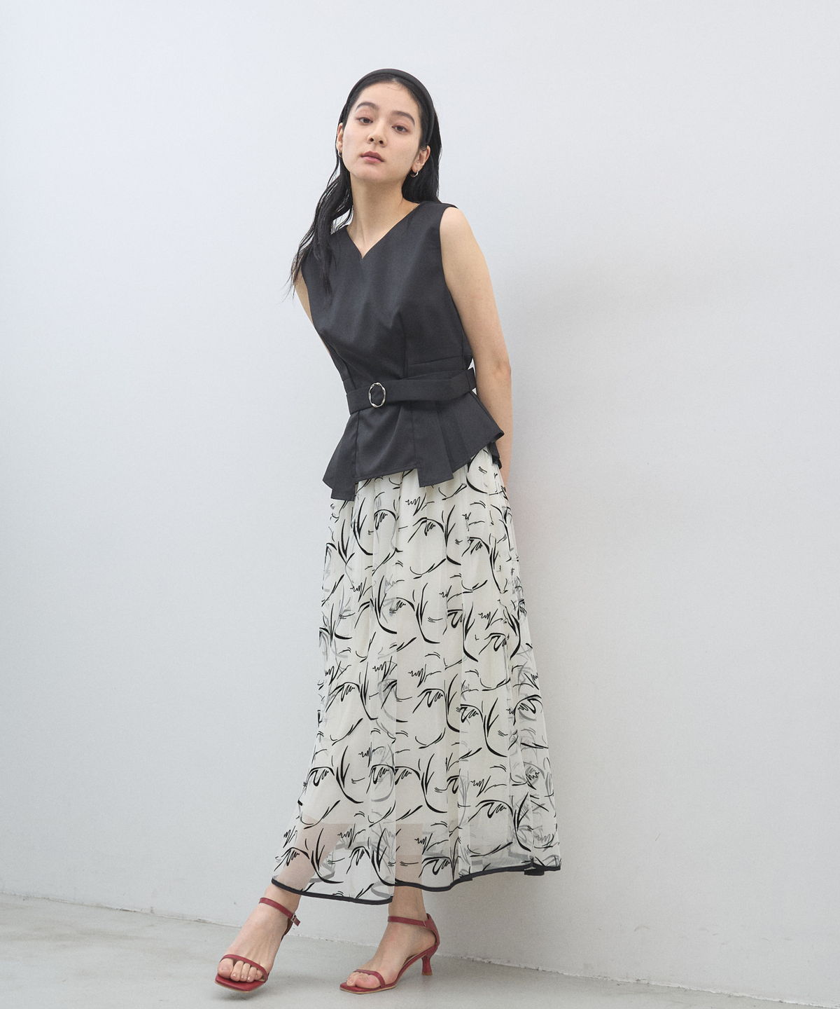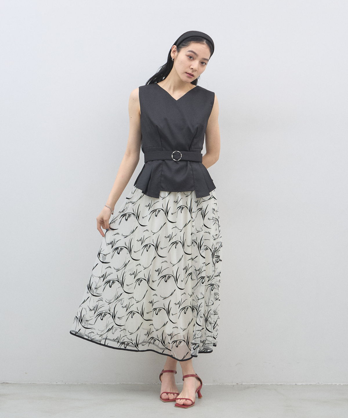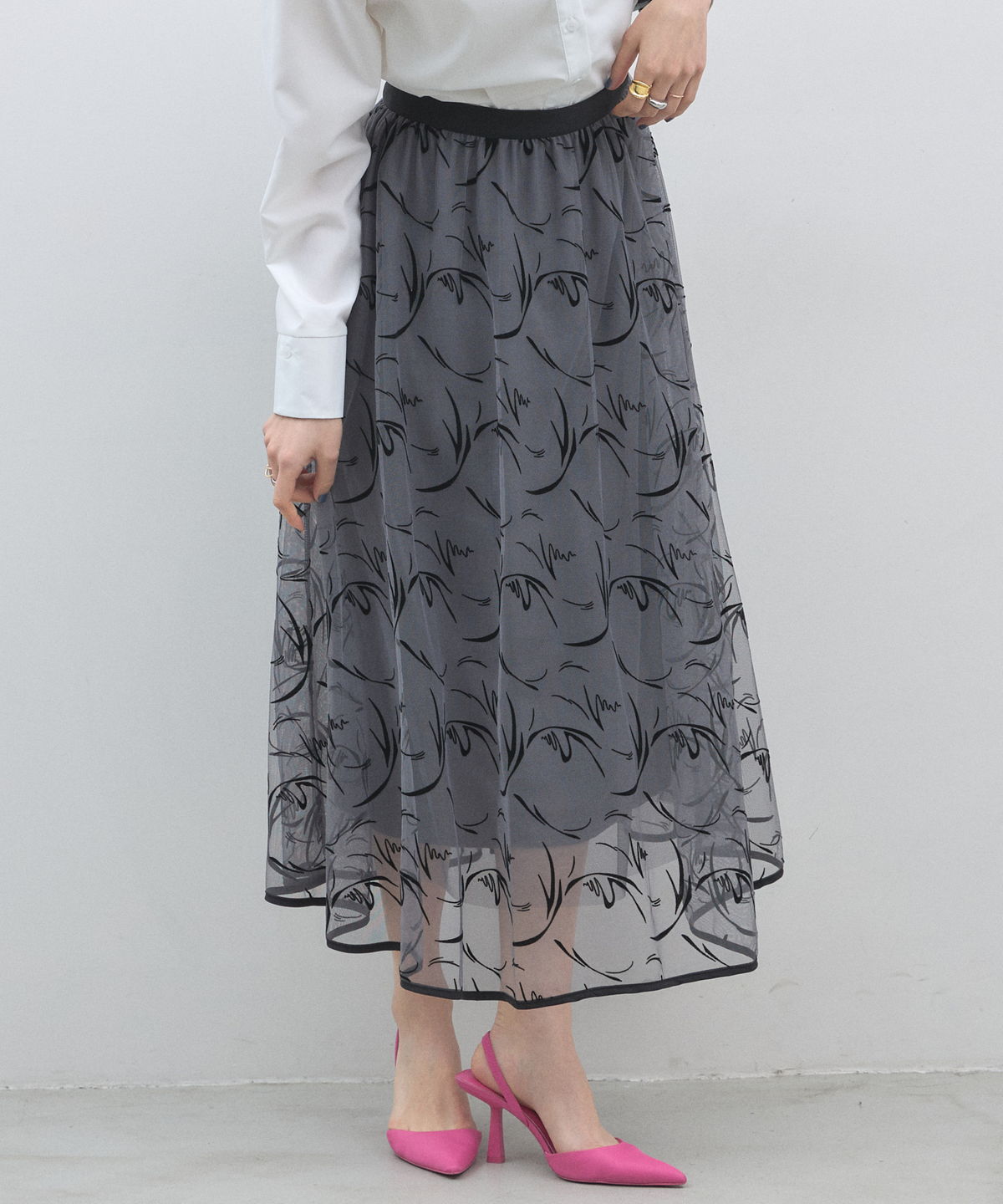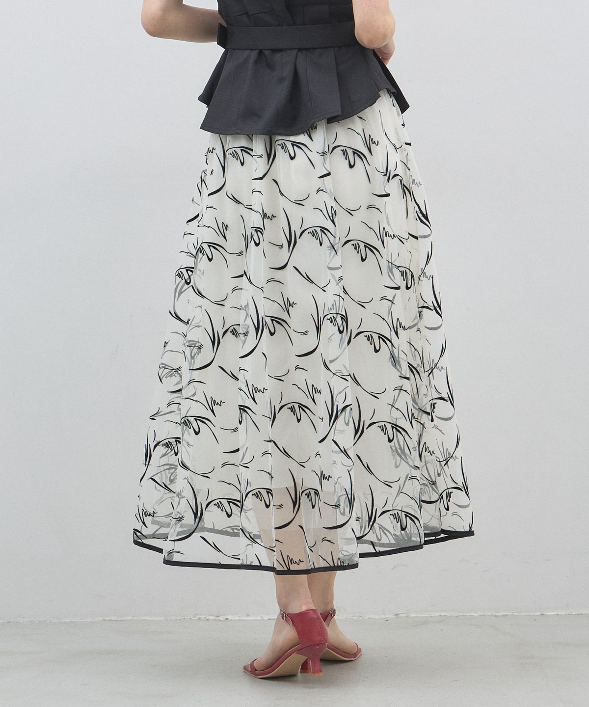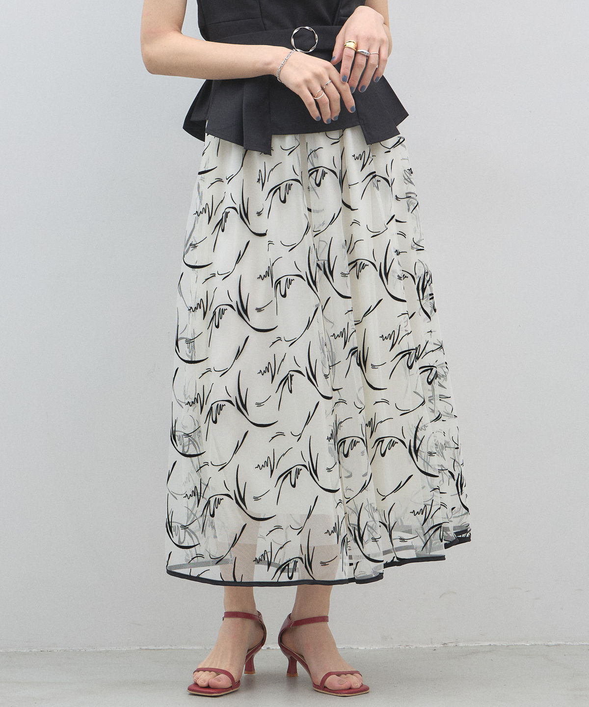 | 商品説明 | : | 軽やかなシアー素材とニュアンス柄で魅せる、大人シックなフレアスカート。 透け感のある素材に、動きのあるライン柄を施した主役級の一枚。 落ち着いた配色が洗練された印象を与えます。 ウエストマークが引き締め役となり、きれいめなスタイリングが叶います。 |