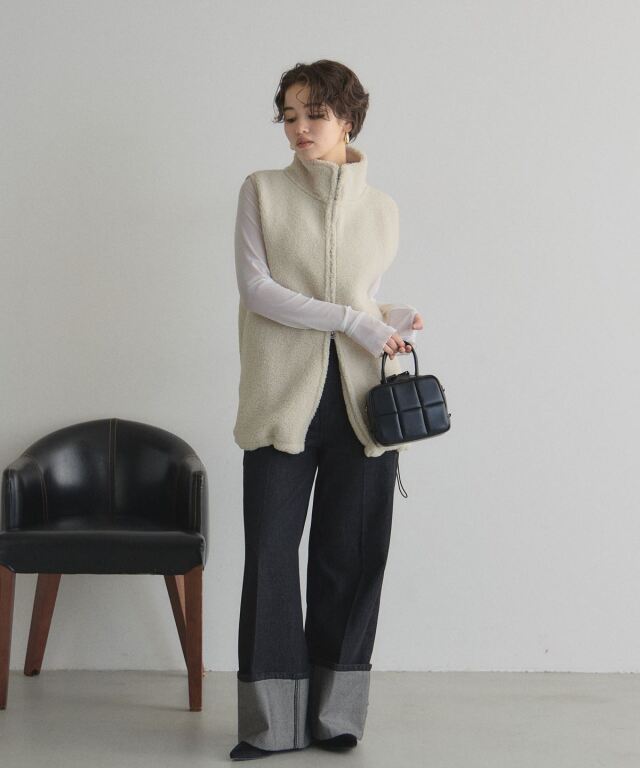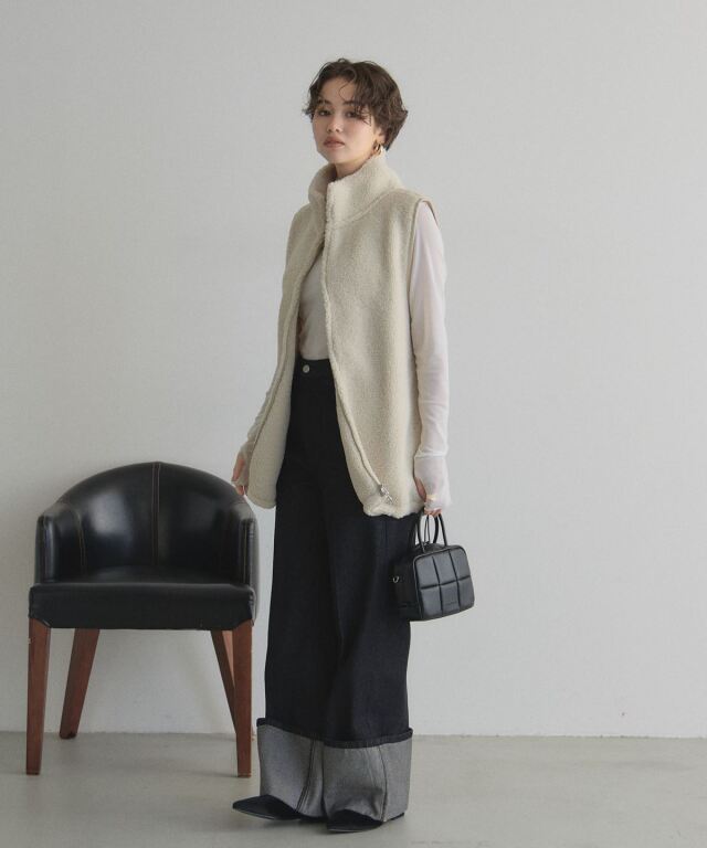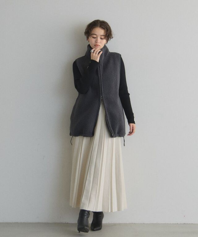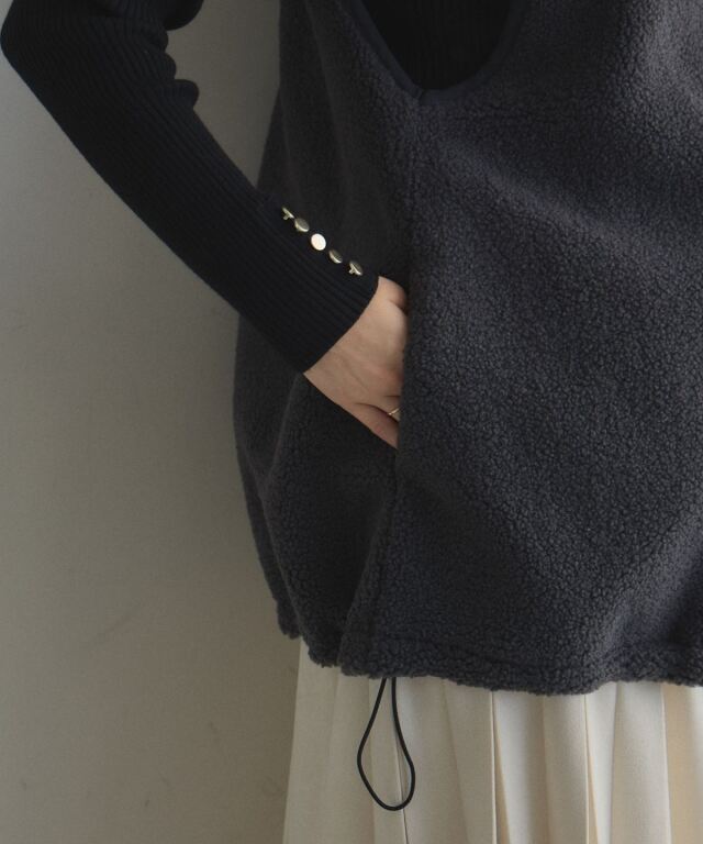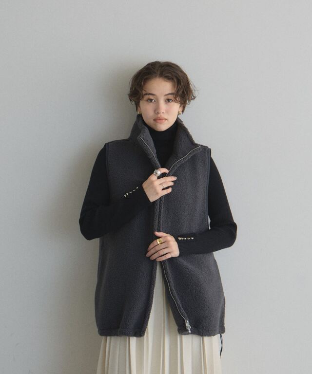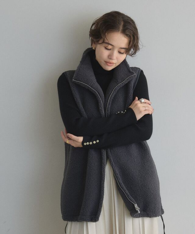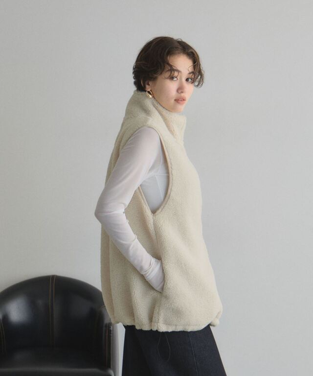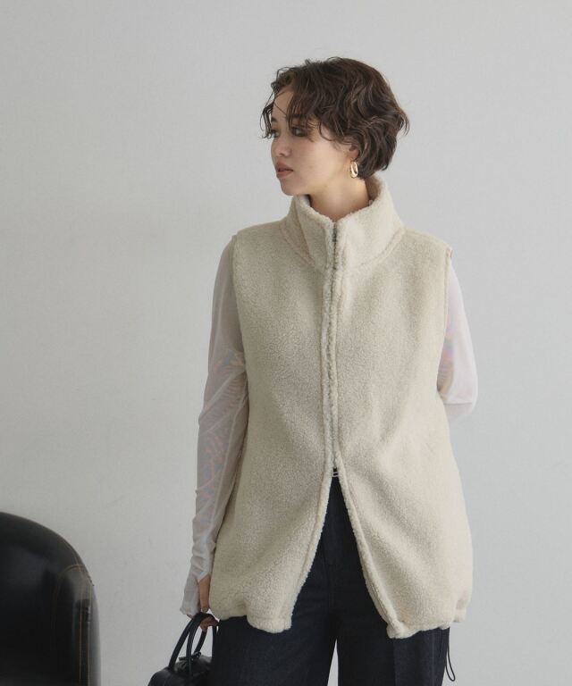 | 商品説明 | : | ふんわりボアであたたかく今っぽいレイヤードスタイル 柔らかなボア素材を使用したジップベスト。 ジップ仕様で着脱しやすく、レイヤードスタイルに最適。 オーバーシルエットでアウターやトップスの下にもすっきり重ねられます。 サイドについたドロストでお好みのシルエットに調整可能◎ カジュアルなデニムスタイルにも、ワンピースに羽織ってもおしゃれに決まる一枚。 |