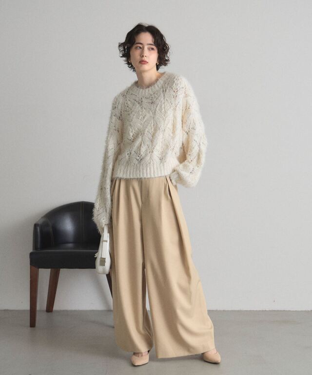 | 商品説明 | : | ふわふわの質感で魅せる、ぬくもりニット モール糸とフェザー糸をミックスした、立体感のあるローゲージニット。 ふんわり柔らかな肌触りで、着心地も軽やか。 シンプルなデザインながら、異素材の表情が上品な華やかさをプラスします。 デニムでカジュアルに、スカートでフェミニンにと幅広くコーディネート可能。 シーズンムードを高める、1枚で着映えるふわもこニットです。 |