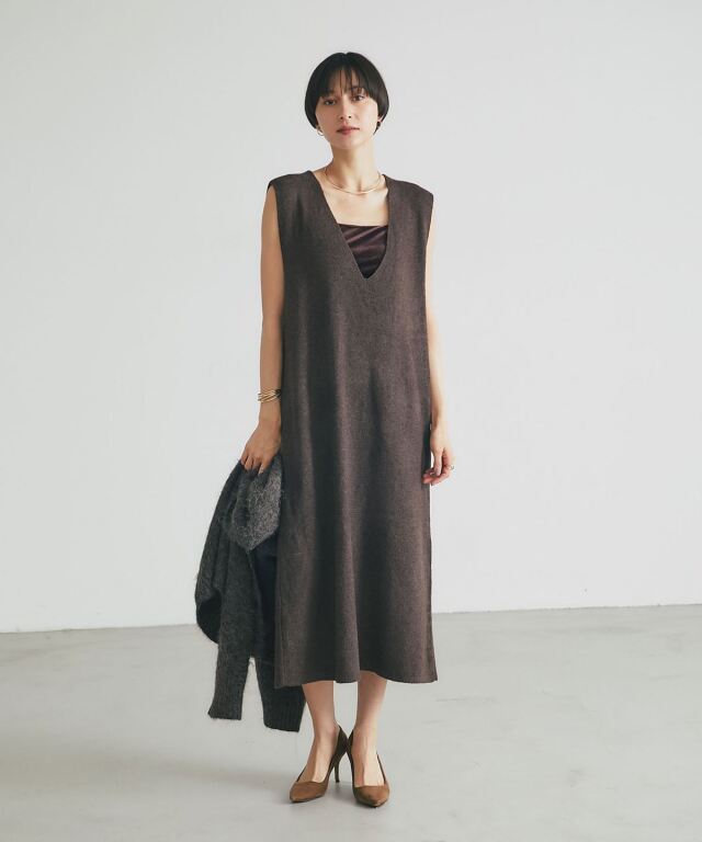 | 商品説明 | : | すっきりVネックで魅せる、大人可愛いニットジャンスカ POINT ・深めのVネックが顔まわりをシャープに ・レイヤードスタイルもすっきり見えするデザイン ・柔らかなニット素材で、着心地も軽やかでストレスフリー ・インナー次第でロングシーズン着回し可能 ・合わせる小物次第でフェミニンにもカジュアルにも楽しめる、万能ジャンスカ |