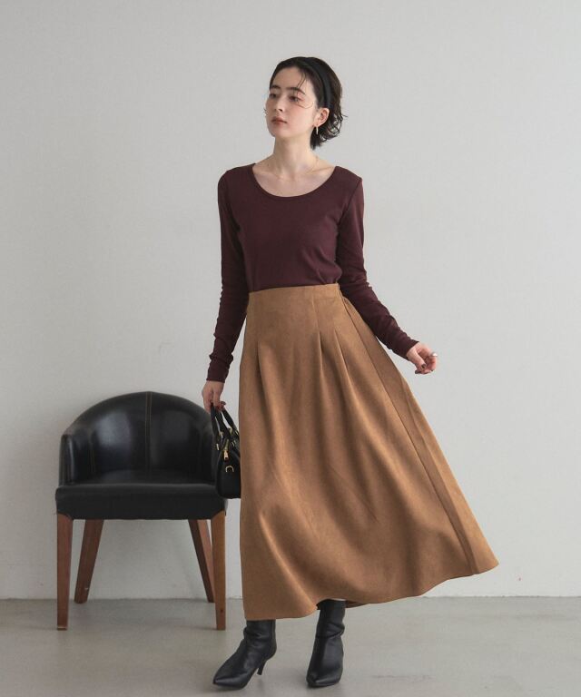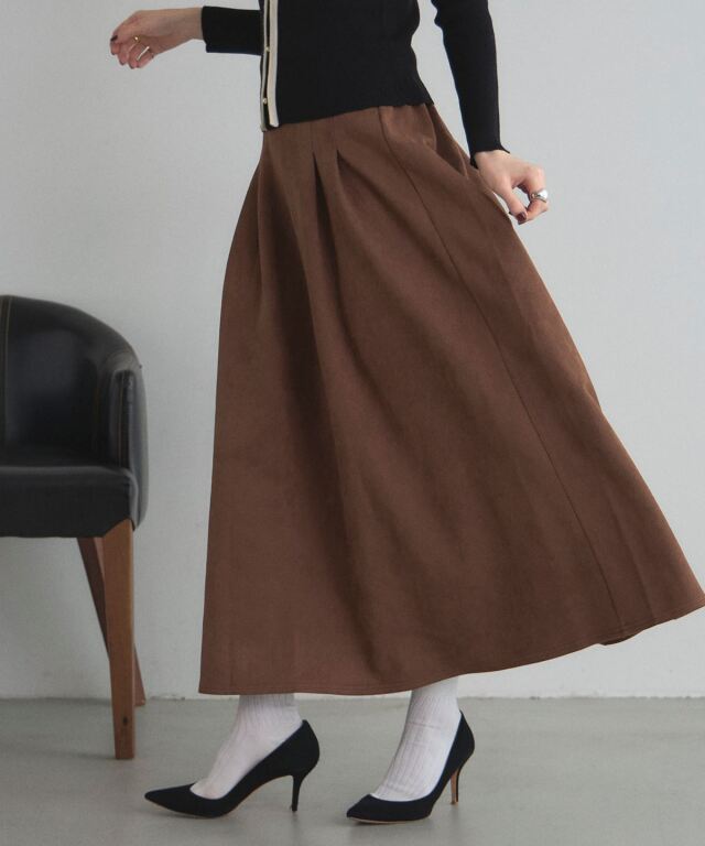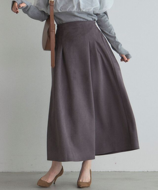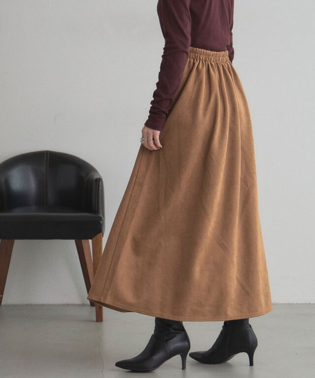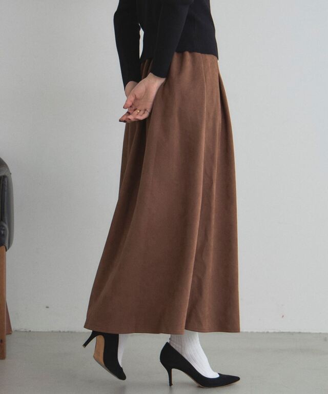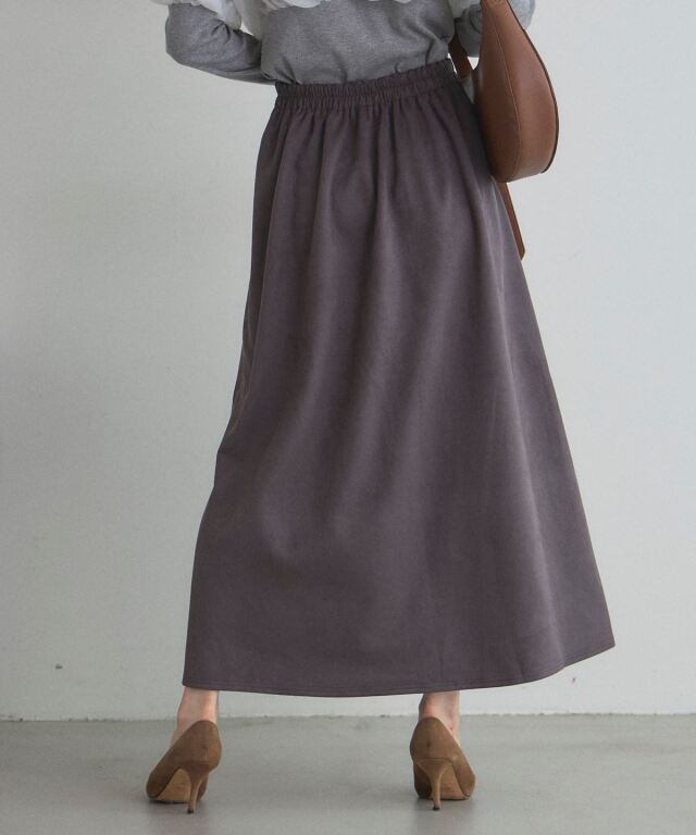 | 商品説明 | : | 滑らかなスエードで美しく揺れる、フレアロングスカート 程よい厚みと滑らかな質感のポンチスエード素材で仕立てたフレアスカート。 ウエストから裾に向かって広がるシルエットが、女性らしいラインを演出します。 シンプルながら上質感のある素材で、ブラウスやニットとのコーディネートも品よくまとまります。 デイリーはもちろん、オフィスやお出かけにも活躍する万能スカートです。 |