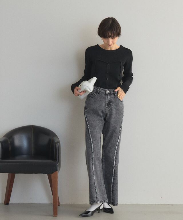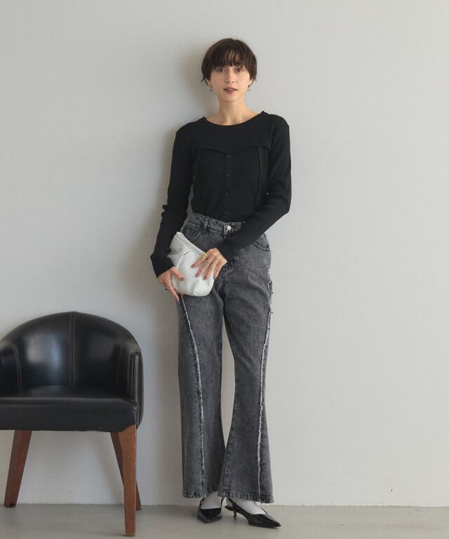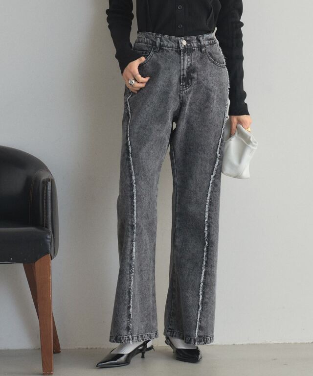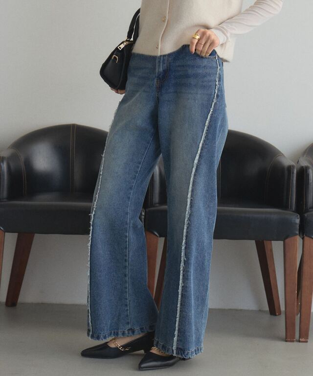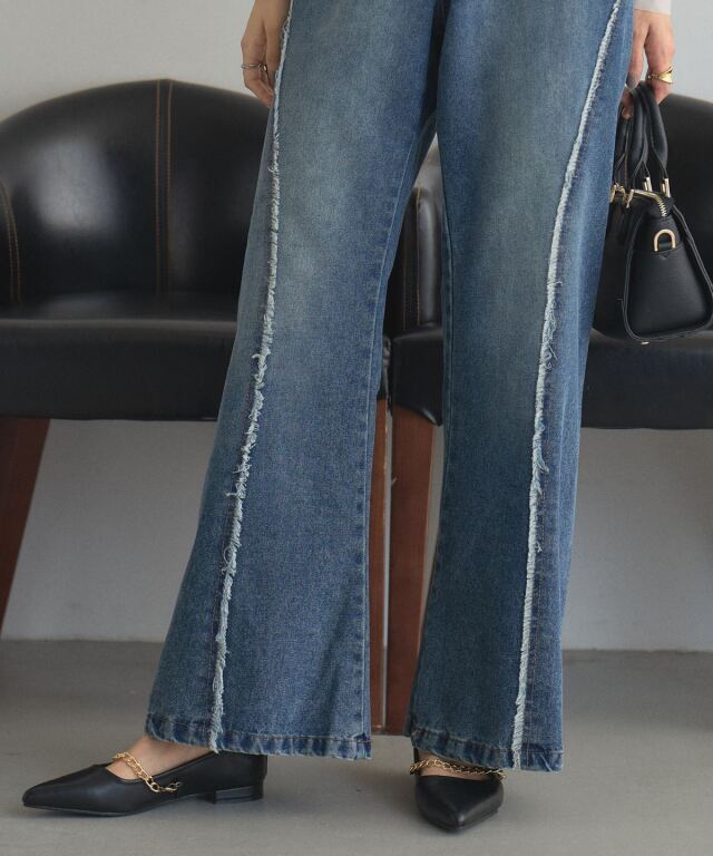 | 商品説明 | : | フリンジの揺れが、デニムに品のある動きをプラス シームパネルとフリンジで立体感を演出したフレアデニム。 程よく広がるシルエットで、脚長効果と女性らしさを実現。 しっかりしたデニム素材で形をキープしやすく、着心地も快適。 大人カジュアルにぴったりのデニムです! |