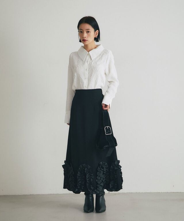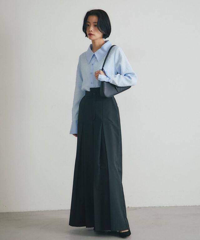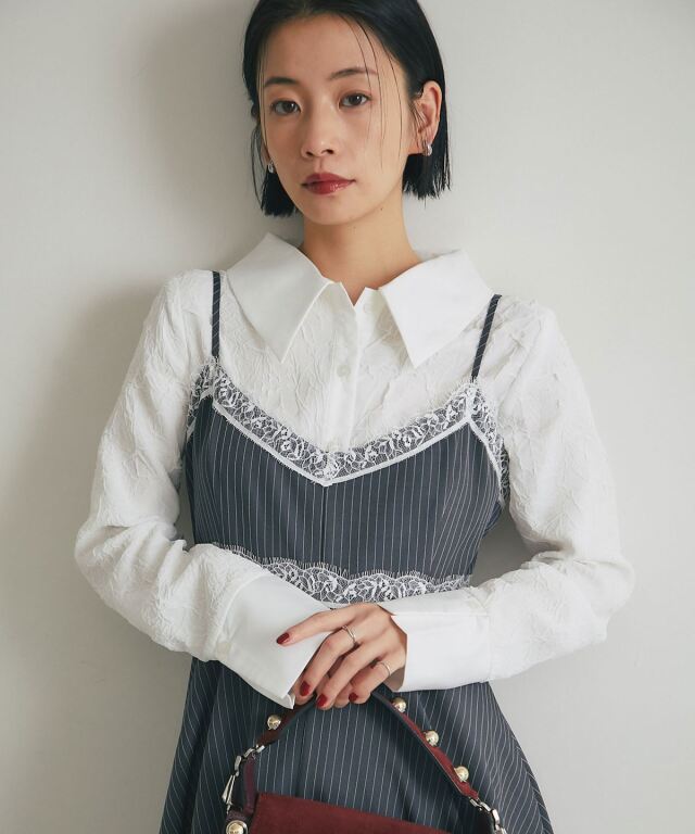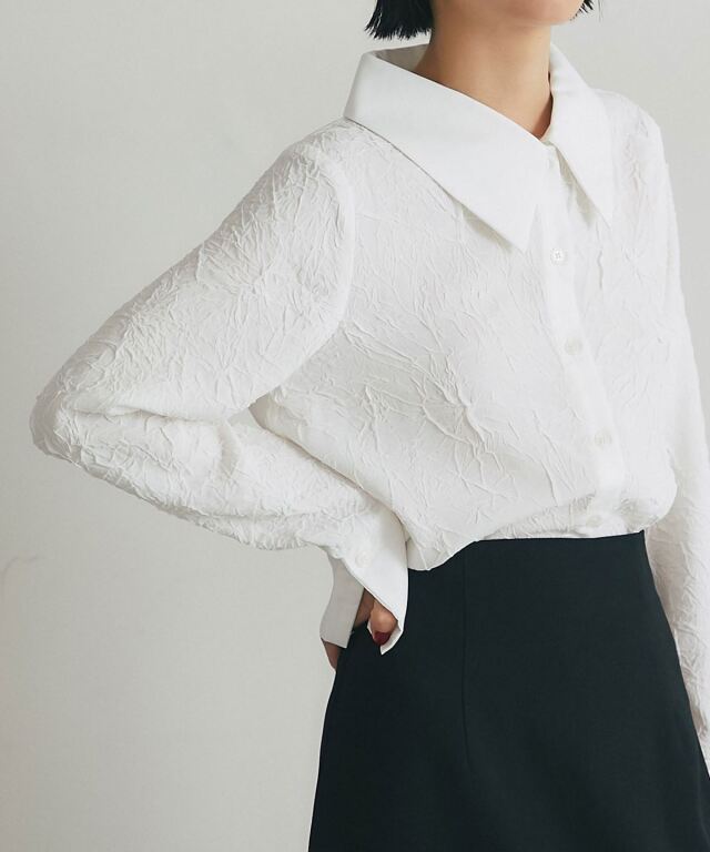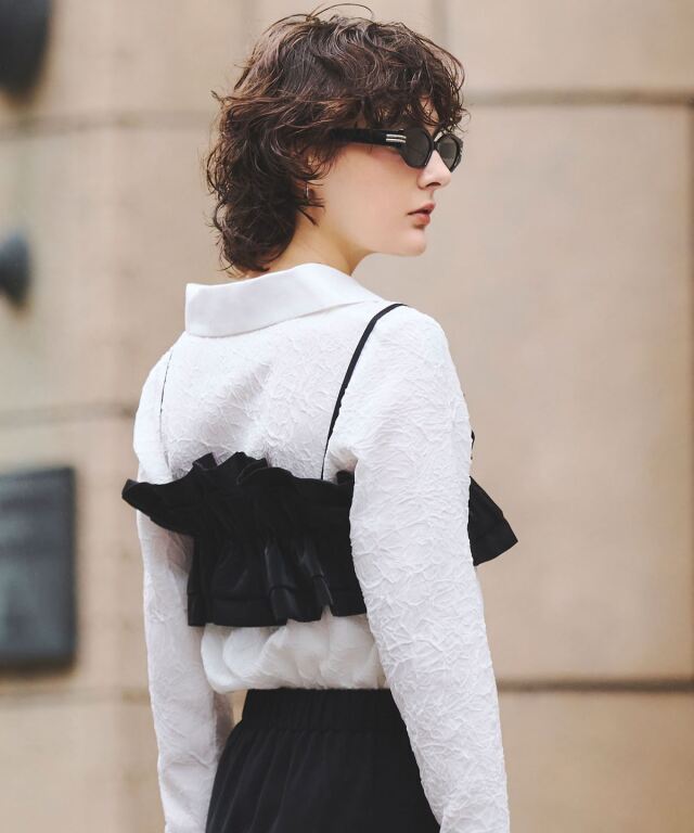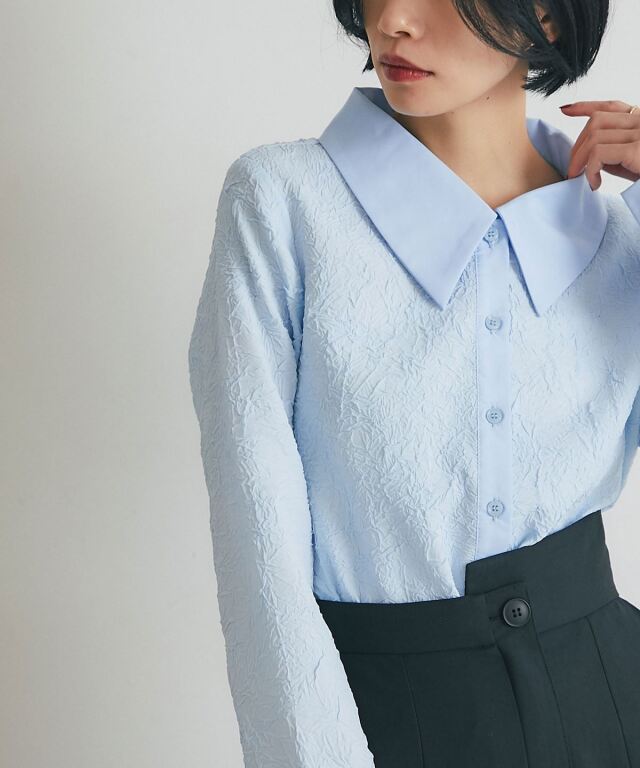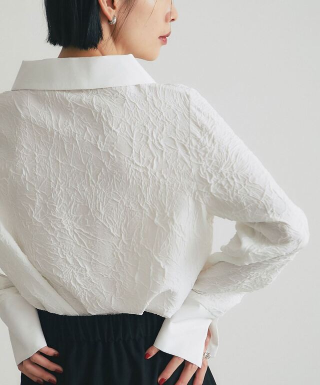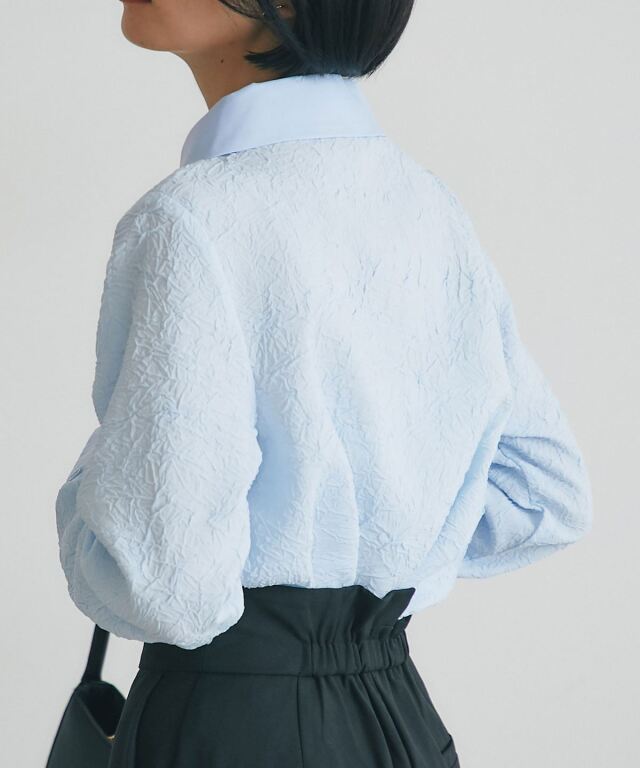 | 商品説明 | : | 質感のコントラストが際立つ、洗練モードな一枚。 異なる素材の組み合わせが生む立体感と表情が魅力のブラウス。 テクスチャーコントラストが、シンプルなシルエットにモードな奥行きをプラス。 大きめの衿とカフス、すっきりとした身頃で、上品かつ現代的な印象に仕上げました。 デニムやタックパンツと合わせて、洗練された都会的スタイルを演出できる一枚です。 |