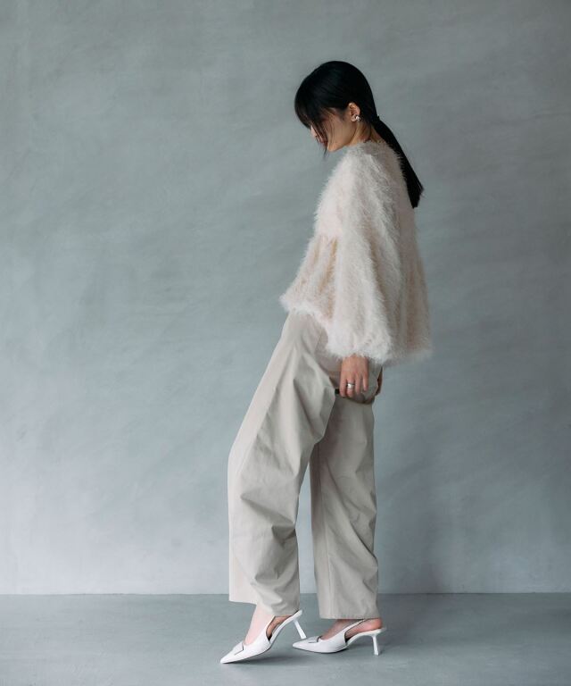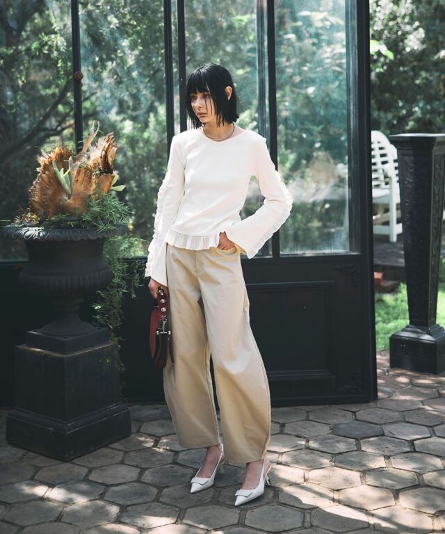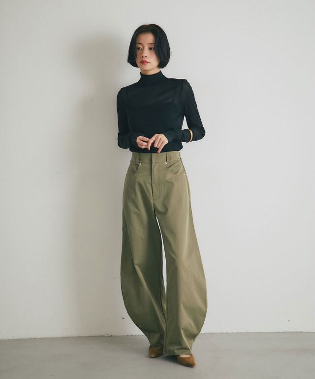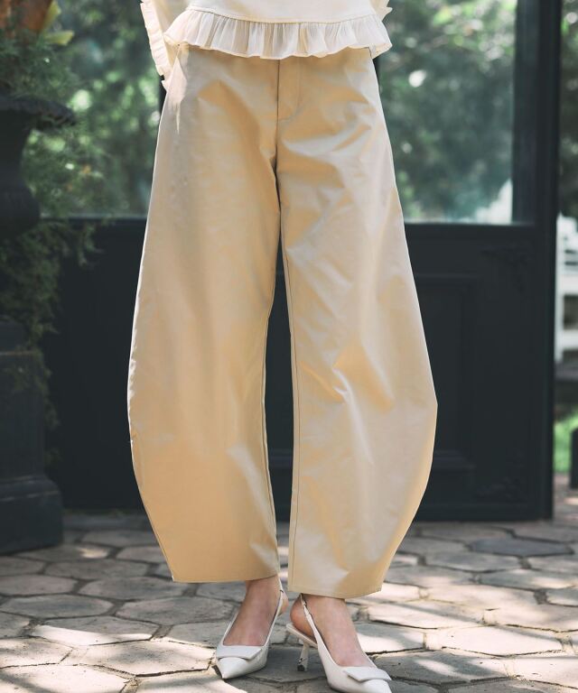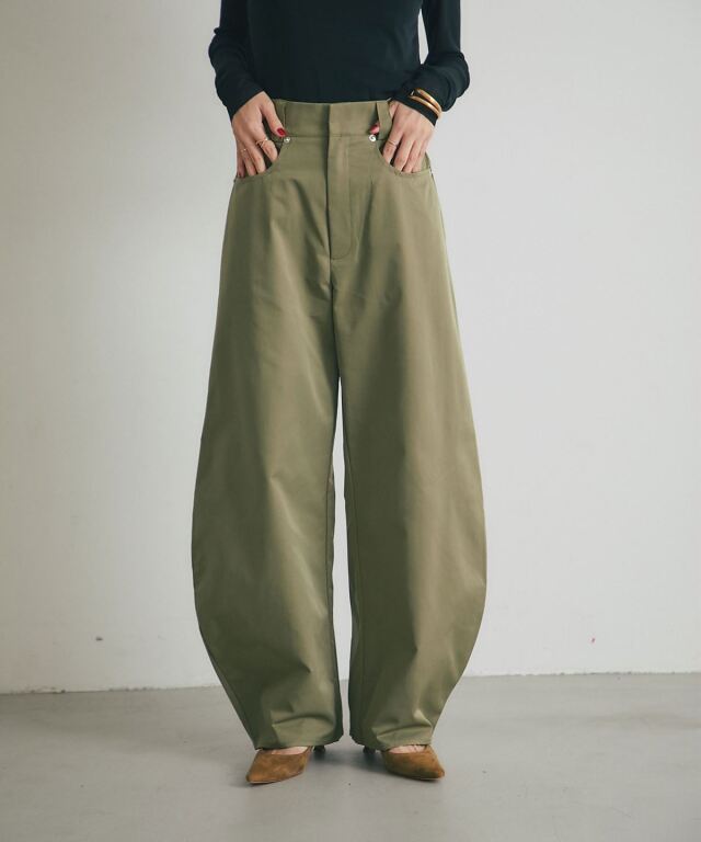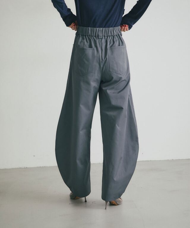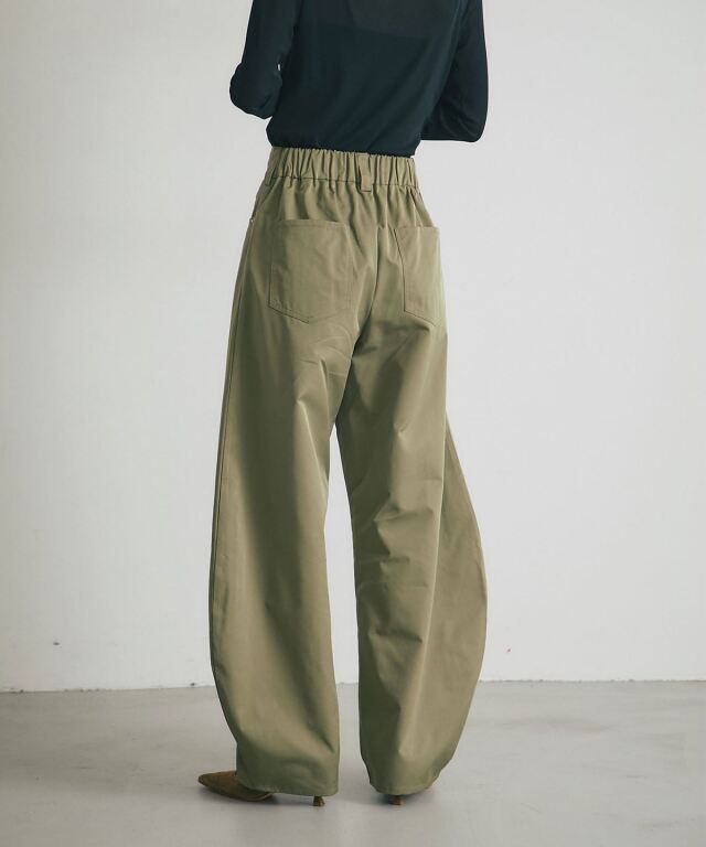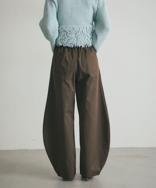 外側にゆるやかに湾曲したコクーンシルエットが特徴のパンツ。 腰回りはすっきりと仕上げ、裾にかけて自然に丸みを帯びるラインが脚を長く美しく見せてくれます。 後ろウエストはゴム仕様で快適な穿き心地を実現。 シンプルなトップスを合わせるだけでモードな雰囲気が漂い、オンにもオフにも活躍します。 存在感がありながらも洗練されたデザインで、大人のスタイリングを格上げしてくれる一本です。 |