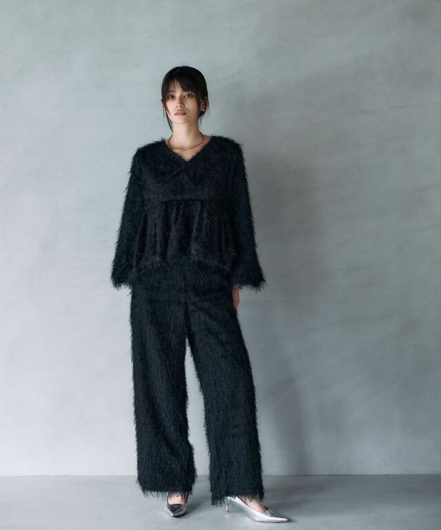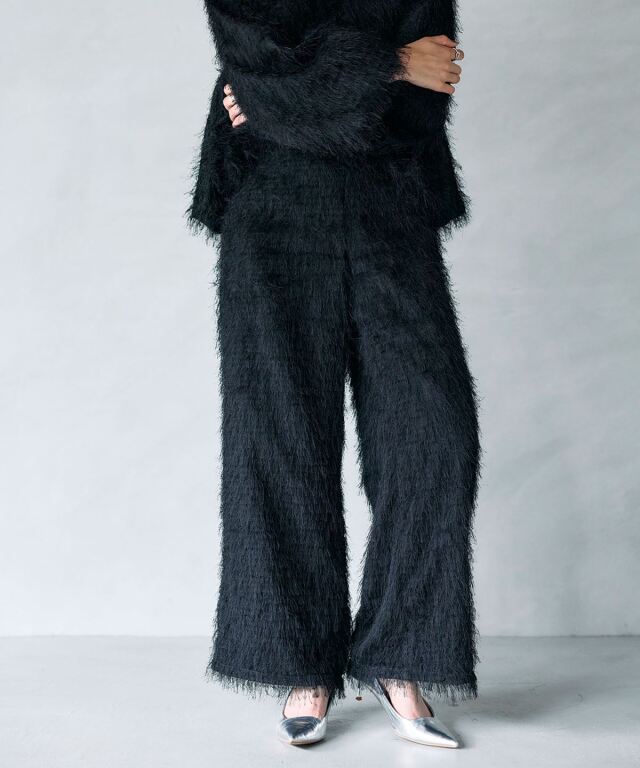 | 商品説明 | : | フリンジとワイドシルエットで、モードに決まるセットアップパンツ。 流れるような素材とフリンジデザインが印象的なワイドパンツ。 腰回りはすっきり見せつつ、裾に向かって広がるシルエットが存在感と脚長効果を演出します。 セットアップで揃えれば統一感のある洗練されたスタイルに、単品使いでもアクセントとしてモード感をプラス。 日常のコーディネートに現代的なエッジを添え、挑む女性たちの装いにふさわしい一枚です。 |