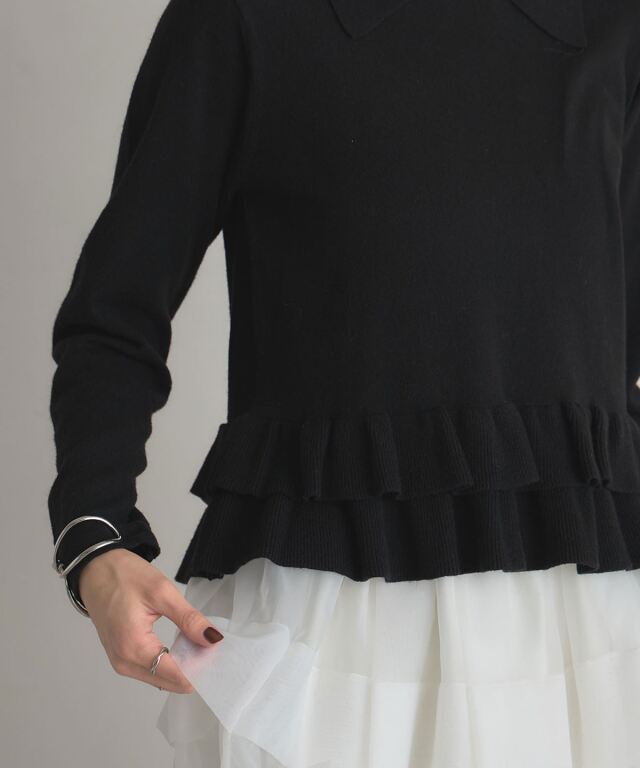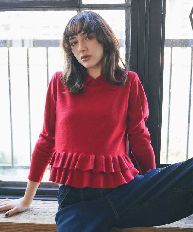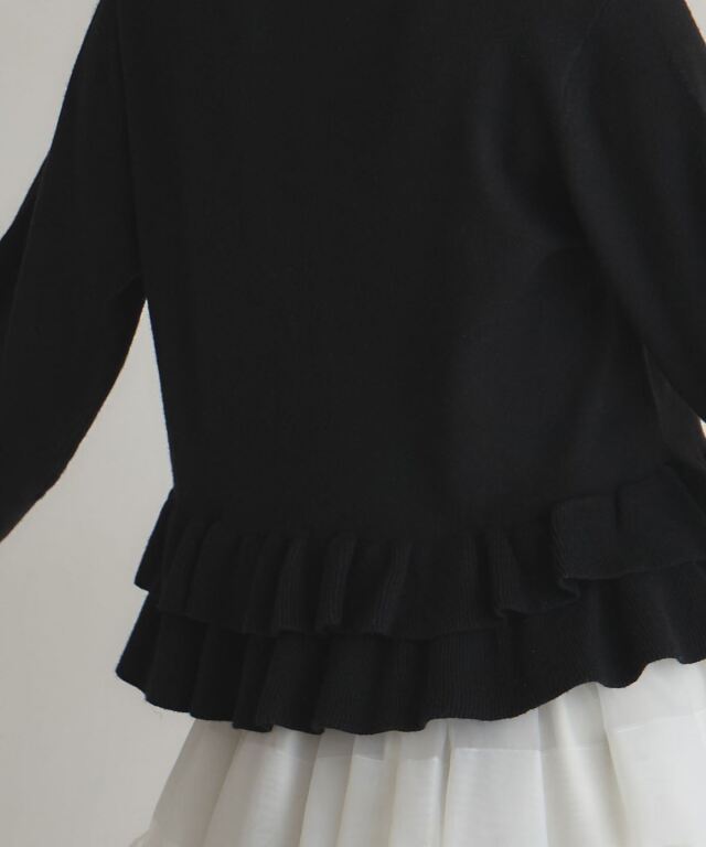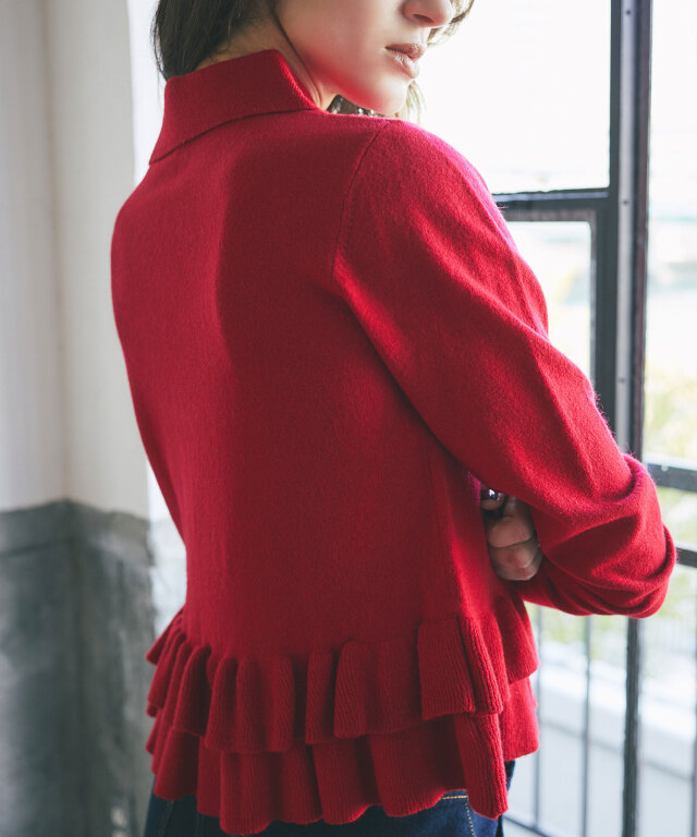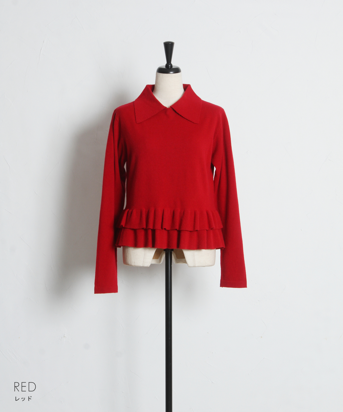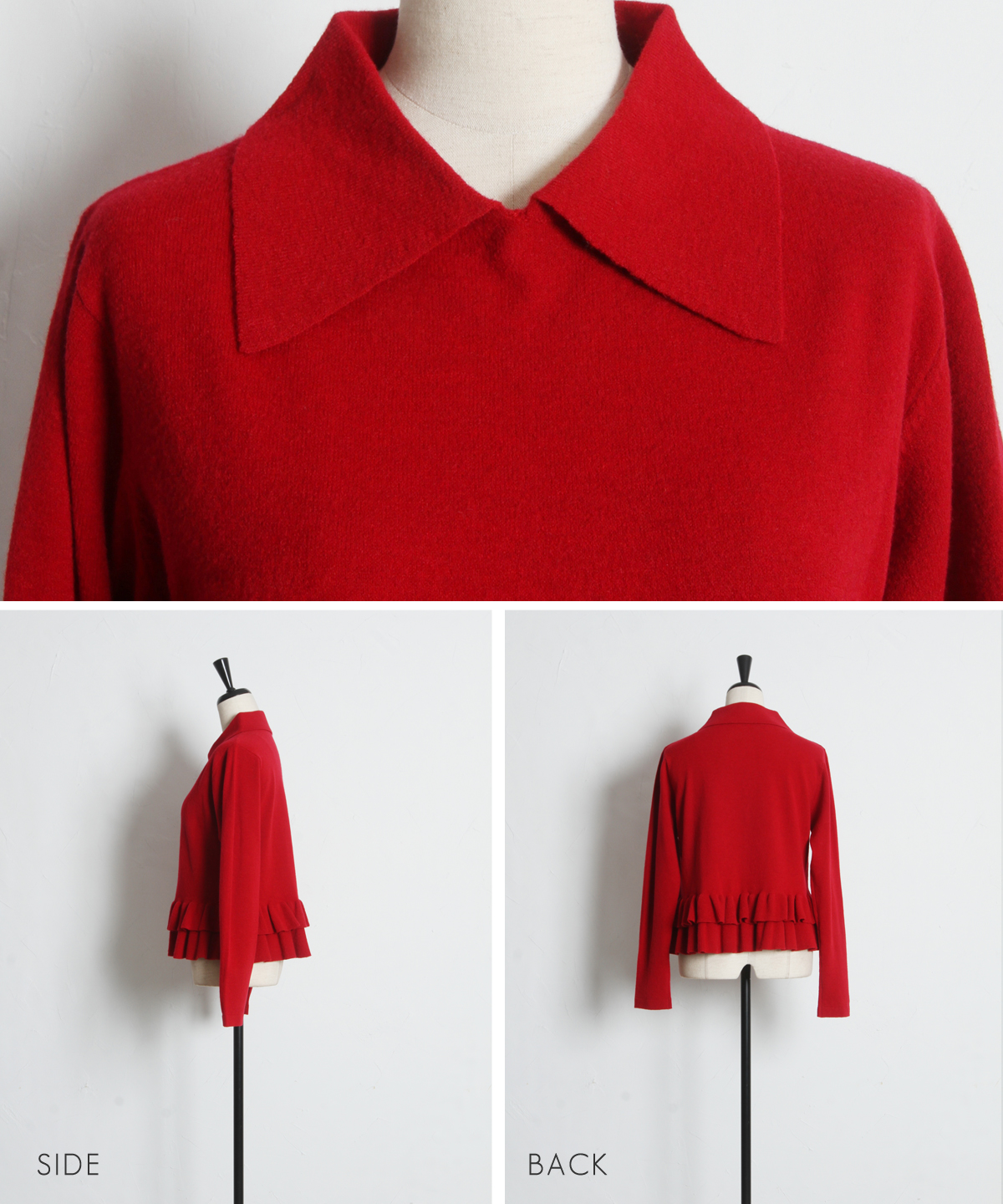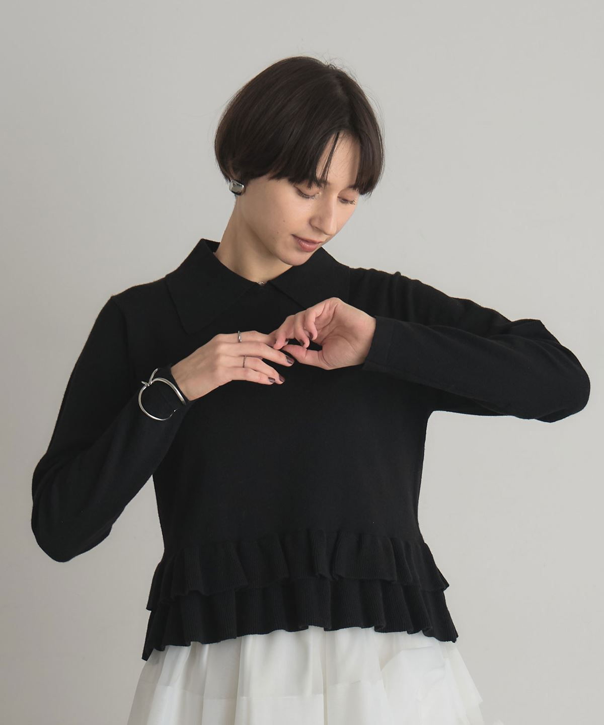 | 商品説明 | : | 衿付きで上品、華やかさを添えるラッフルヘムニット。 柔らかな素材感と上品な衿デザインが魅力のラッフルヘムニット。 裾のラッフルが女性らしい動きをプラスし、シンプルながらも華やかさを演出します。 1枚での着こなしはもちろん、ジャケットとのレイヤードにも最適。 デイリーからオフィスまで幅広く活躍する一着です。 |