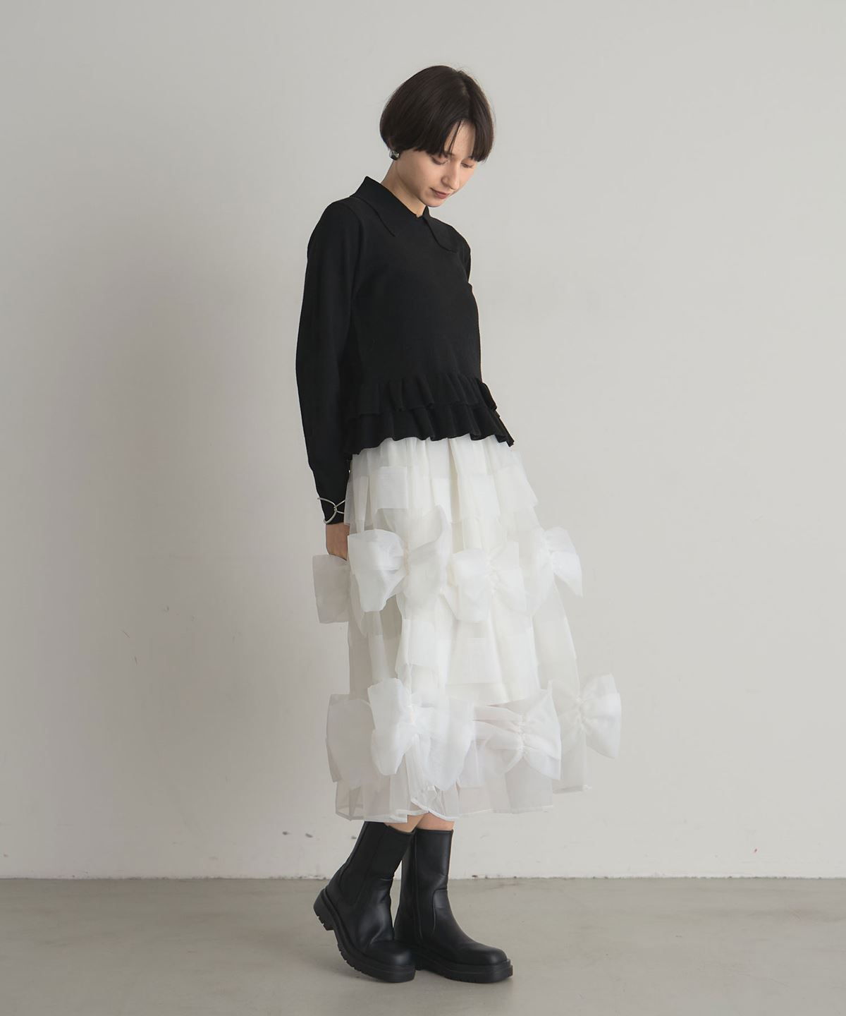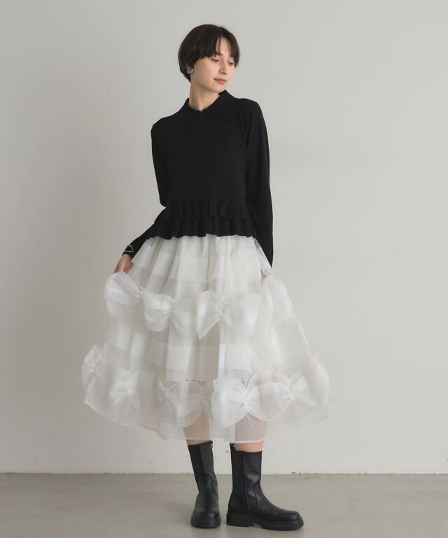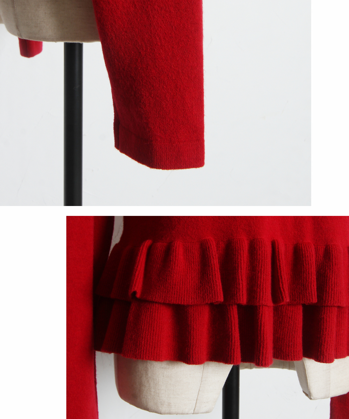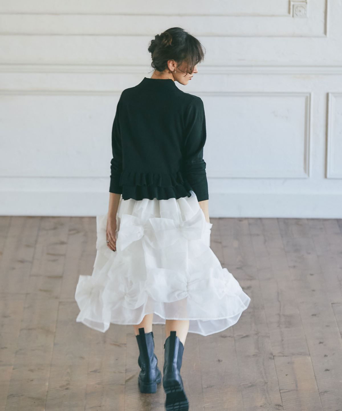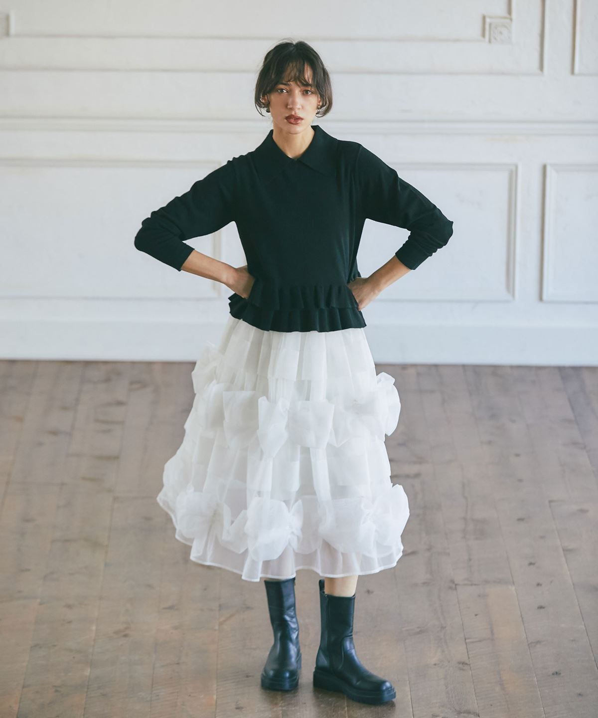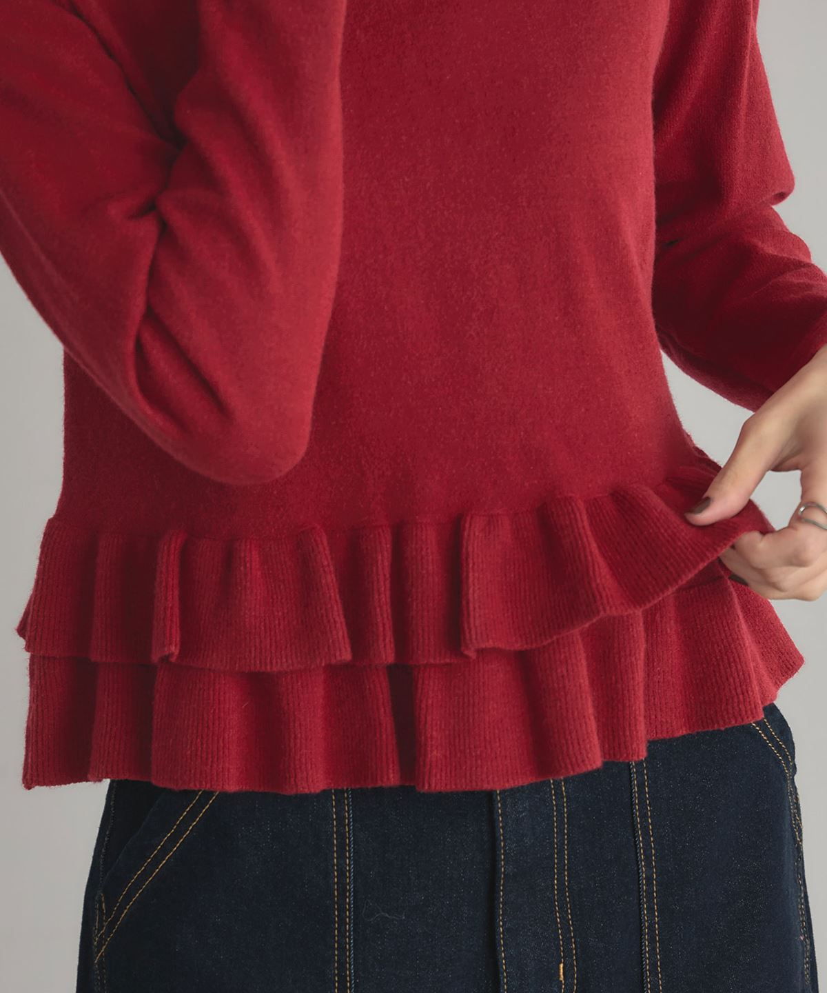 | 商品説明 | : | 衿付きで上品、華やかさを添えるラッフルヘムニット。 柔らかな素材感と上品な衿デザインが魅力のラッフルヘムニット。 裾のラッフルが女性らしい動きをプラスし、シンプルながらも華やかさを演出します。 1枚での着こなしはもちろん、ジャケットとのレイヤードにも最適。 デイリーからオフィスまで幅広く活躍する一着です。 |