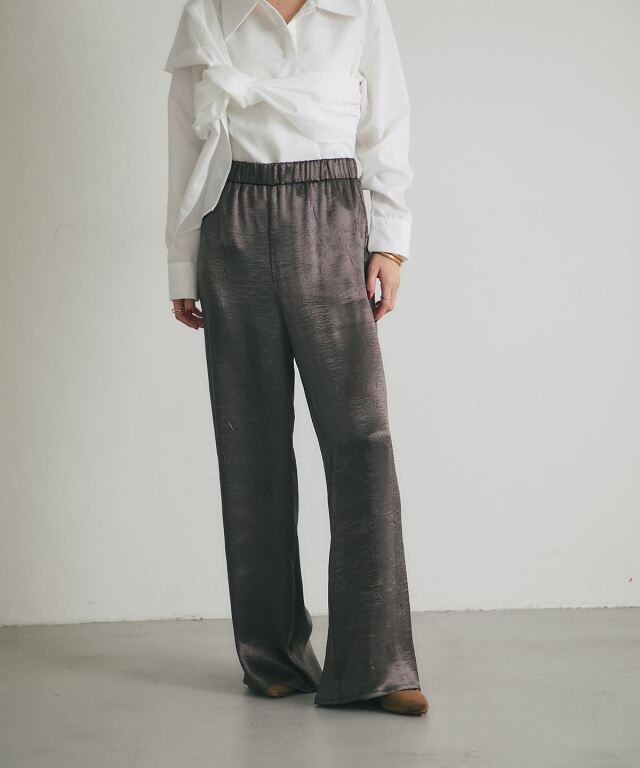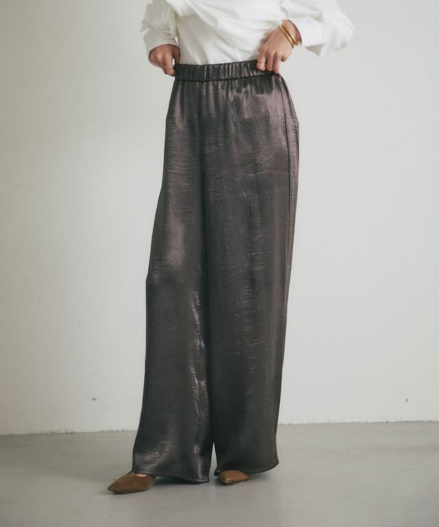 | 商品説明 | ≪ Attention:販売日、在庫状況はWEBと店舗と異なります。予めご了承くださいませ。≫ 光沢と落ち感で魅せる、リラクシーモードなサテンフルイドパンツ。 なめらかなサテン素材が光を受けて美しく揺れるフルイドパンツ。 |