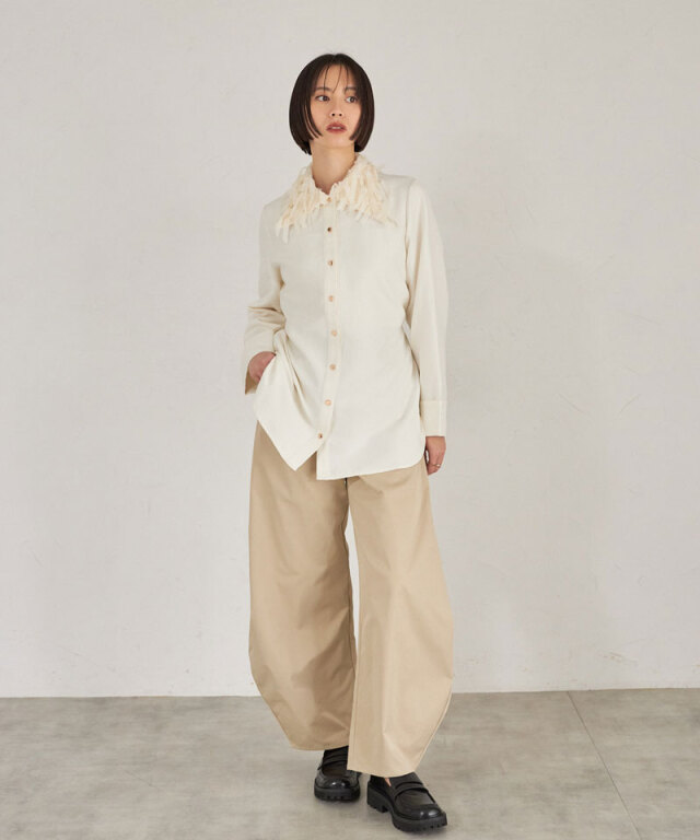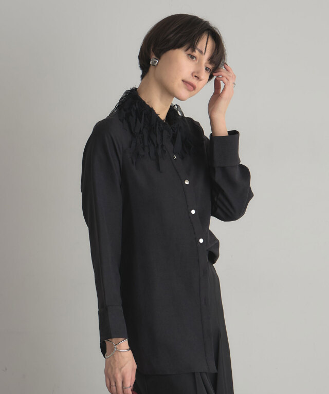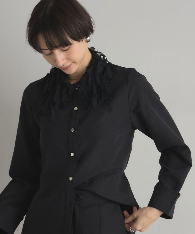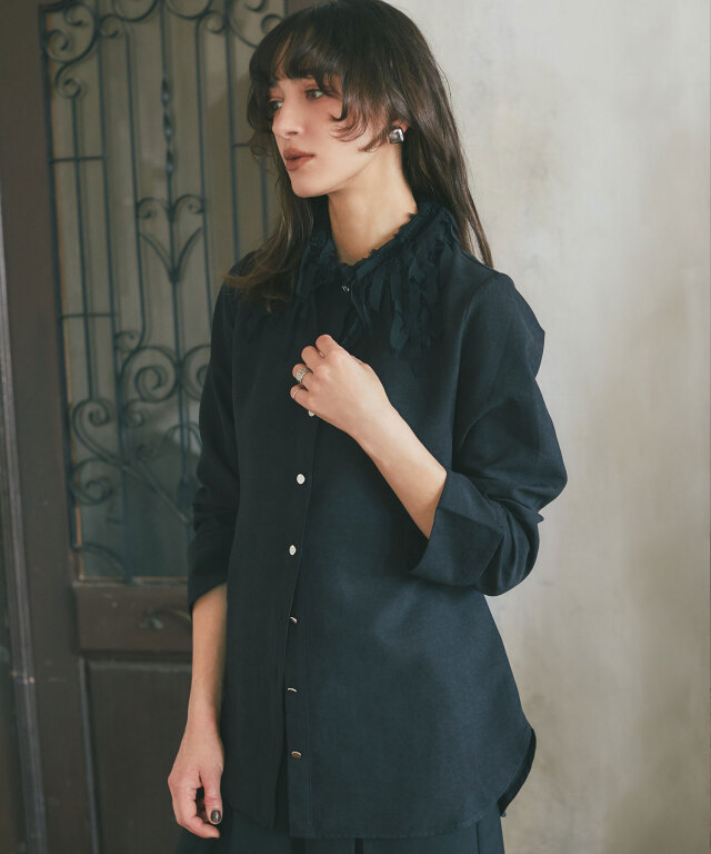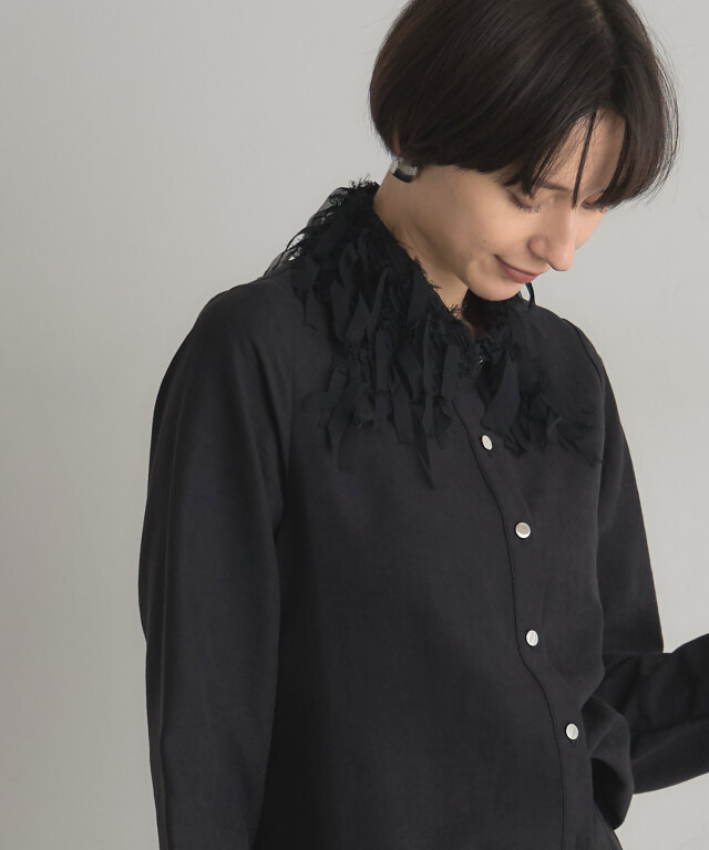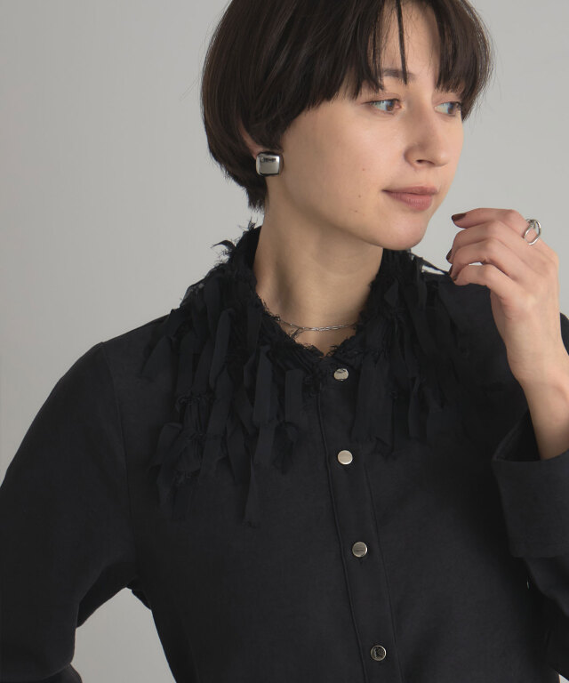 | 商品説明 | : | 遊び心とモードが交差する、衿フリンジシャツ。 衿元のフリンジがさりげなく個性を際立たせるモードシャツ。 ゆとりのあるサイズ感でリラックスした着心地を実現し、 サイドの紐を後ろで結ぶことでシルエットのアレンジも自在。 シンプルながらエッジの効いたデザインは、カジュアルにもドレッシーにもマッチし、 日常の装いに洗練されたアクセントを添えます。 |