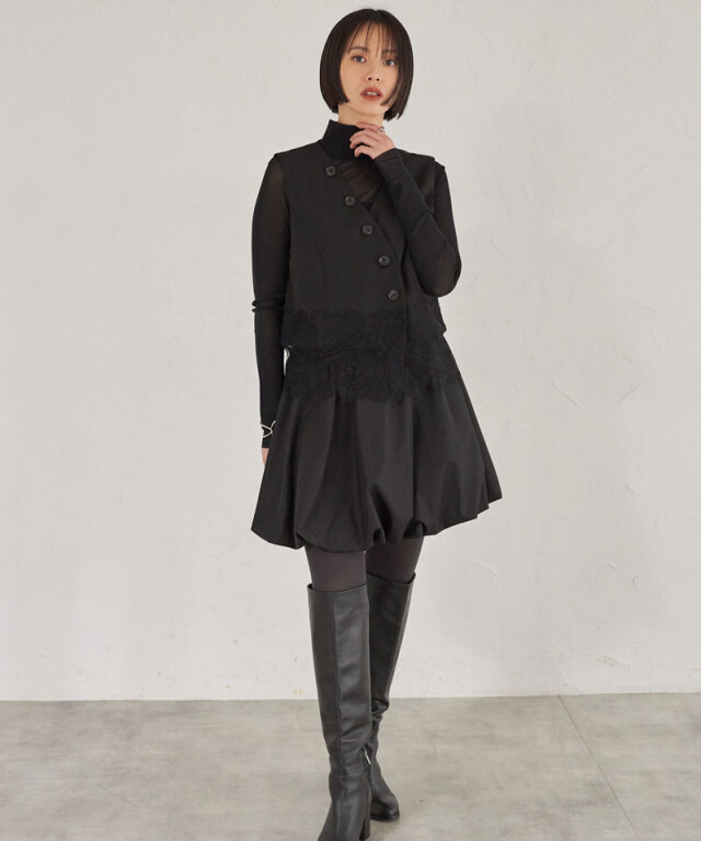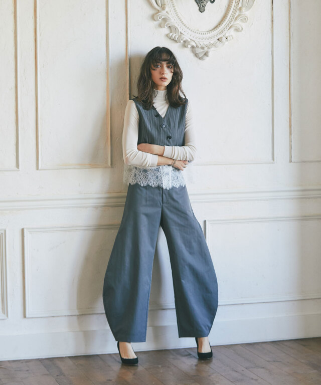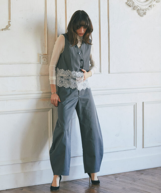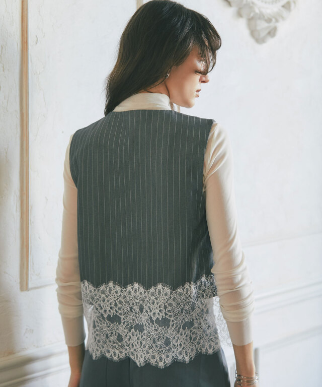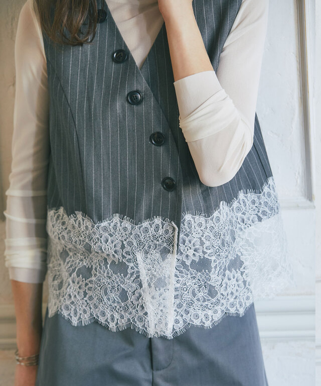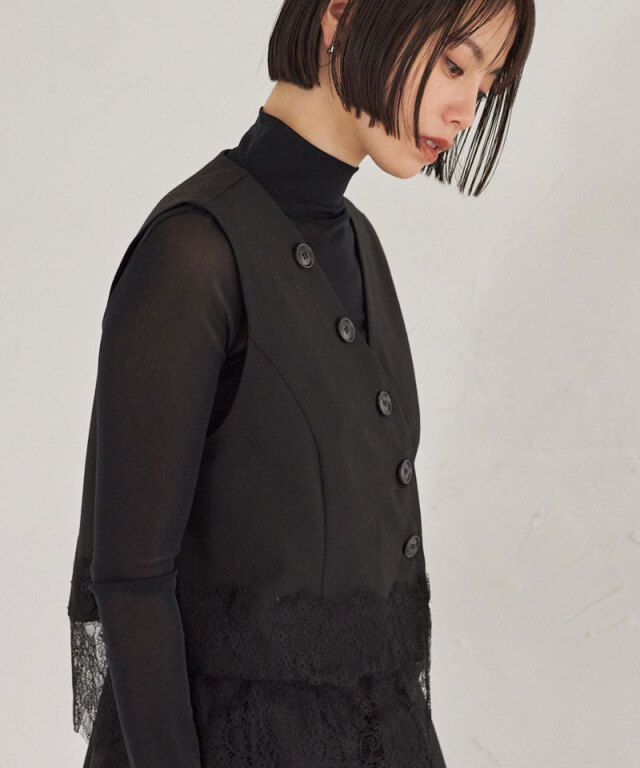 | 商品説明 | : | クラシックに艶めく、レースが導くモードスタイル。 繊細なレースを裾にあしらった、女性らしさ漂うレースエッジベスト。 アシンメトリーなボタンデザインがモードな印象を引き立て、 シアートップスやシャツとのレイヤードで奥行きのあるスタイリングを叶えます。 マニッシュな仕立てにレースのエレガンスを掛け合わせた、日常を特別に見せる一枚です。 |