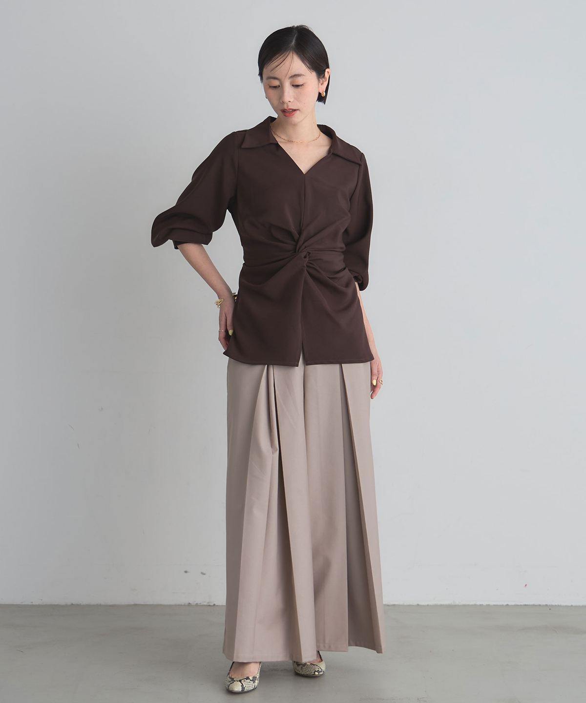 | モデル情報 | Mariam【172cm】ブラウン着用 深水エリコ【163cm】全色着用 |