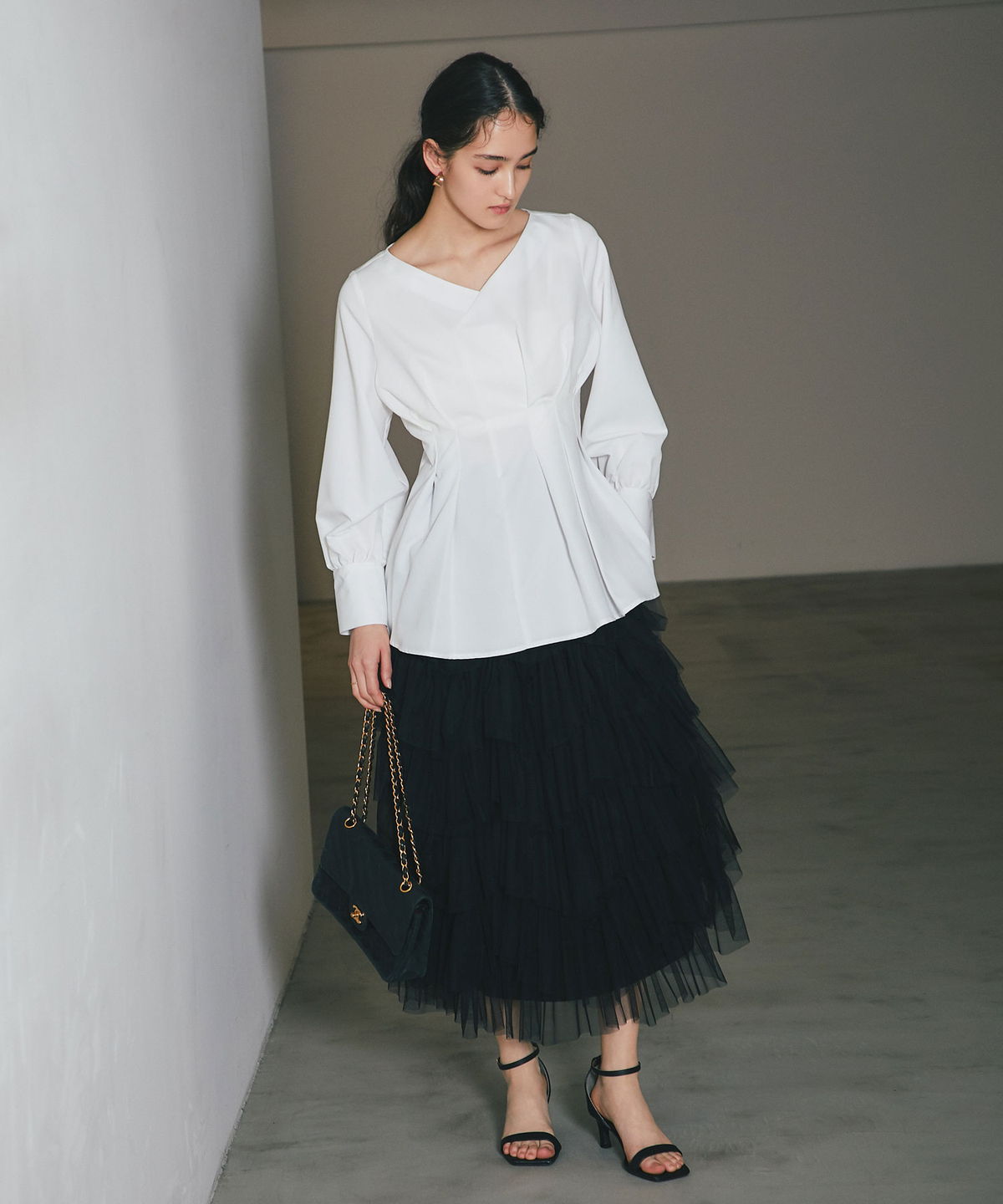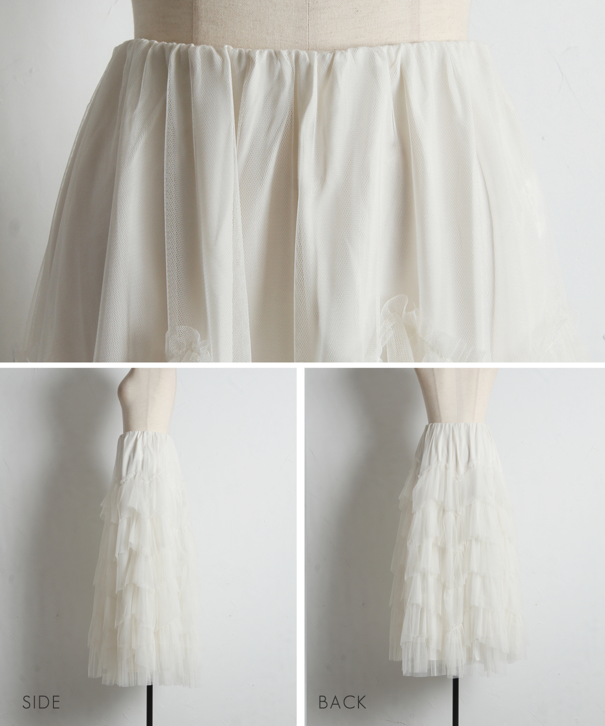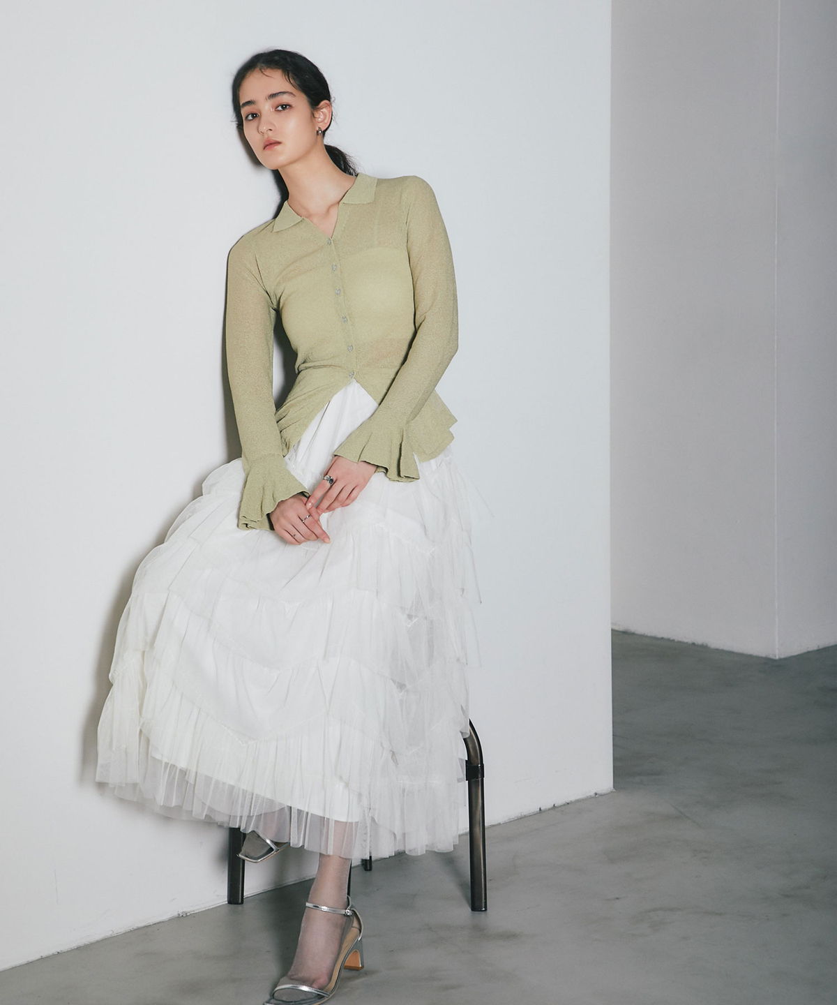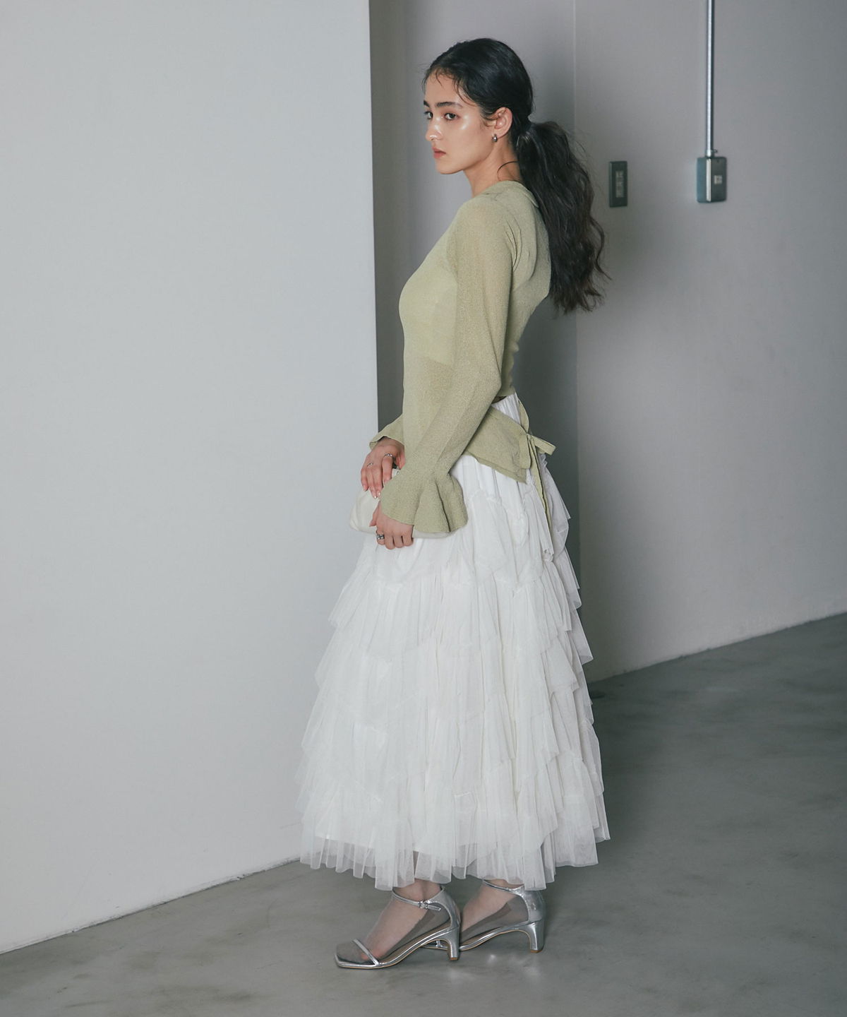 | 商品説明 | : | 重なり合うチュールが奏でる、甘さを抑えた大人のドラマティックスカート 繊細なチュールを贅沢に幾層にも重ねた、存在感溢れるティアードスカート。 段差をつけたレイヤード設計が、歩くたびに空気を含み、奥行きのある優雅なシルエットを描き出します。 甘くなりがちなチュール素材ですが、ニュアンスカラーで仕上げることで、洗練された都会的な表情に。 ウエスト周りはボリュームを抑えているため、ジャケットやタイトなニットとも相性抜群です。 日常を特別な一日に変える、主役級の一着。 |