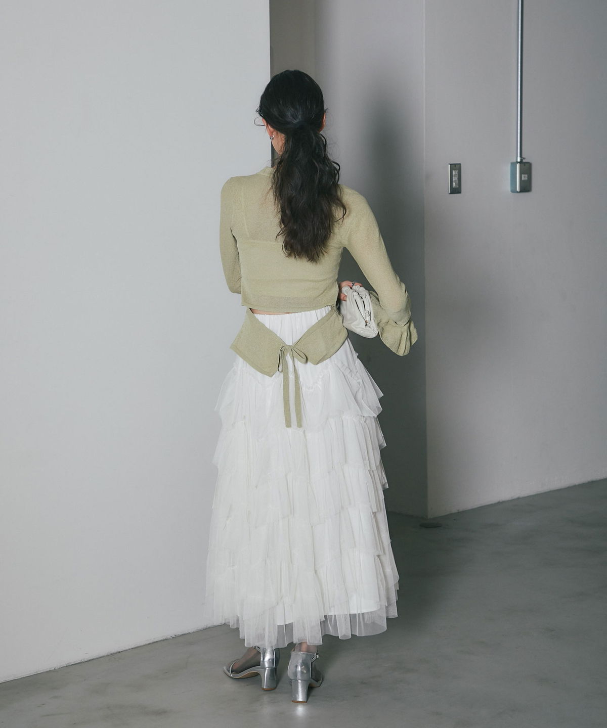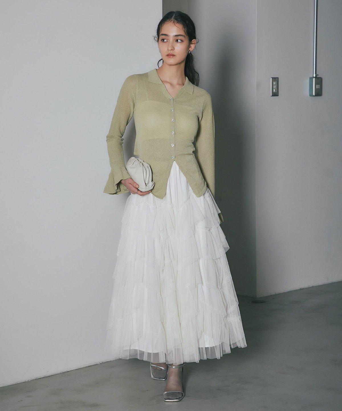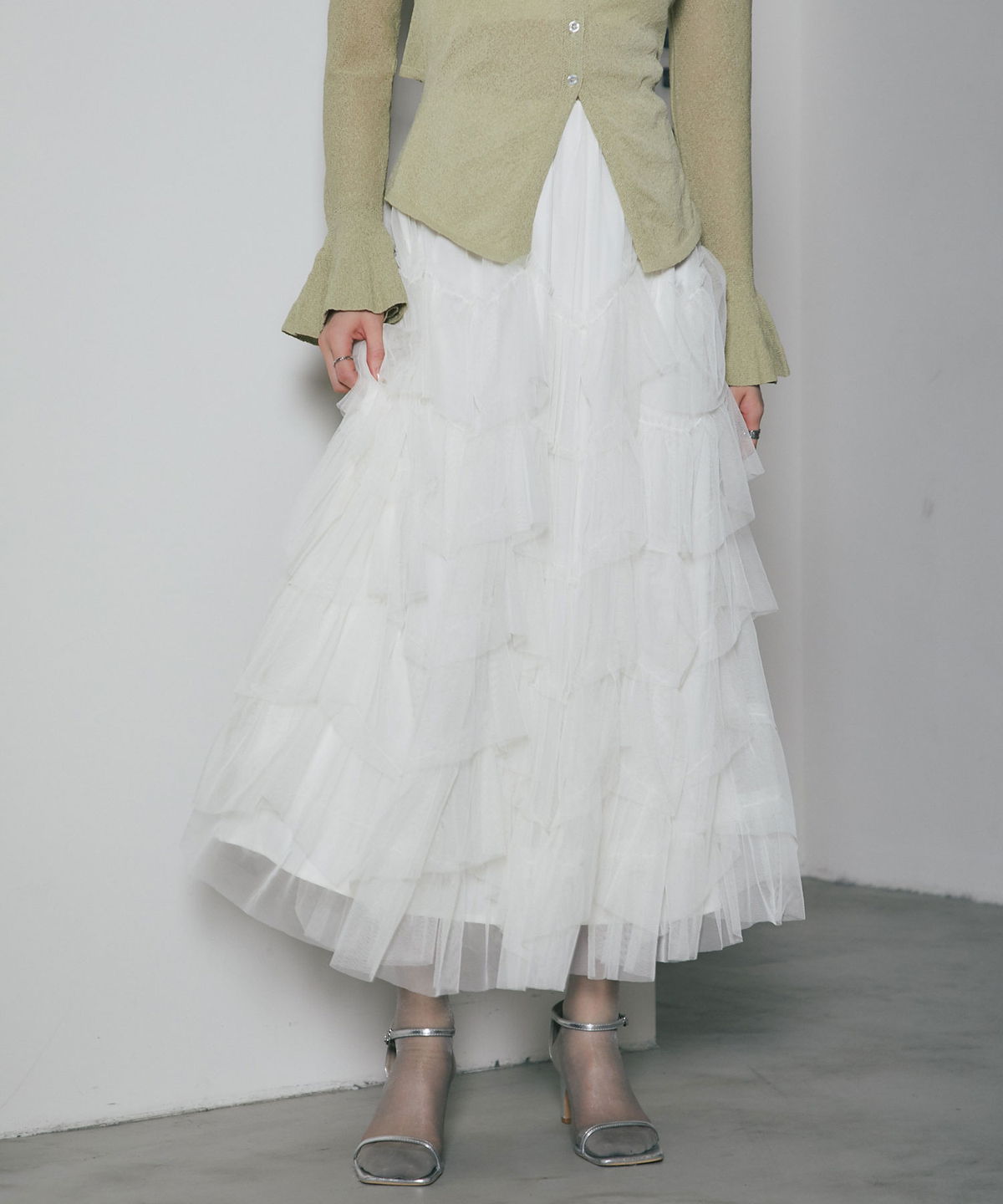| 商品説明 | ≪ Attention:販売日、在庫状況はWEBと店舗と異なります。予めご了承くださいませ。≫ 重なり合うチュールが奏でる、甘さを抑えた大人のドラマティックスカート 繊細なチュールを贅沢に幾層にも重ねた、存在感溢れるティアードスカート。 段差をつけたレイヤード設計が、歩くたびに空気を含み、奥行きのある優雅なシルエットを描き出します。 甘くなりがちなチュール素材ですが、ニュアンスカラーで仕上げることで、洗練された都会的な表情に。 ウエスト周りはボリュームを抑えているため、ジャケットやタイトなニットとも相性抜群です。 日常を特別な一日に変える、主役級の一着。 |