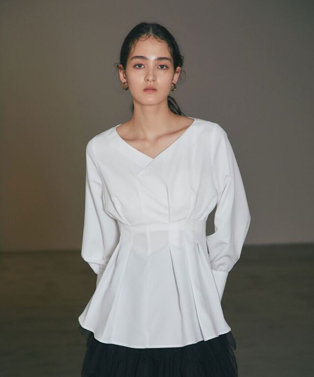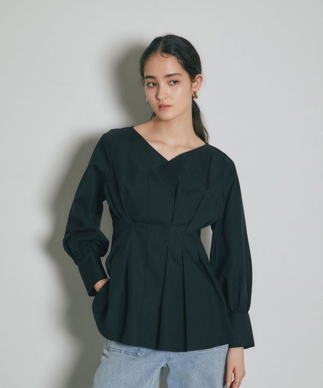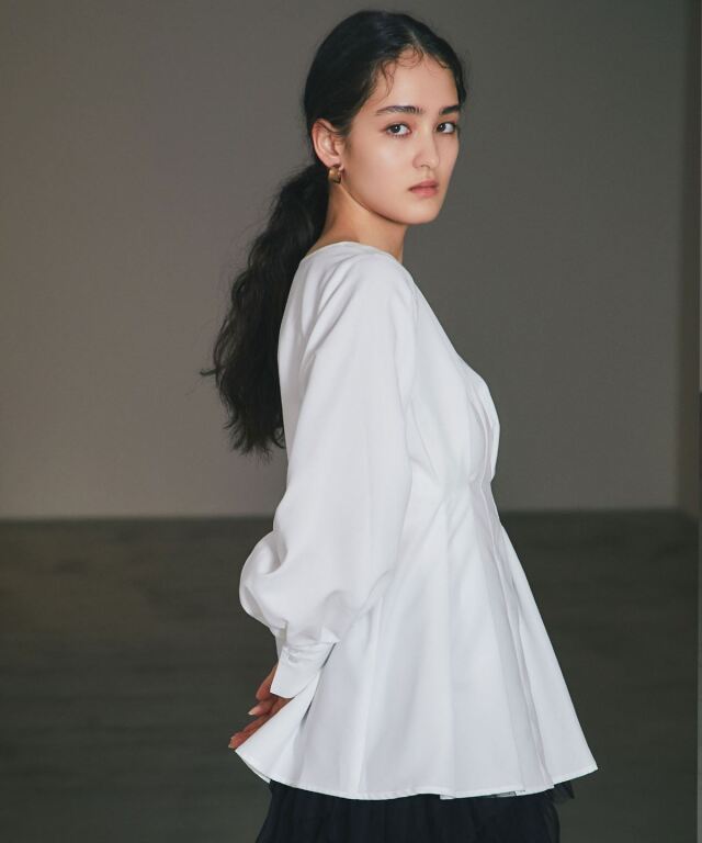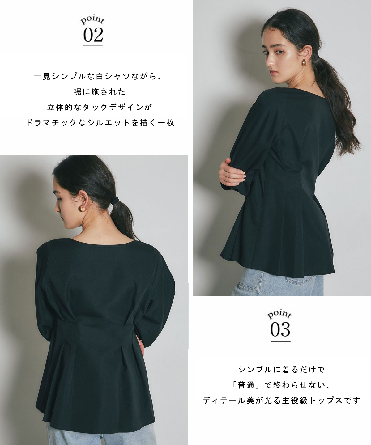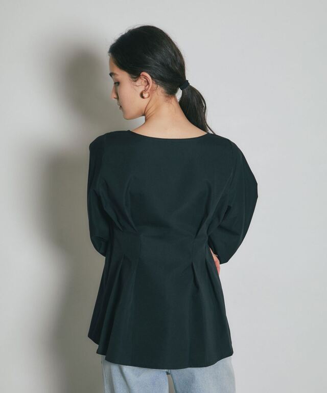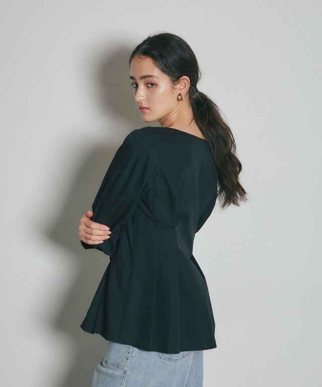 | 商品説明 | : | 曲線美を際立たせる、構築的なシルエット。モードに纏う大人のウエストマークブラウス。 深めに開いたVネックのラインが、顔周りとデコルテをすっきりと知的な印象に見せてくれるブラウス。 最大の魅力は、ウエストに施された精密なタックデザイン。 身体のラインを拾いすぎることなく、自然なシェイプを生み出し、 女性らしいメリハリのあるシルエットを完成させます。 ふんわりとボリュームを持たせた袖口のディテールが、 マニッシュなブラックに柔らかなエッセンスをプラス。 腰回りをさりげなくカバーする絶妙な着丈は、デニムでカジュアルダウンしても、 タイトなボトムスでシックにまとめても美しく決まります。 シンプルながらも「形」の美しさで魅せる、ワードローブの主役になるアイテムです。 |