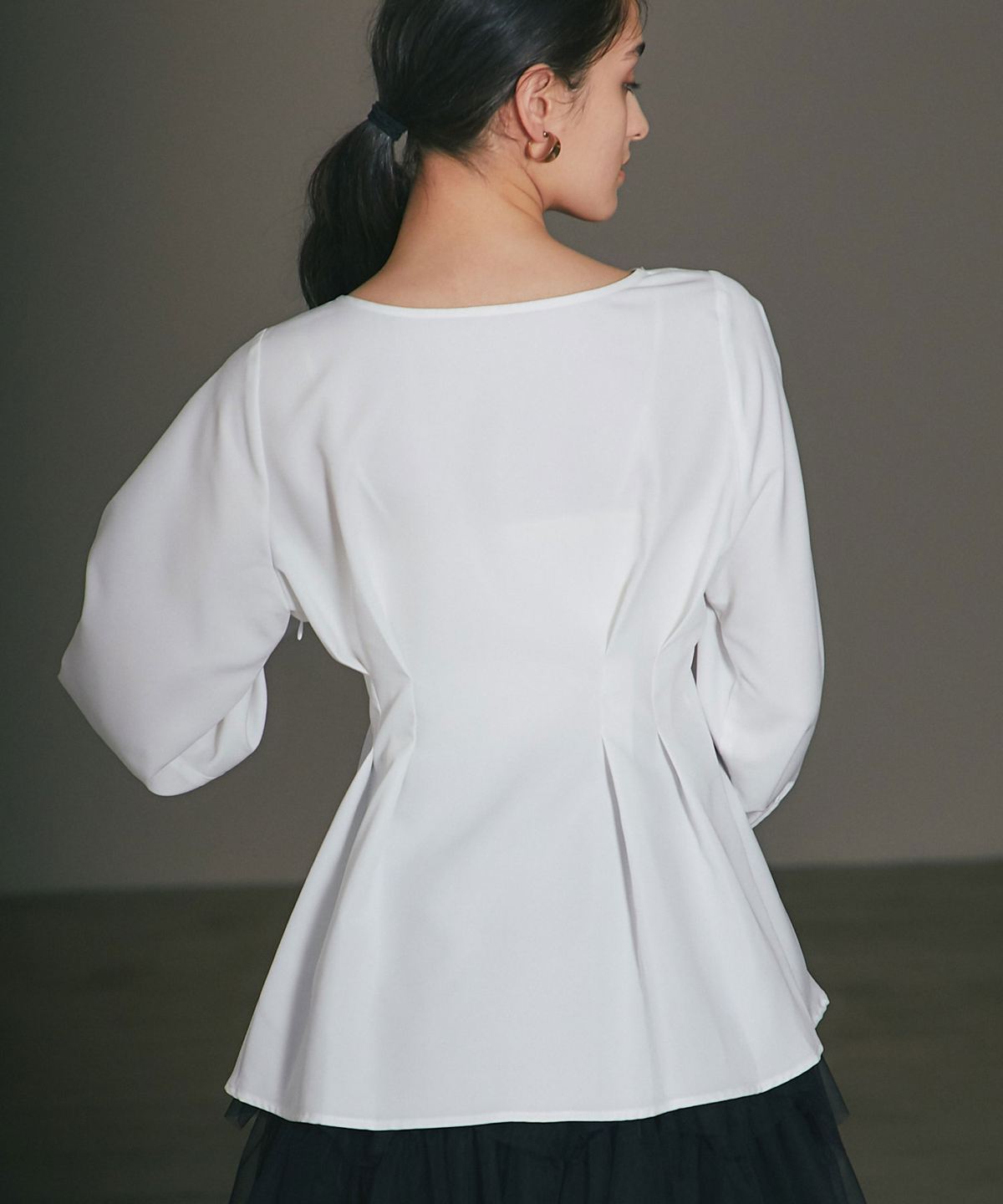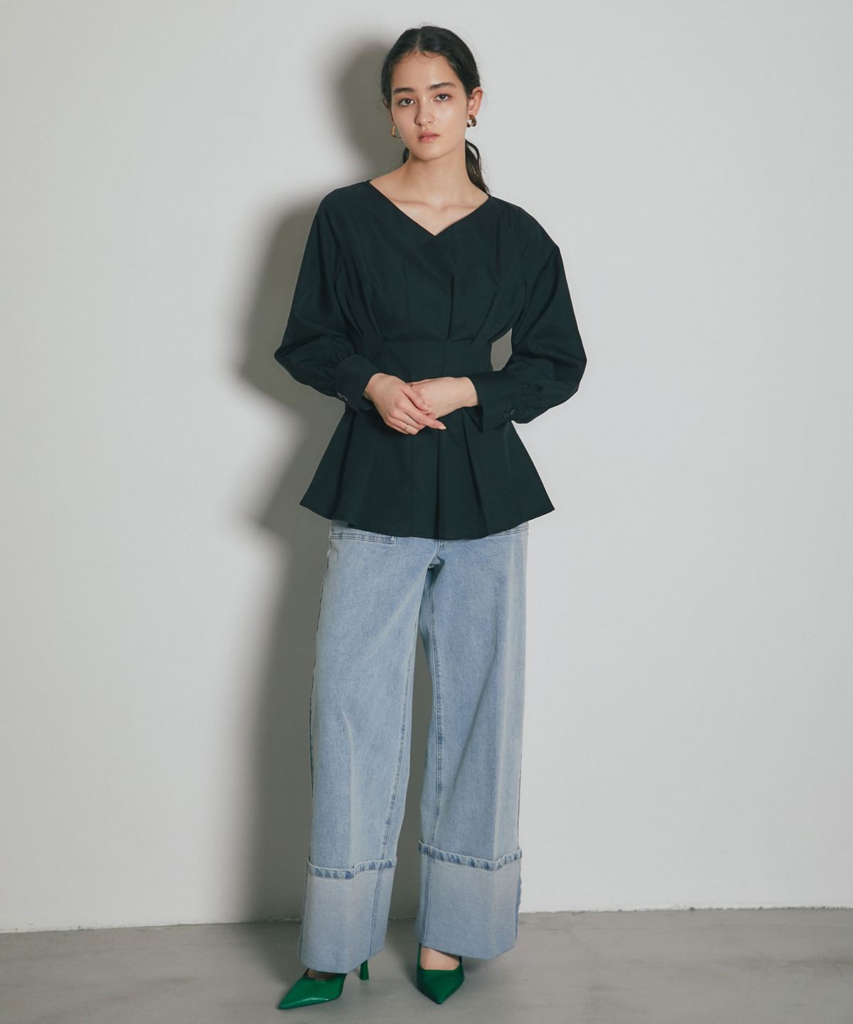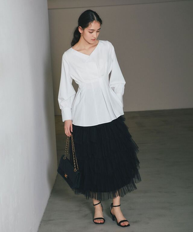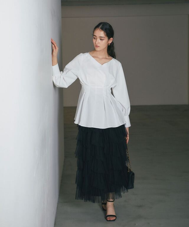 | 商品説明 | : | 曲線美を際立たせる、構築的なシルエット。モードに纏う大人のウエストマークブラウス。 深めに開いたVネックのラインが、顔周りとデコルテをすっきりと知的な印象に見せてくれるブラウス。 最大の魅力は、ウエストに施された精密なタックデザイン。 身体のラインを拾いすぎることなく、自然なシェイプを生み出し、 女性らしいメリハリのあるシルエットを完成させます。 ふんわりとボリュームを持たせた袖口のディテールが、 マニッシュなブラックに柔らかなエッセンスをプラス。 腰回りをさりげなくカバーする絶妙な着丈は、デニムでカジュアルダウンしても、 タイトなボトムスでシックにまとめても美しく決まります。 シンプルながらも「形」の美しさで魅せる、ワードローブの主役になるアイテムです。 |