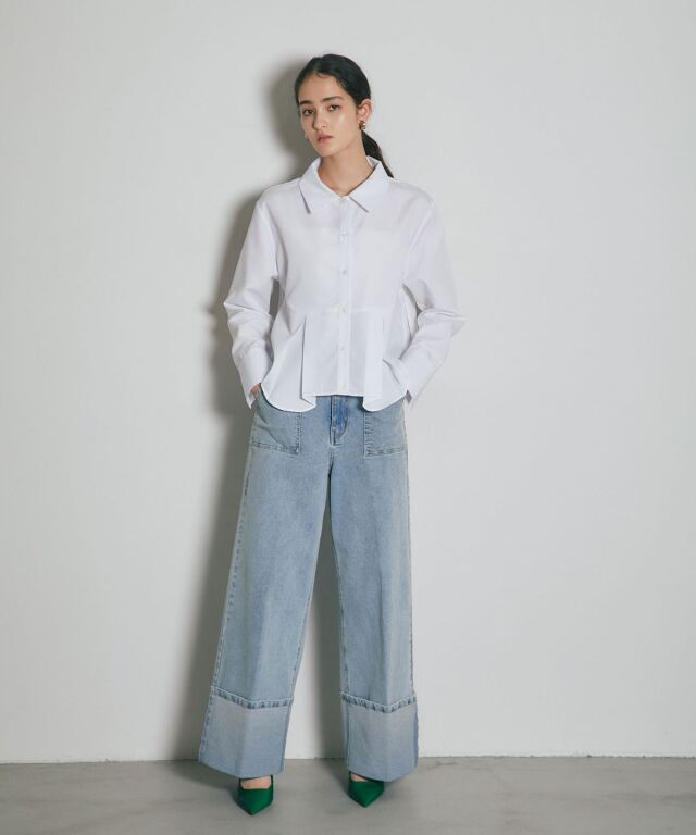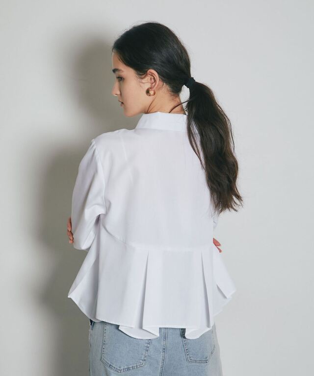 | 商品説明 | : | 「定番」をクラスアップ。構築的なペプラムが描く、洗練された大人のシャツスタイル。 一見シンプルな白シャツながら、裾に施された立体的なタックデザインがドラマチックなシルエットを描く一枚。 ウエストからふんわりと広がるペプラムラインが、気になる腰周りをカバーしつつ、女性らしくメリハリのあるスタイルを叶えます。 程よくコンパクトな襟元と、長めに設定されたカフスがクラシカルで知的な印象をプラス。 ハリのあるクリーンな素材感は、デニムと合わせたカジュアルダウンはもちろん、スラックスと合わせたオフィススタイルでも品の良さを放ちます。 シンプルに着るだけで「普通」で終わらせない、ディテール美が光る主役級トップスです。 |