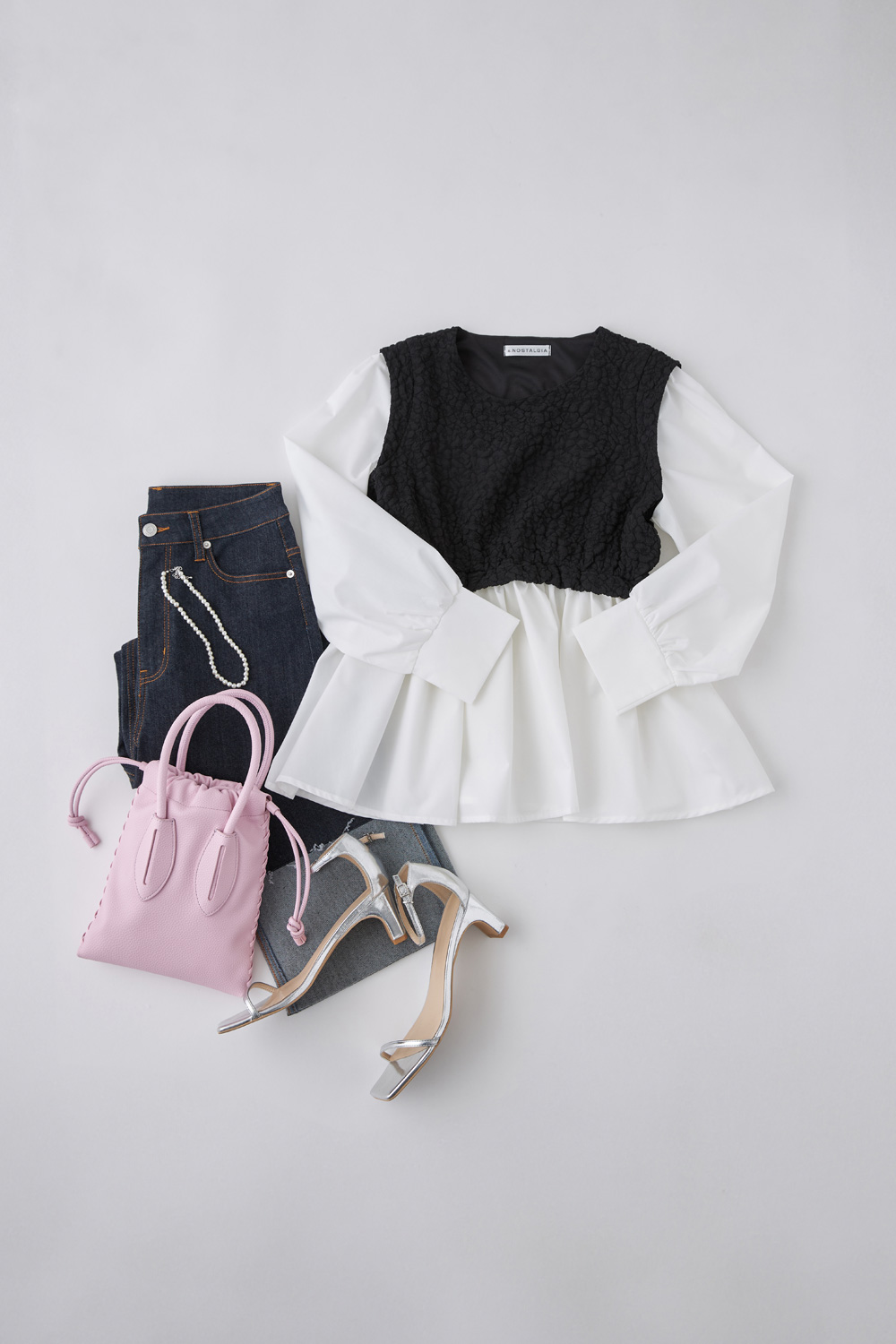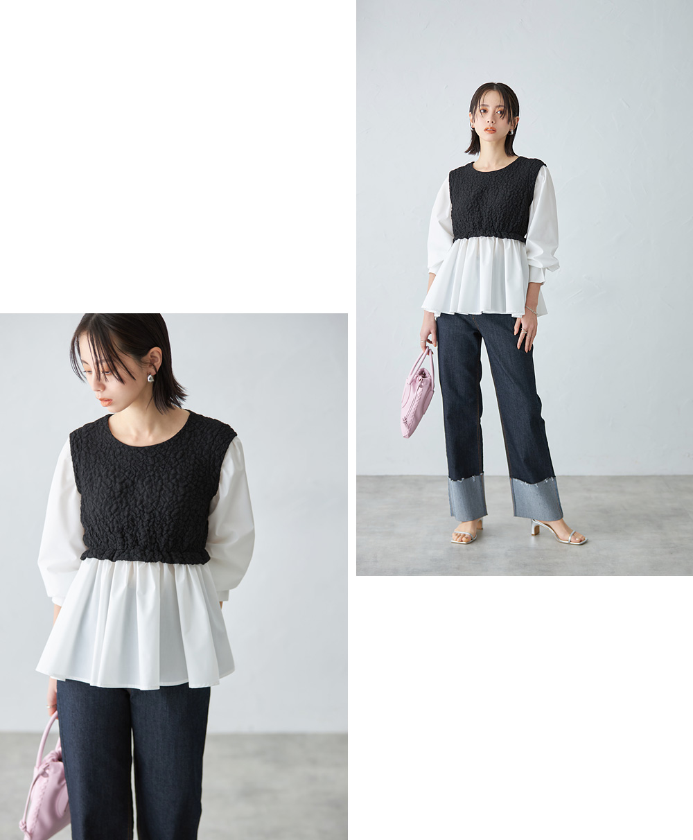 ふくれジャガードドッキングペプラムブラウス