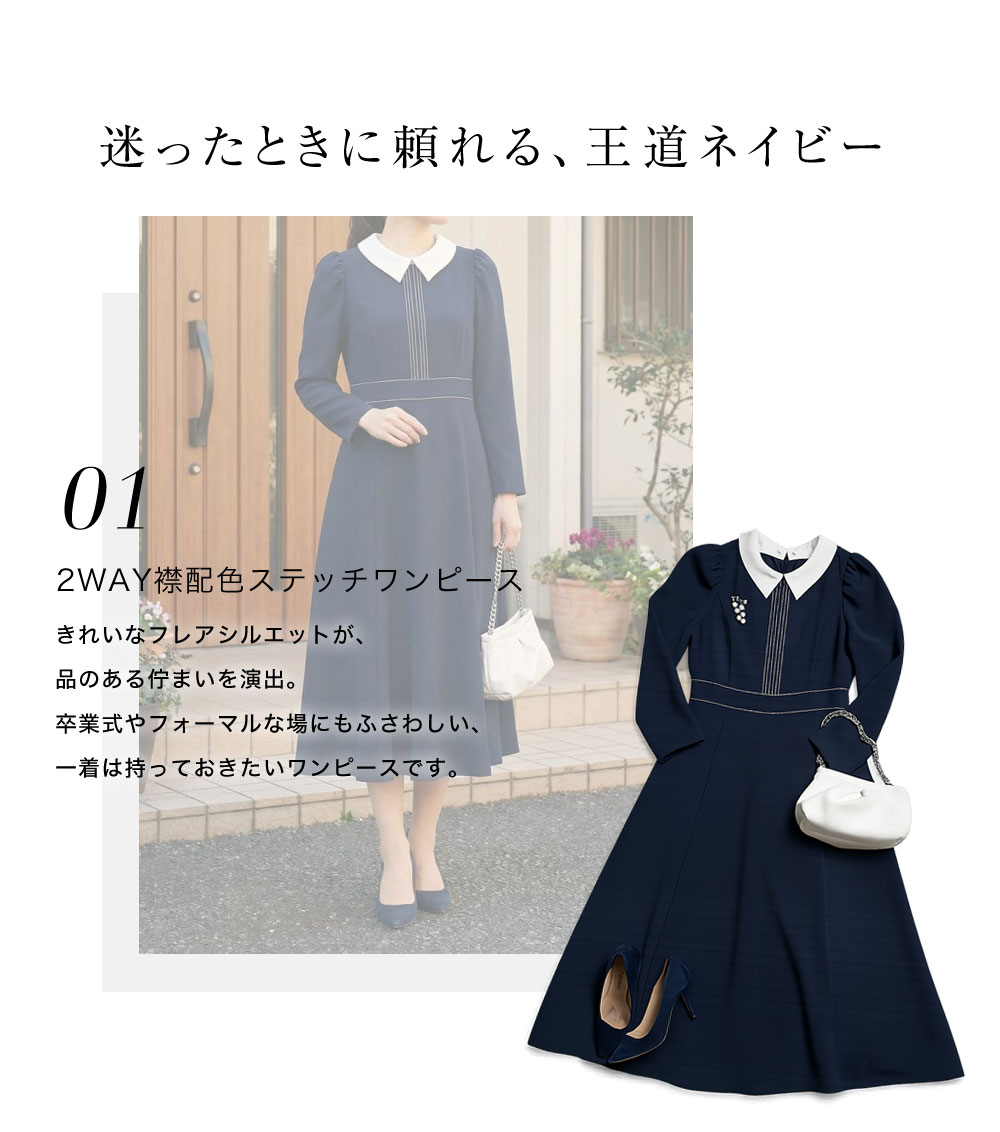 2WAY襟配色ステッチワンピース ¥9,790 <