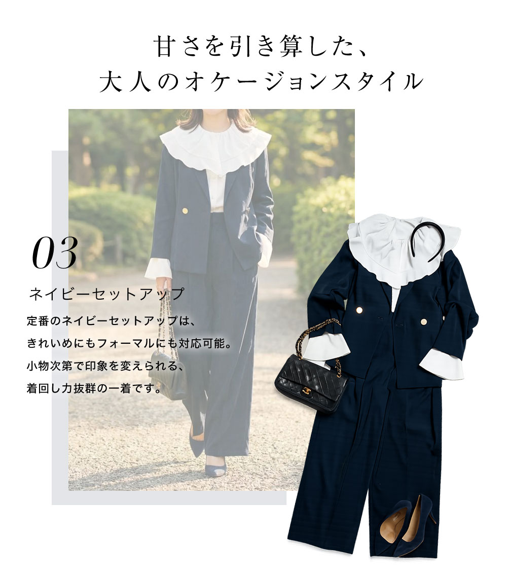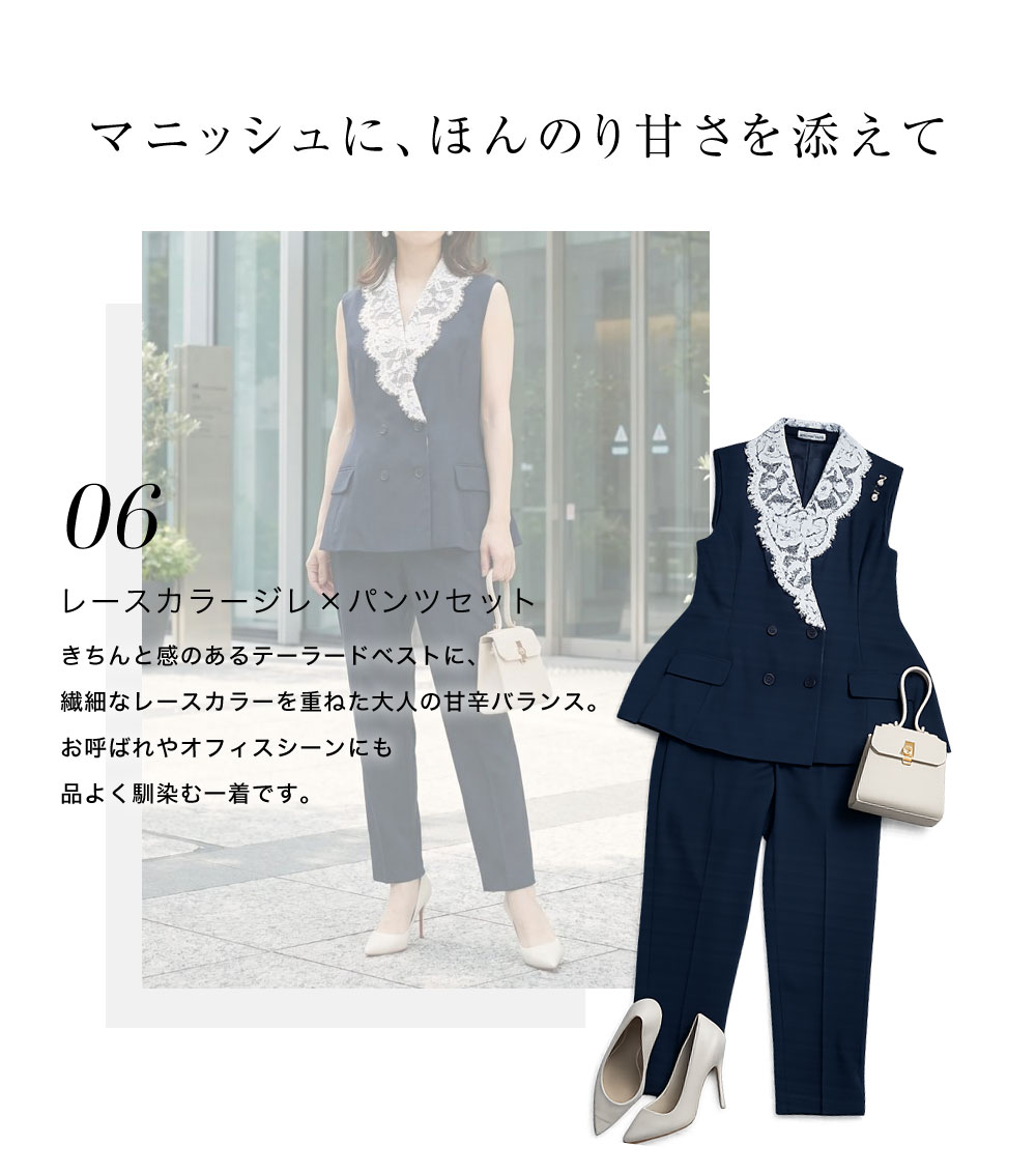 レースカラーペプラムジレ ¥7,590 テーパードパンツ ¥4,290