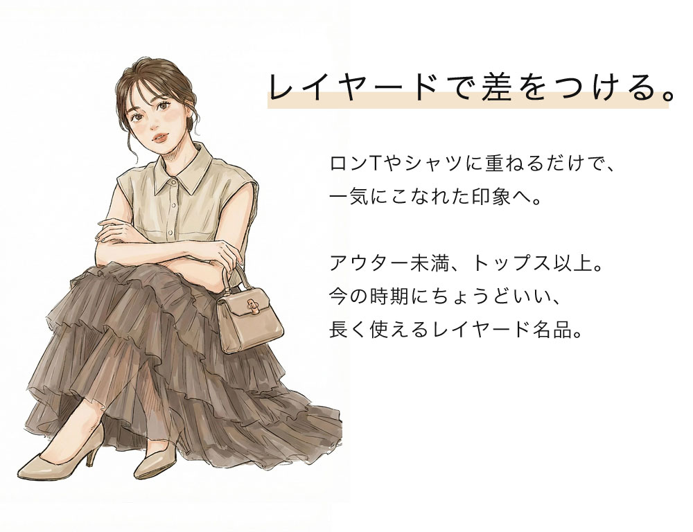 ARVELLIA❘ショートベスト ¥5,390 ARVELLIA❘レイヤードチュールスカート ¥5,390