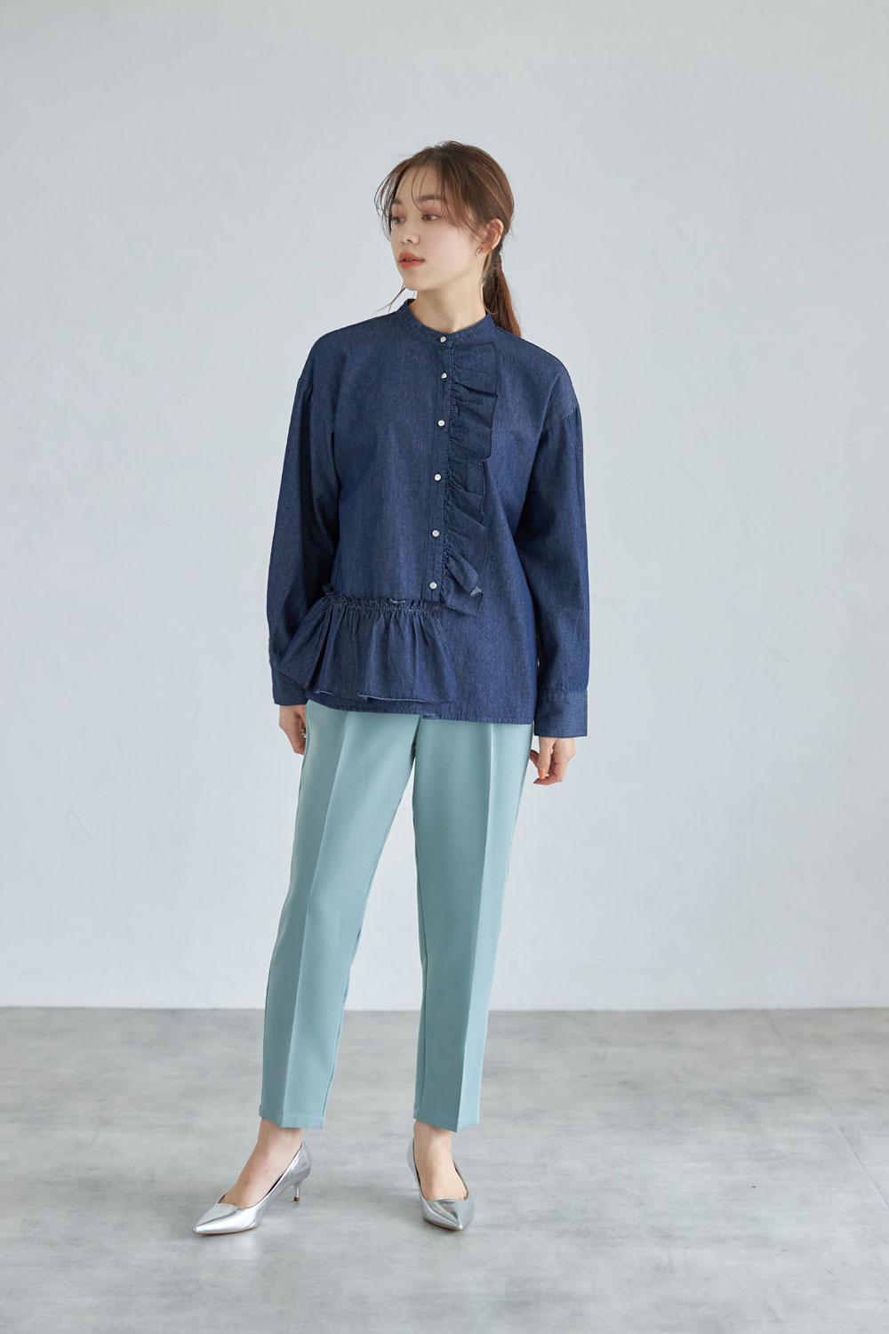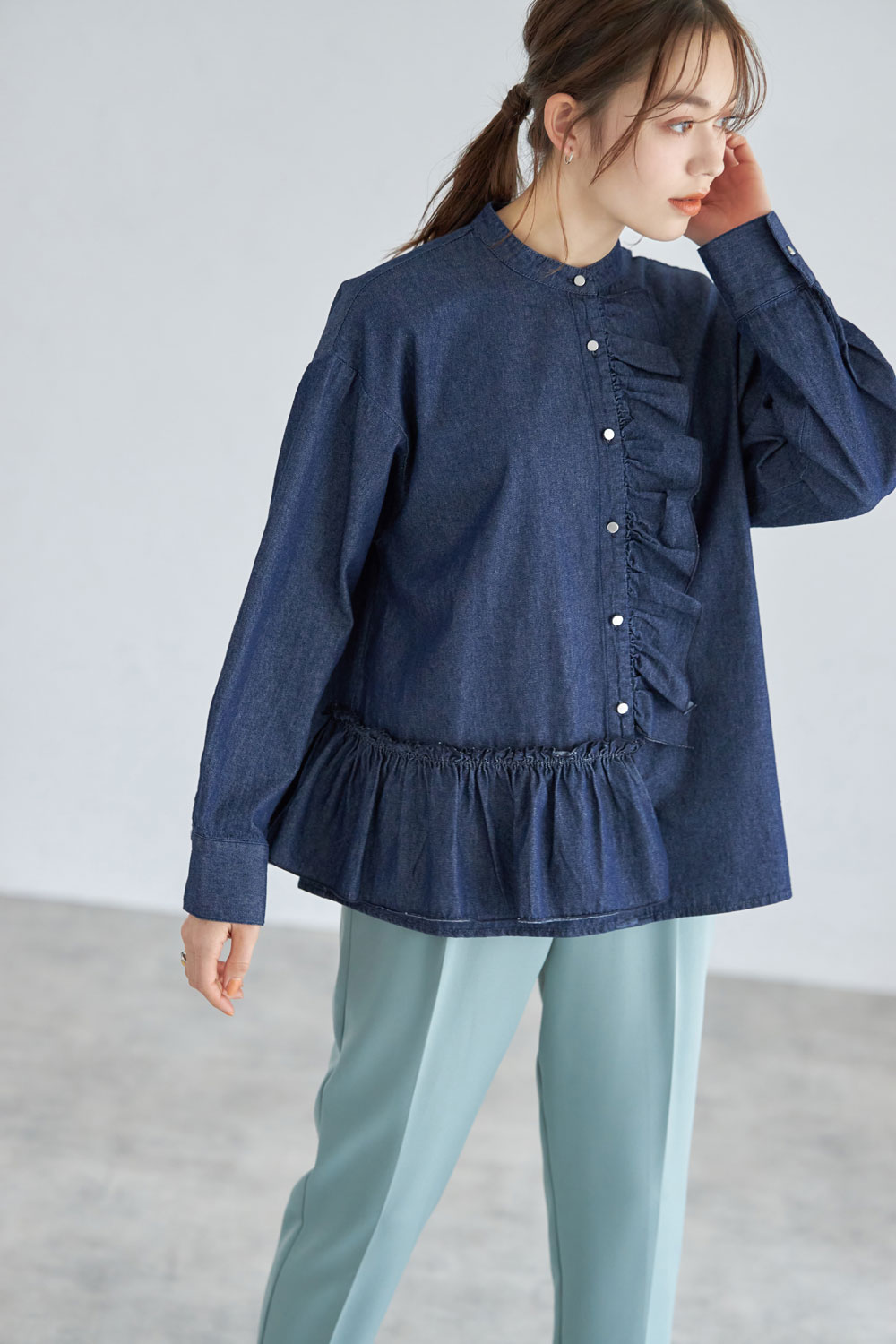 デニムフリルシャツ