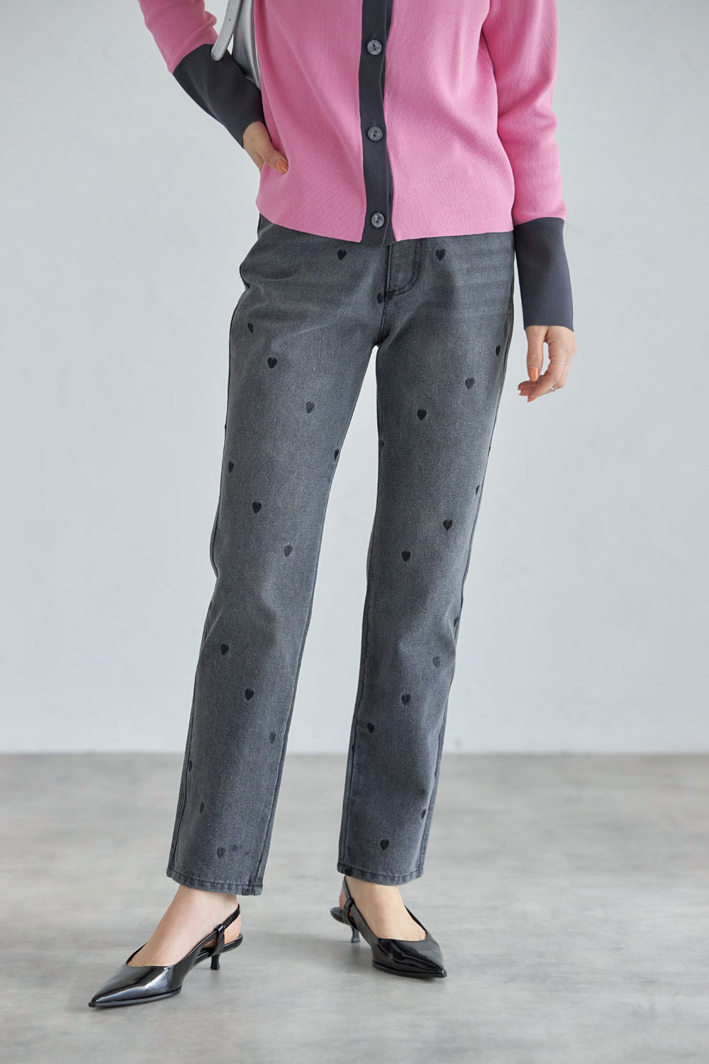 ハート刺繍デニムテーパードパンツ