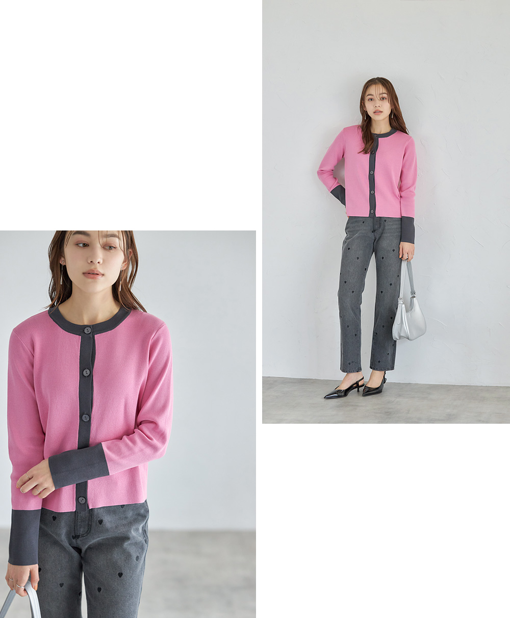 バイカラーニットカーディガン