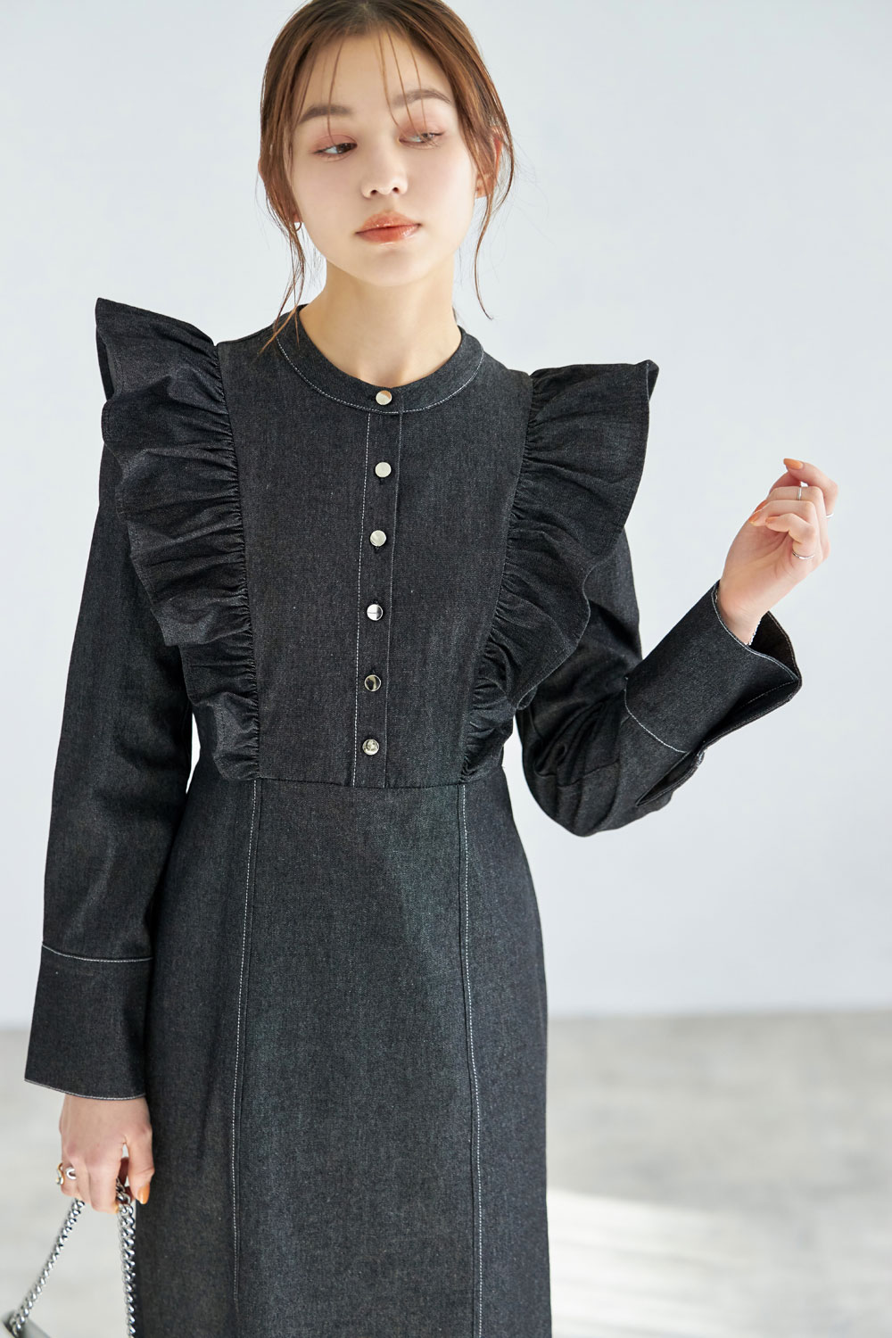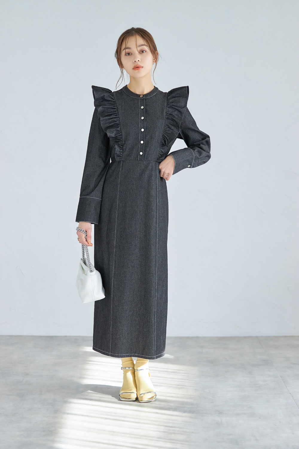 フリルデニムワンピース