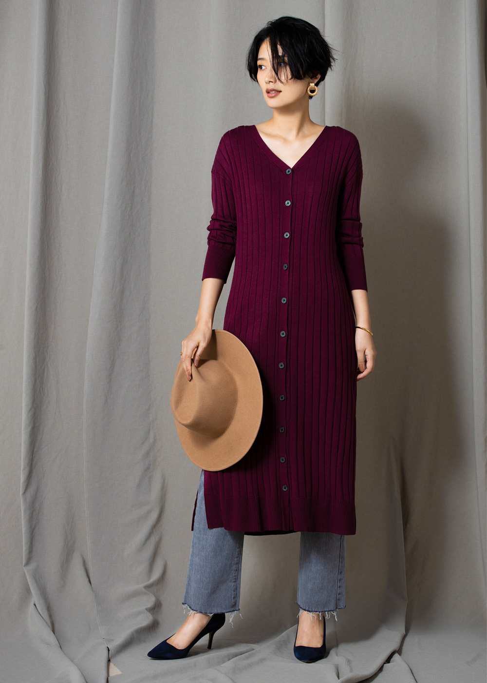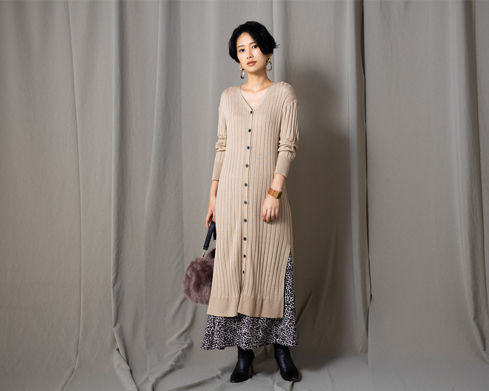前後2WAYロングカーデニットワンピース