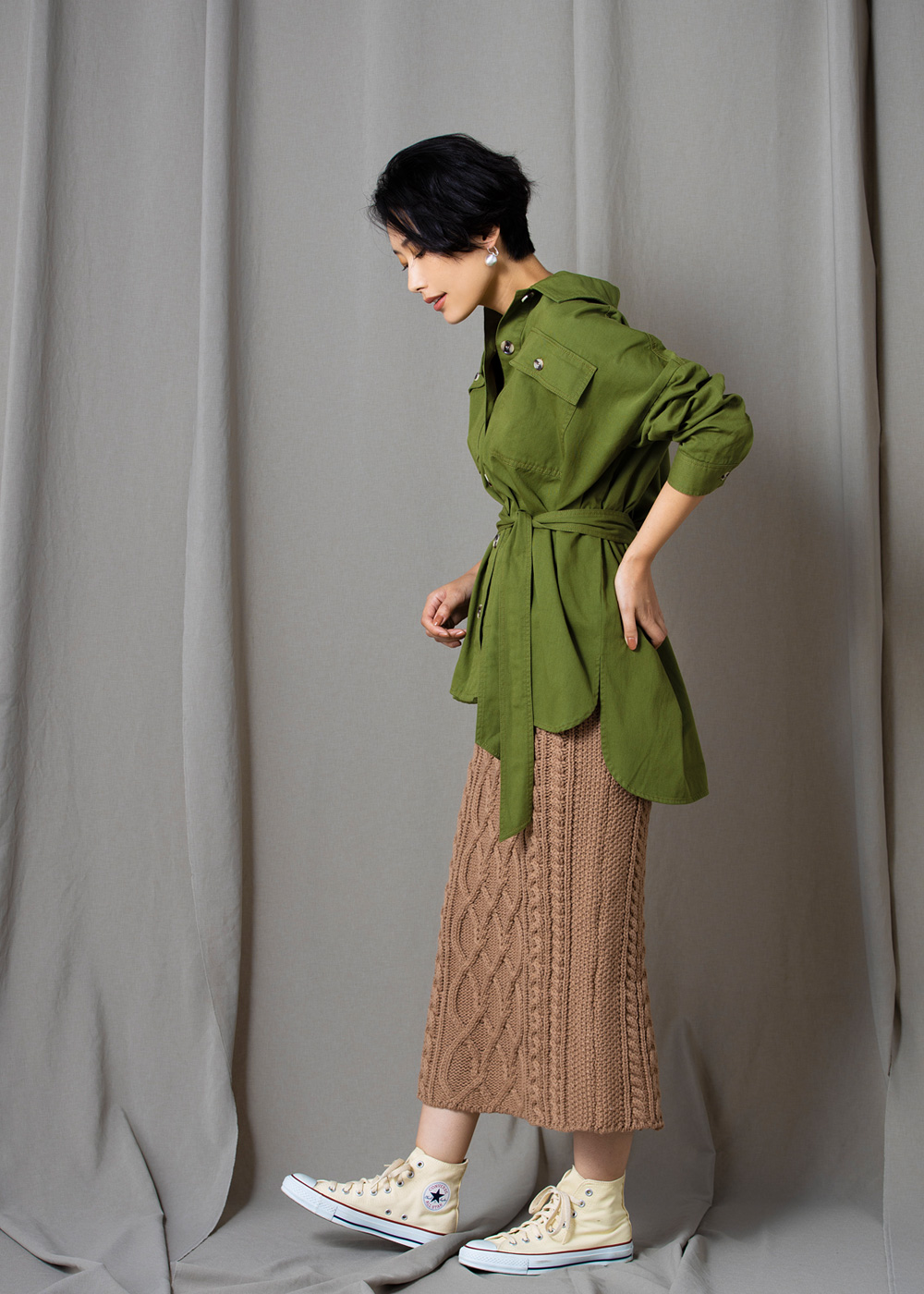 ケーブルニットタイトスカート