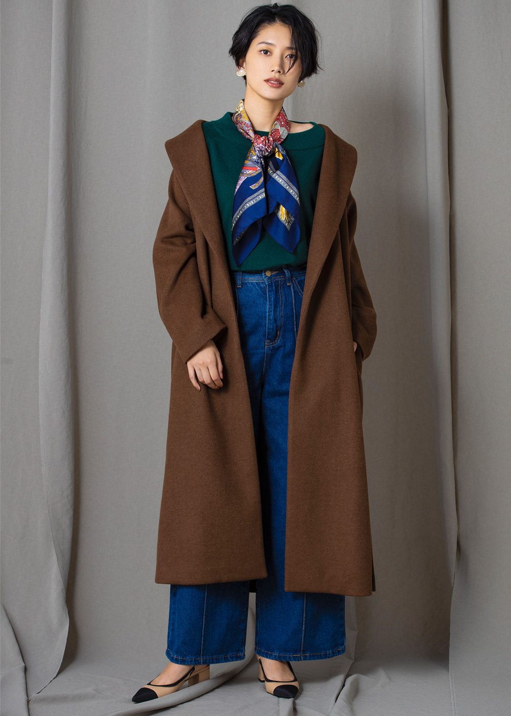 ウール混ショールカラーガウンロングコート