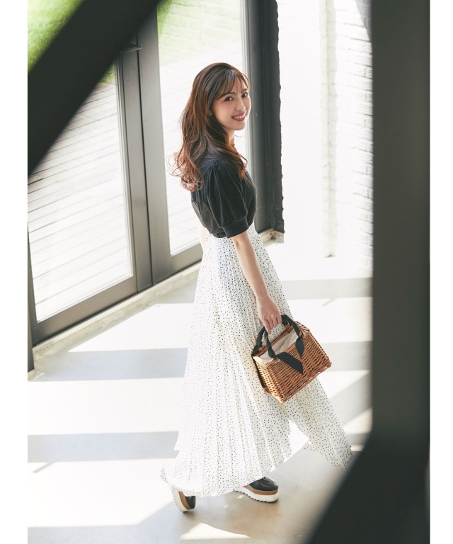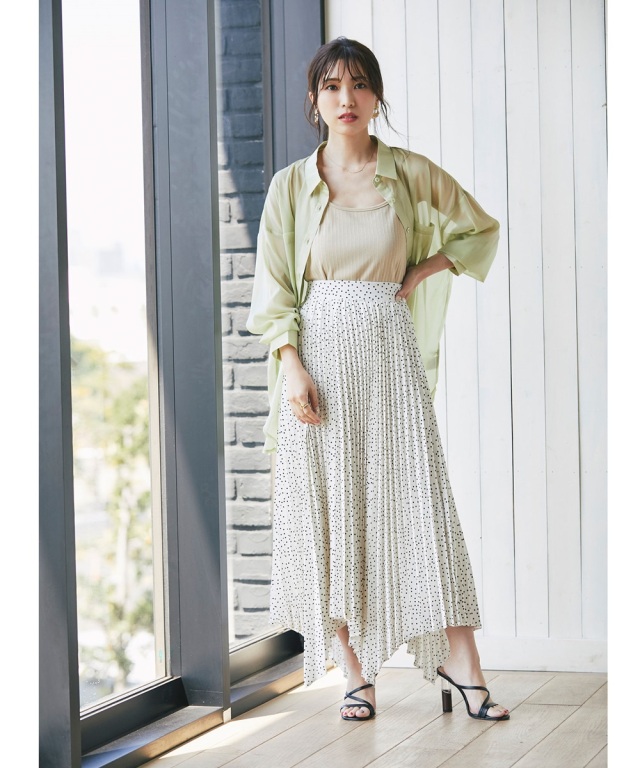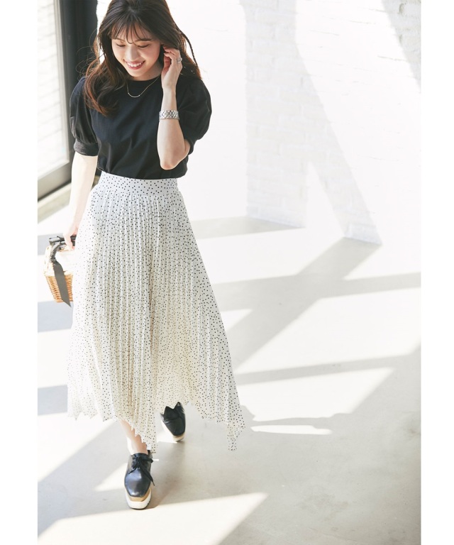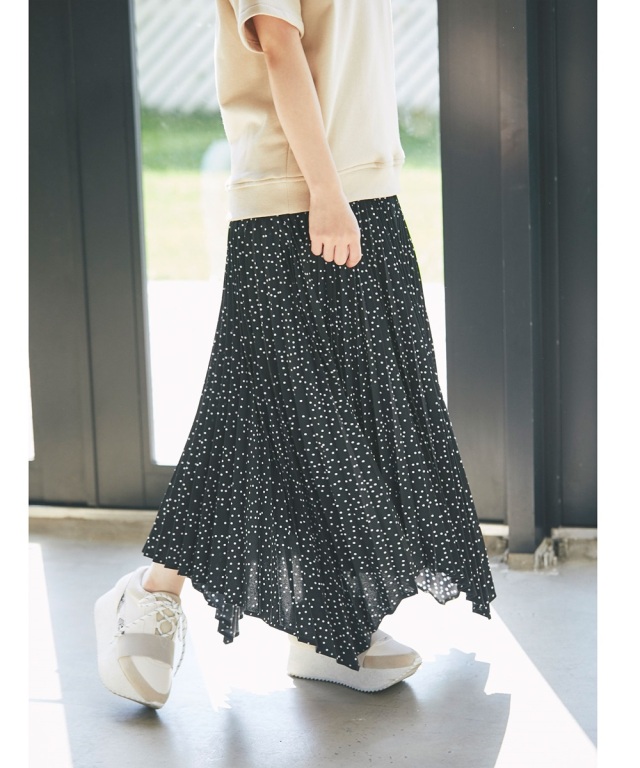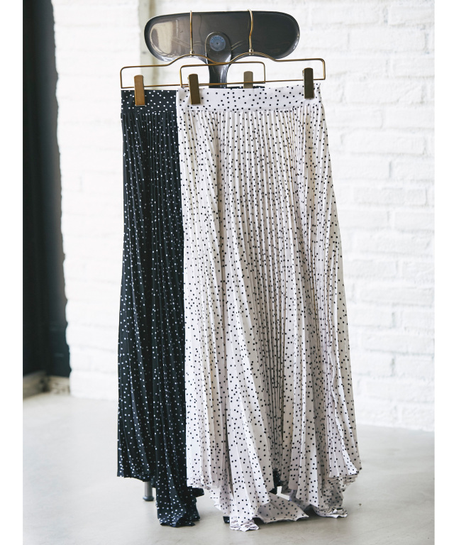 アコーディオンプリーツドットスカート