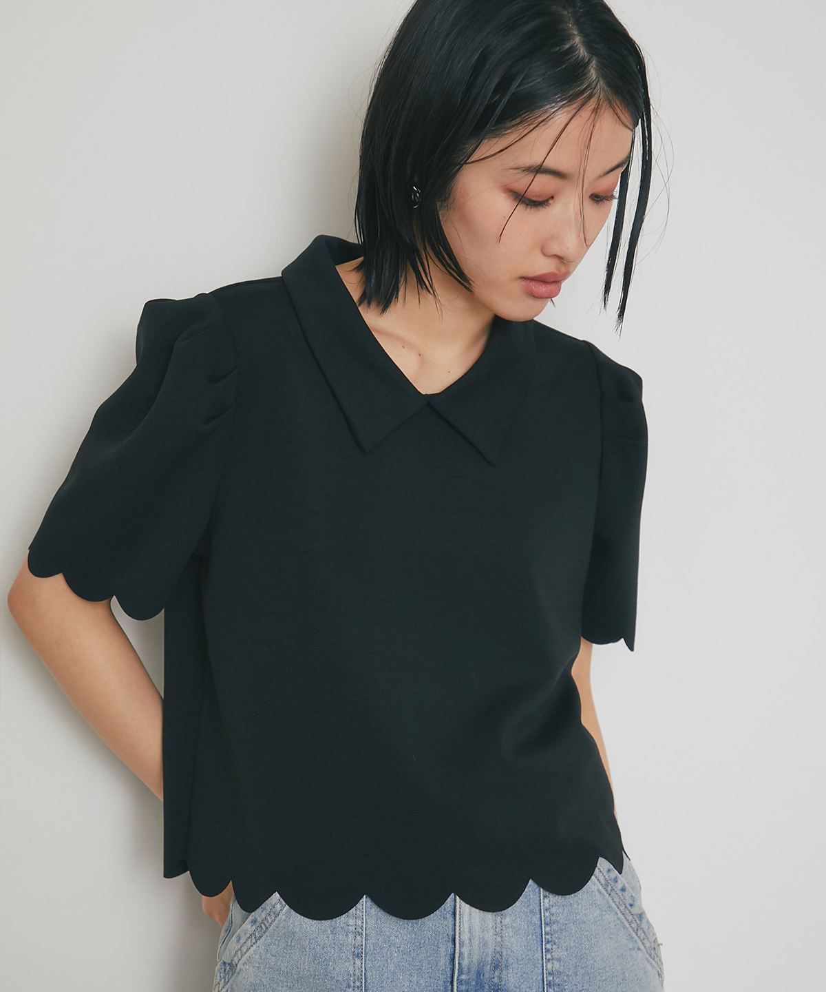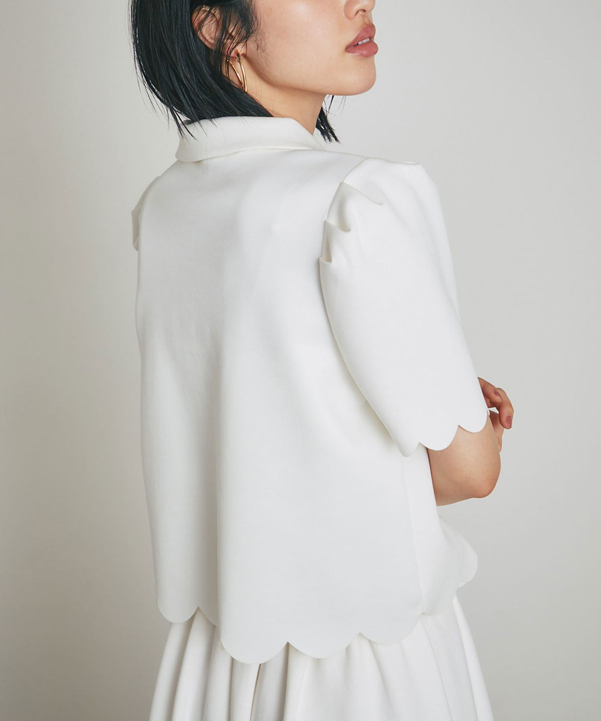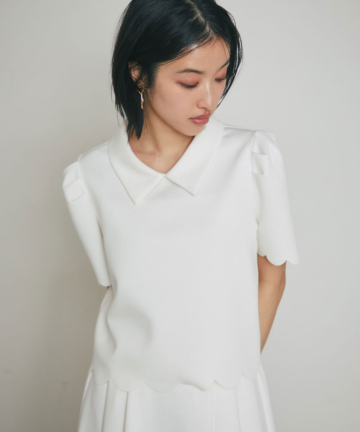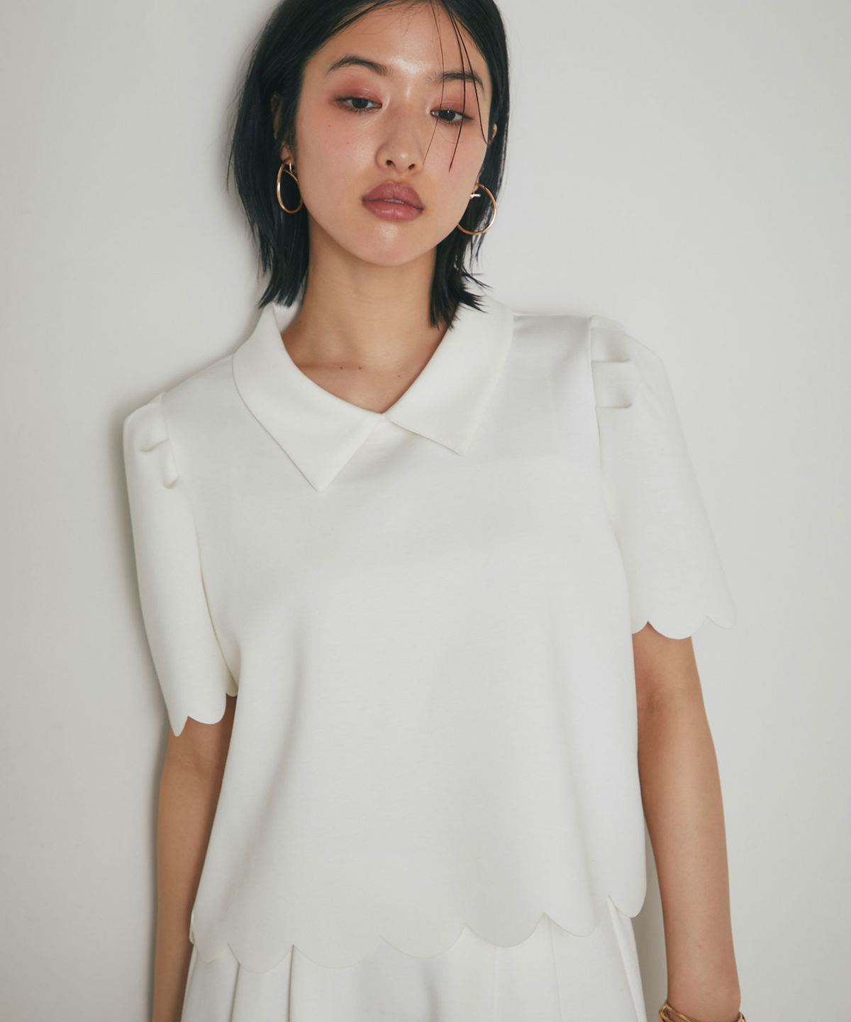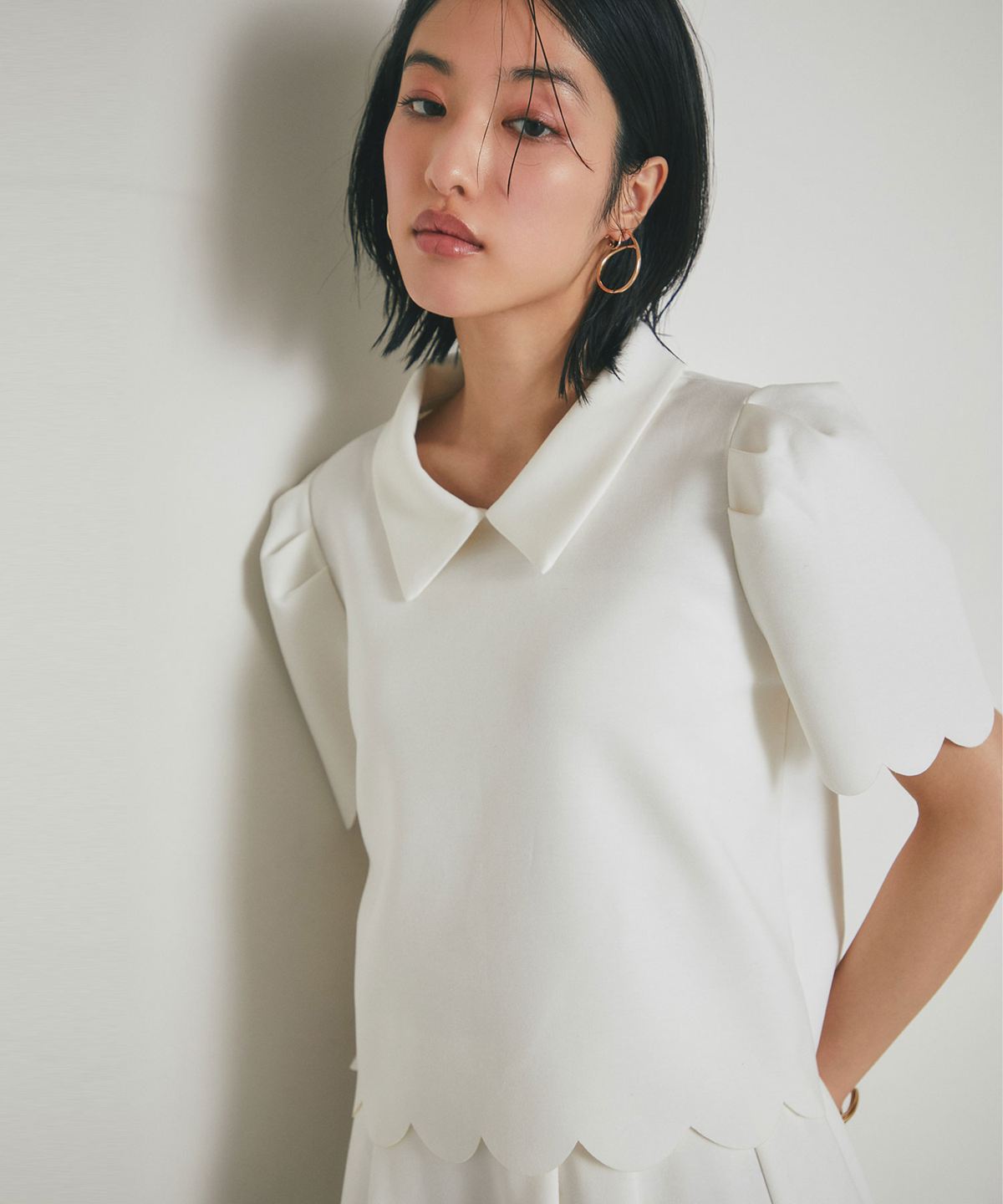 可憐なスカラップカットで仕上げた、上品フェミニントップス。