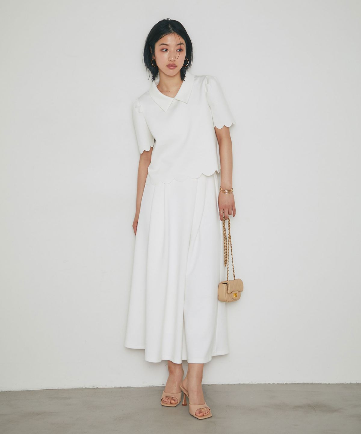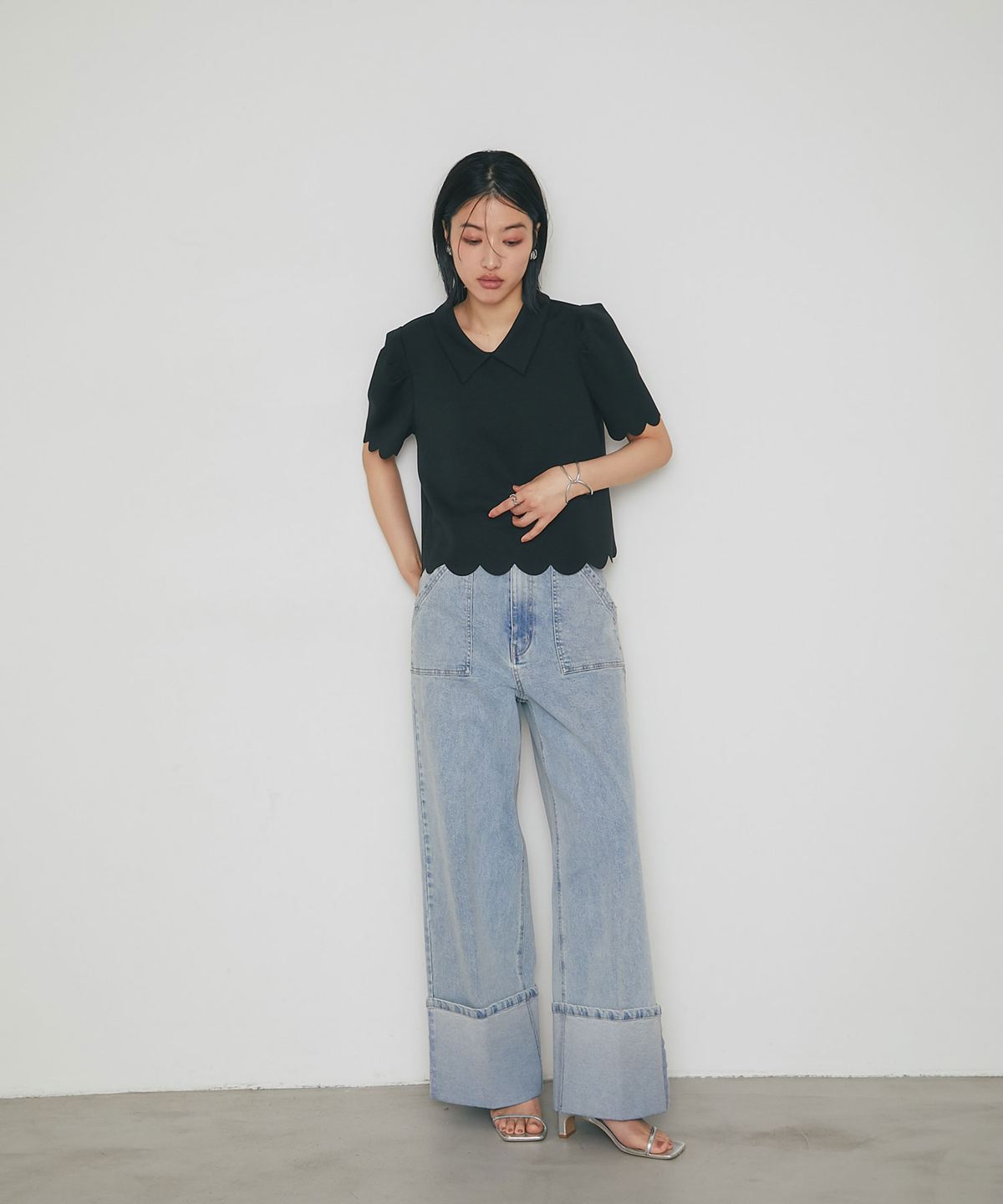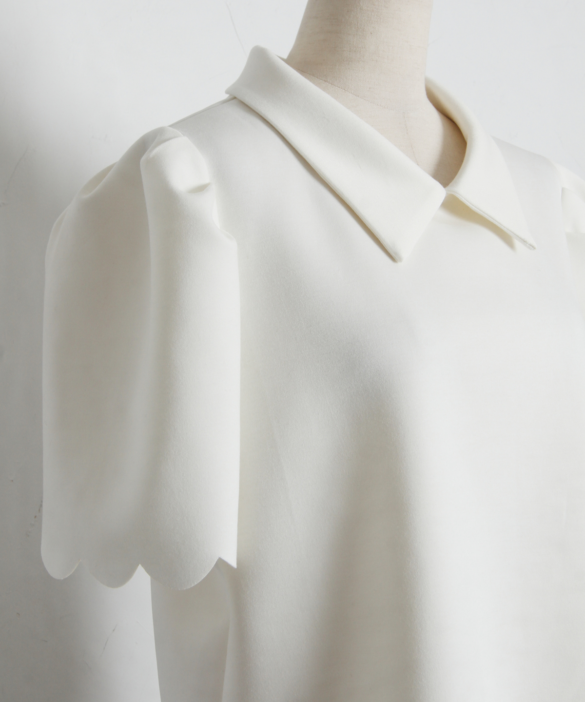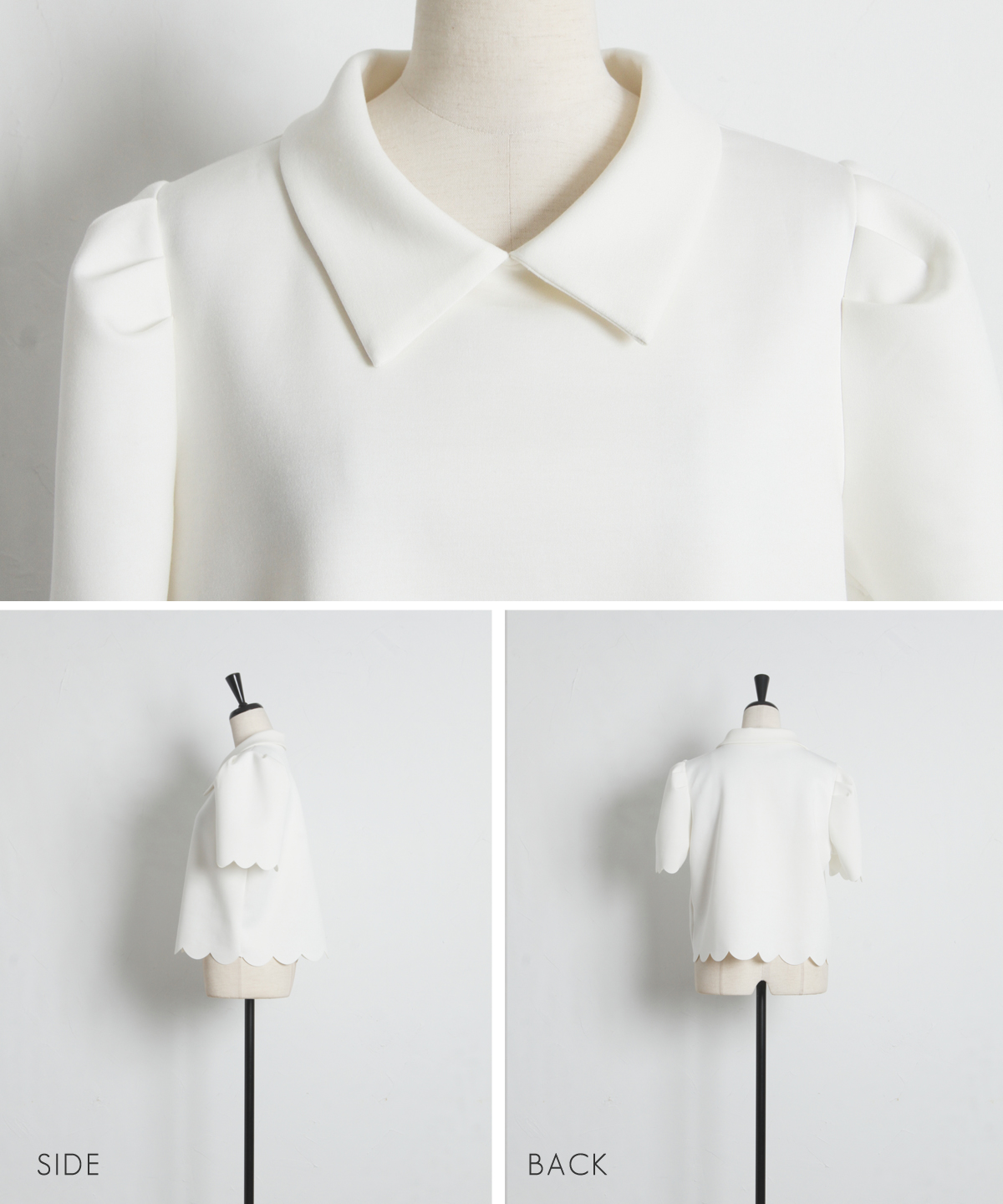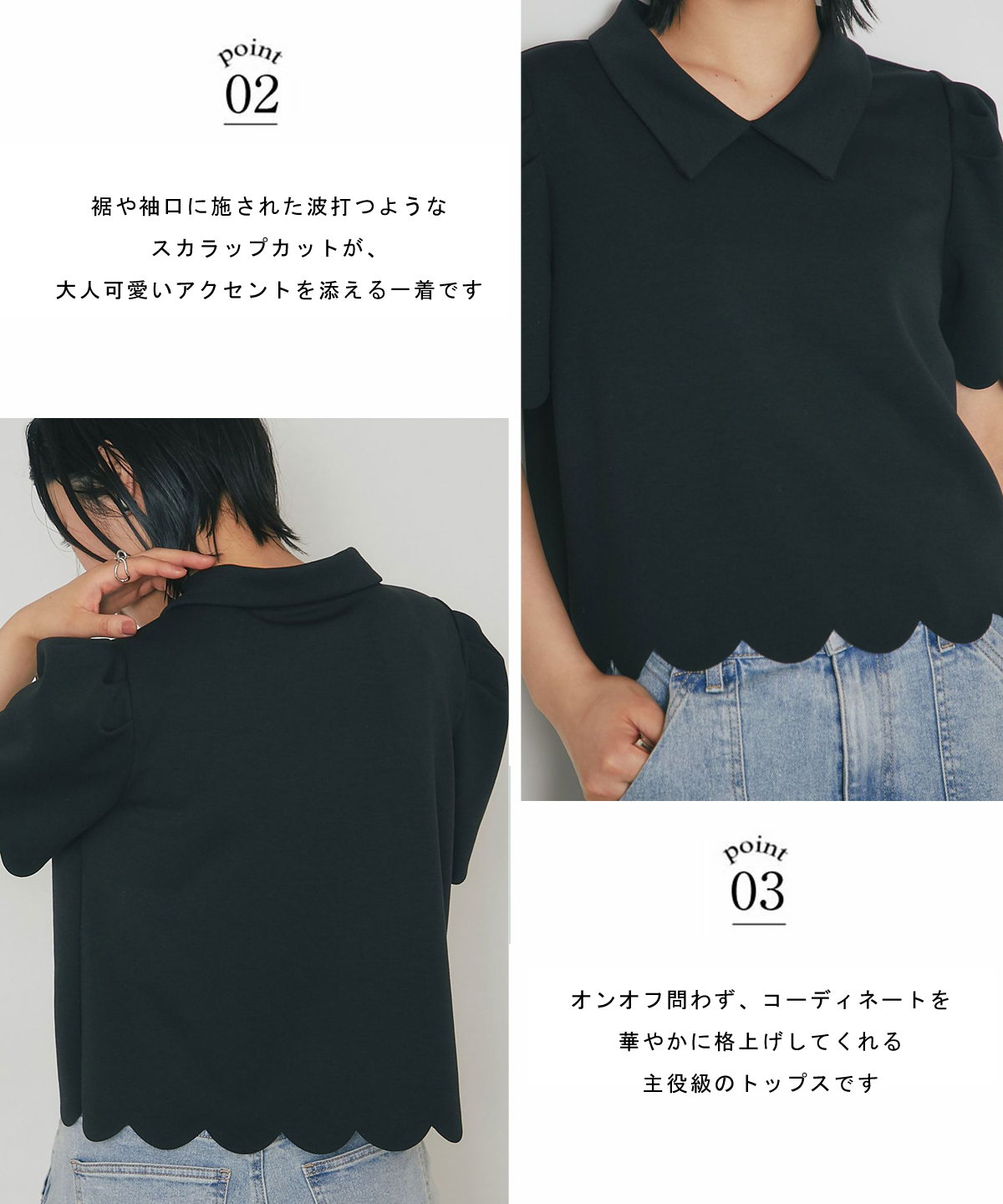 可憐なスカラップカットで仕上げた、上品フェミニントップス。
