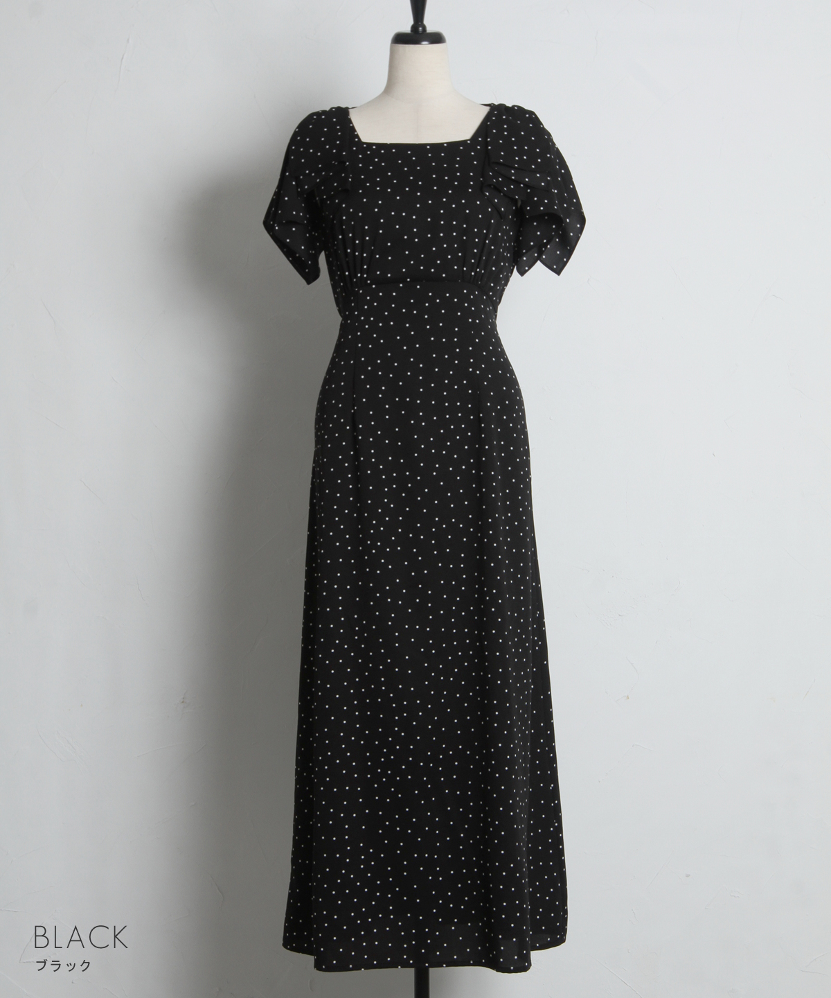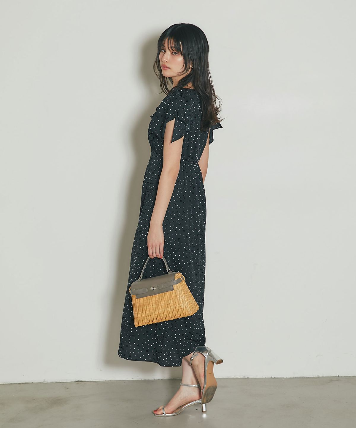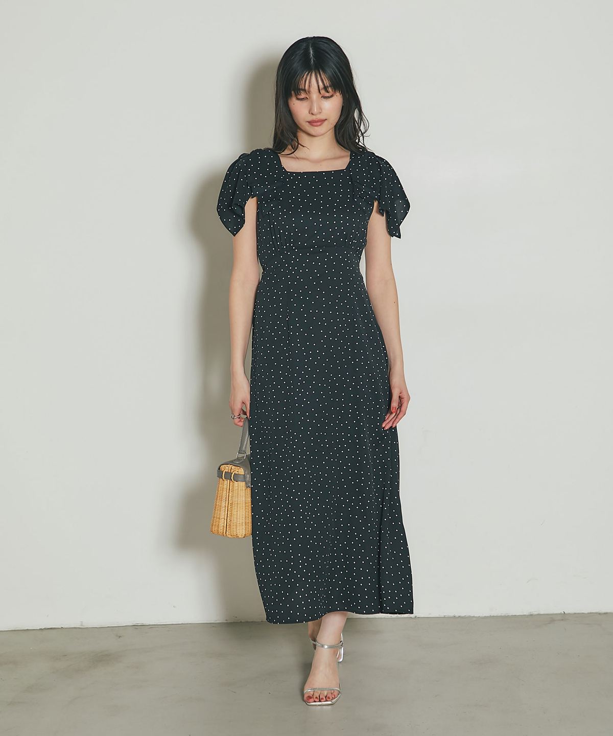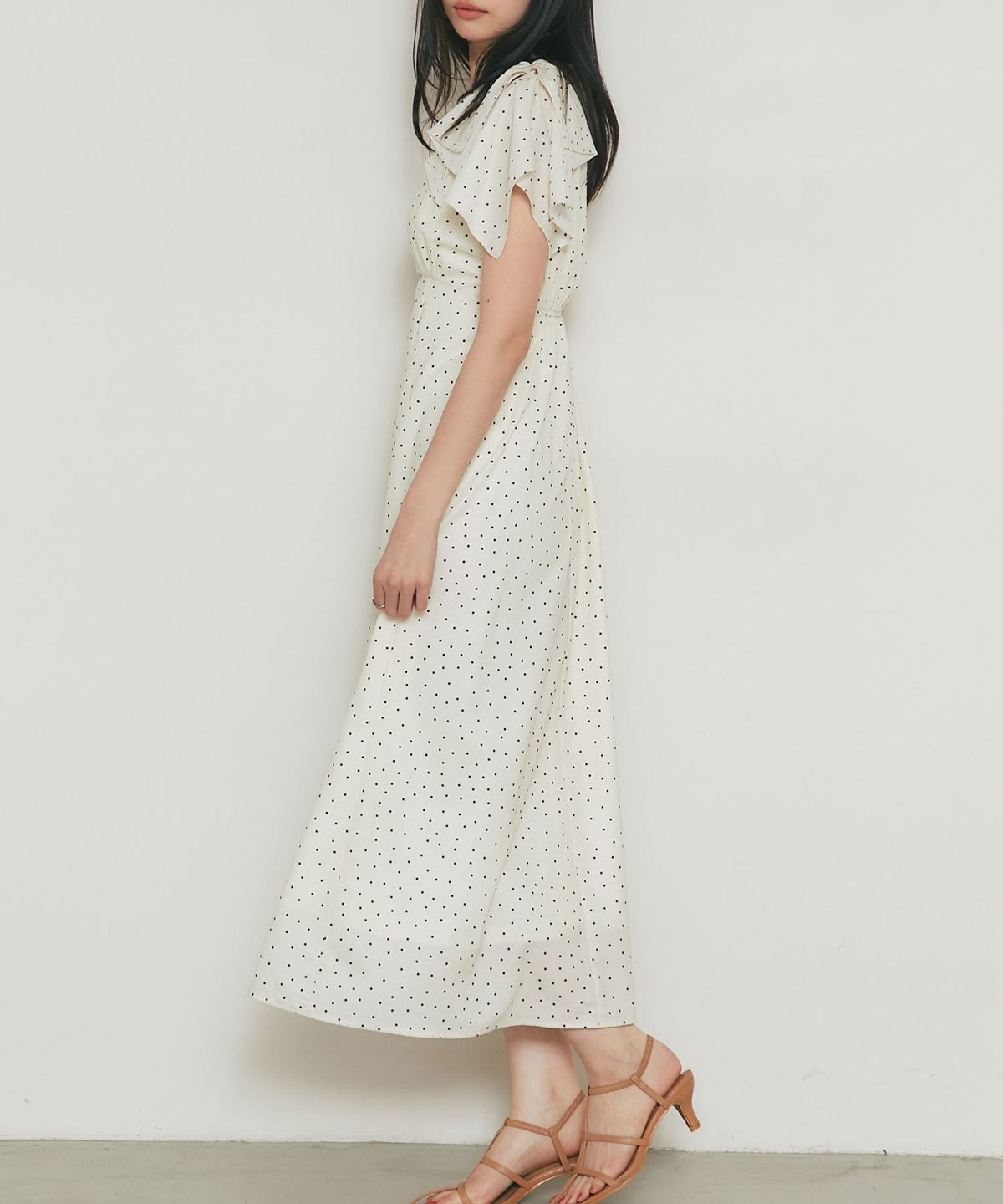 可愛らしさと大人っぽさを両立した ドット柄リボンスリーブワンピース。
