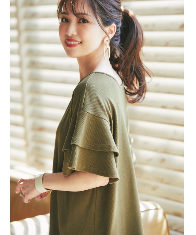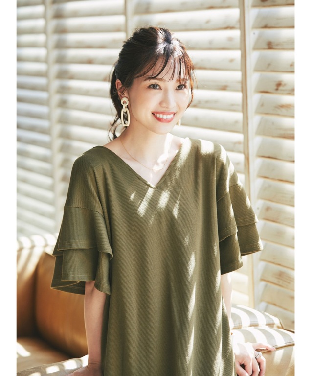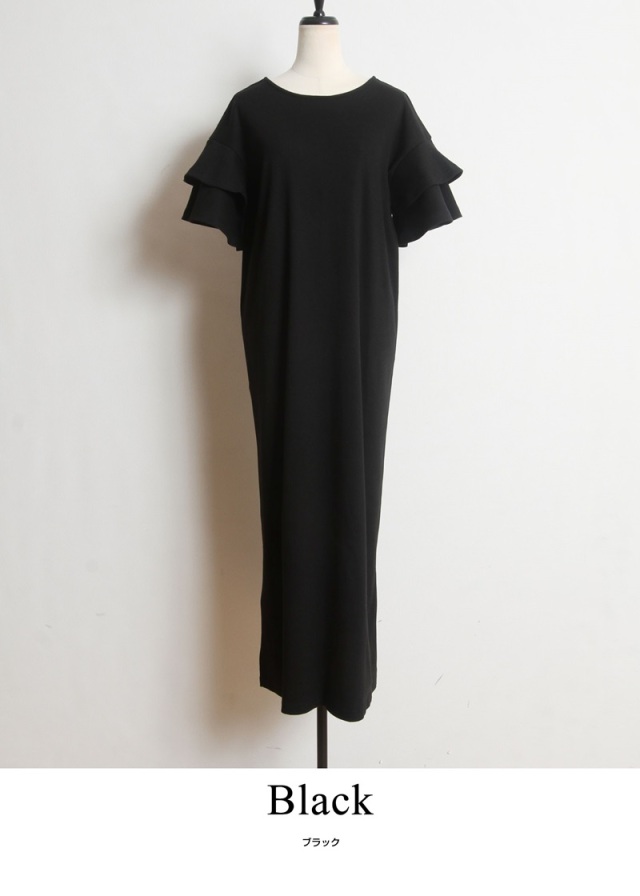 ボリュームのあるフリル袖が可愛いロング丈ワンピース。