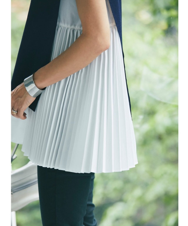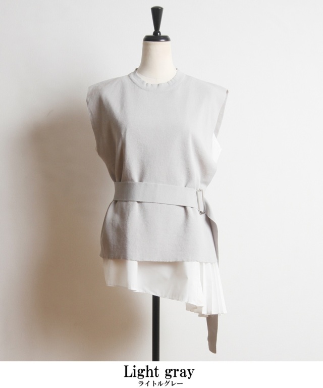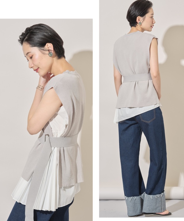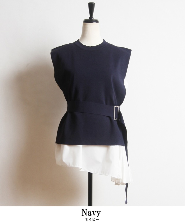 おしゃれ上級者見えするベルト付きノースリドッキングニット