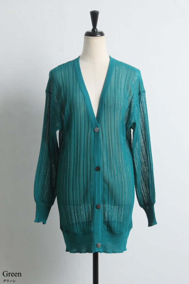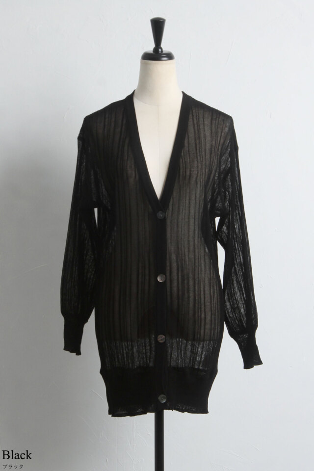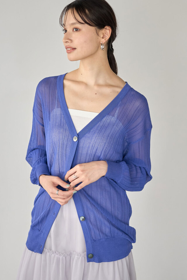 ゆったり羽織れるロング丈が嬉しい、シアーロングVネックカーディガン