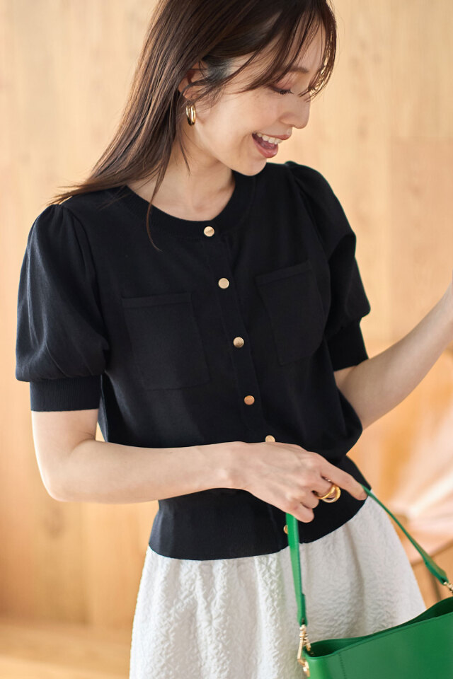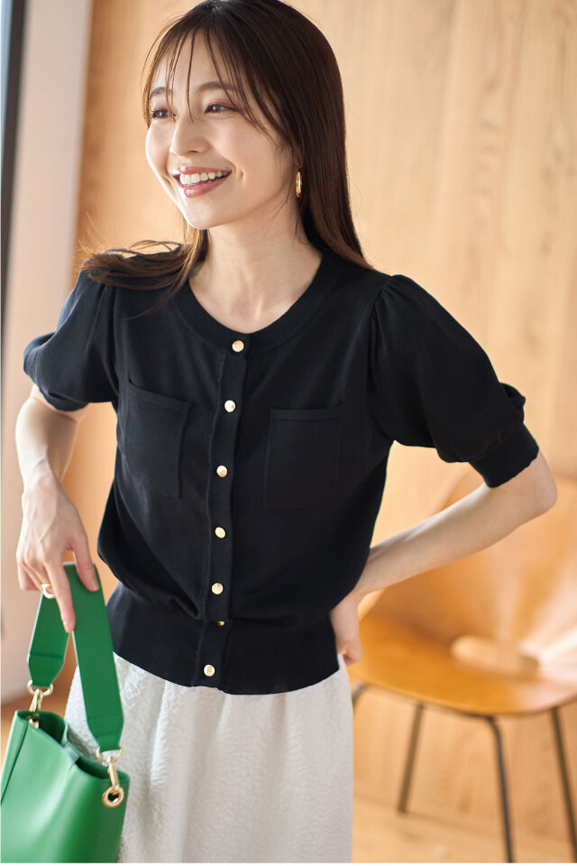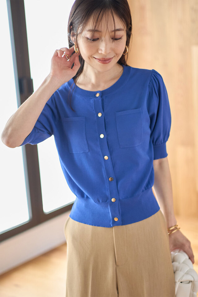 初夏から晩夏まで活躍するポケットハーフスリーブカーディガン