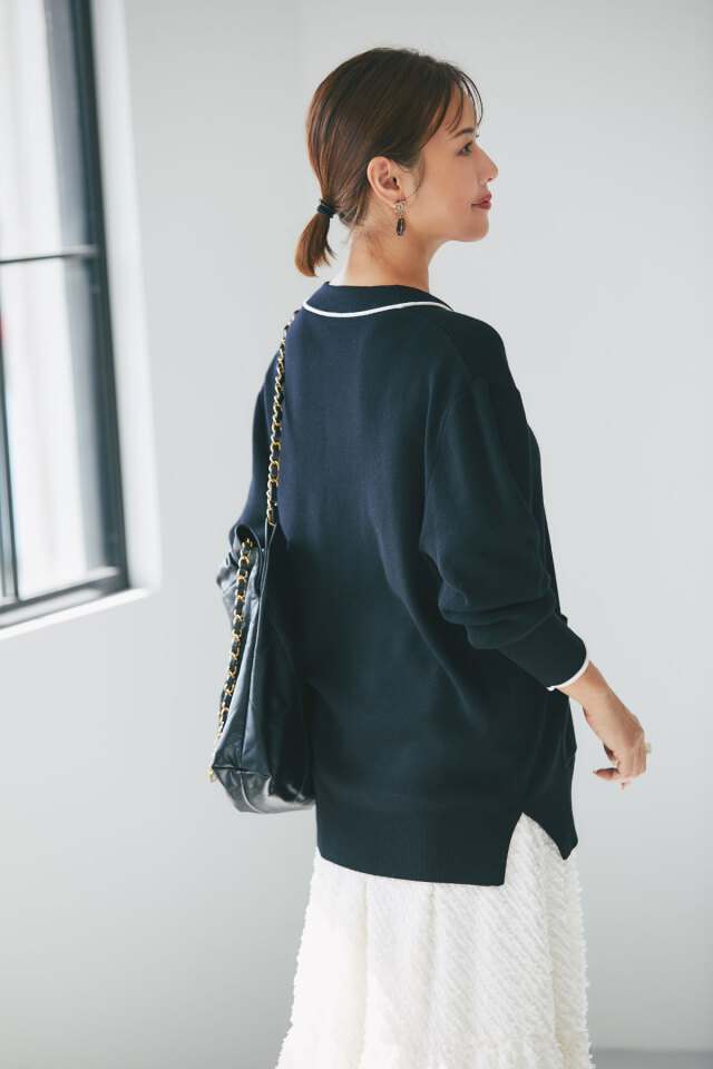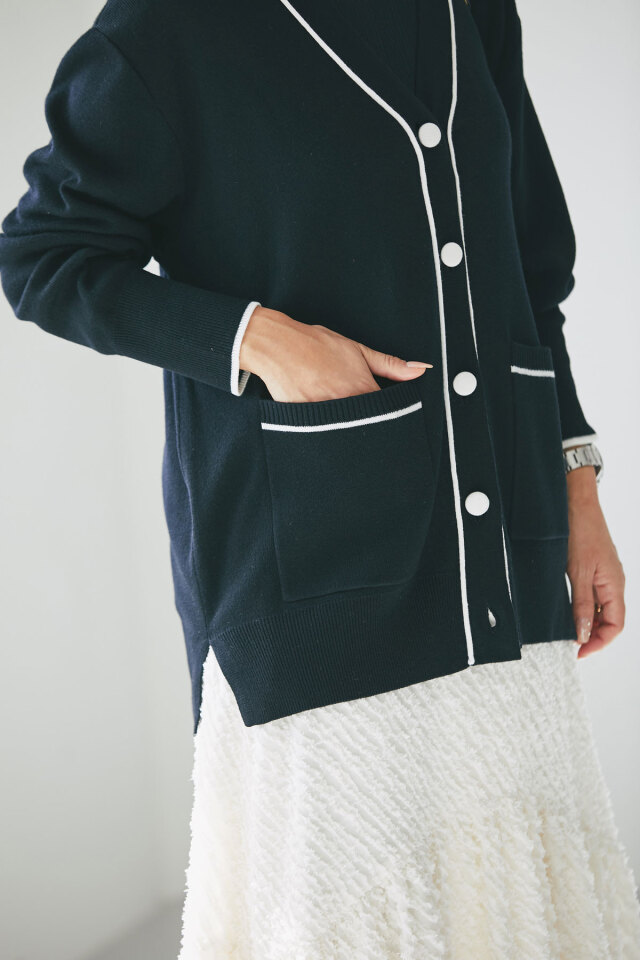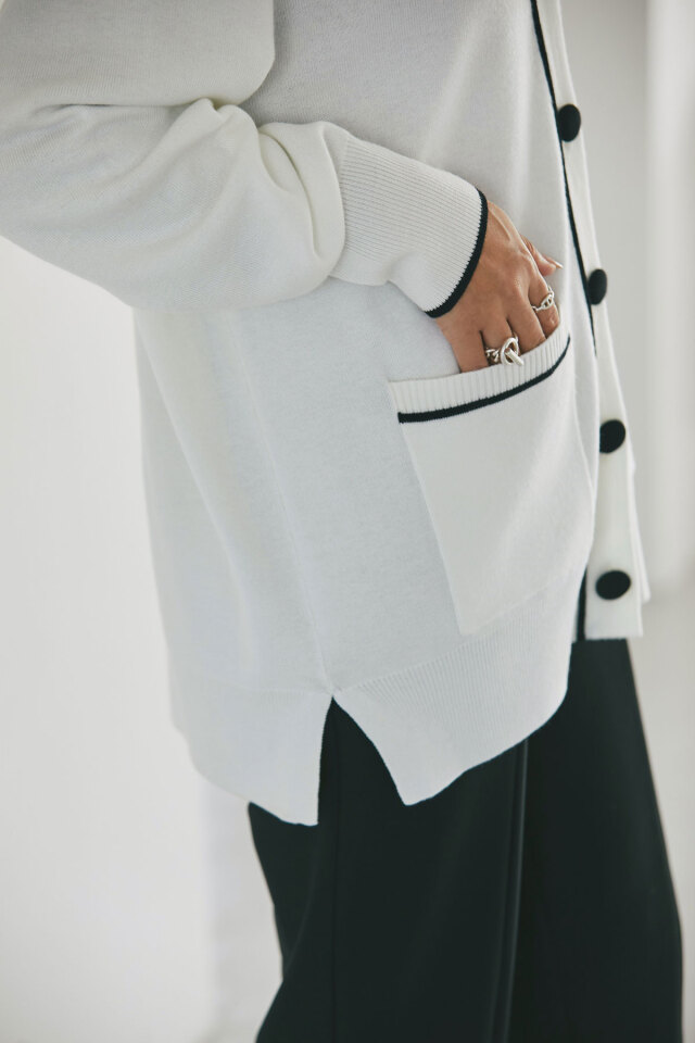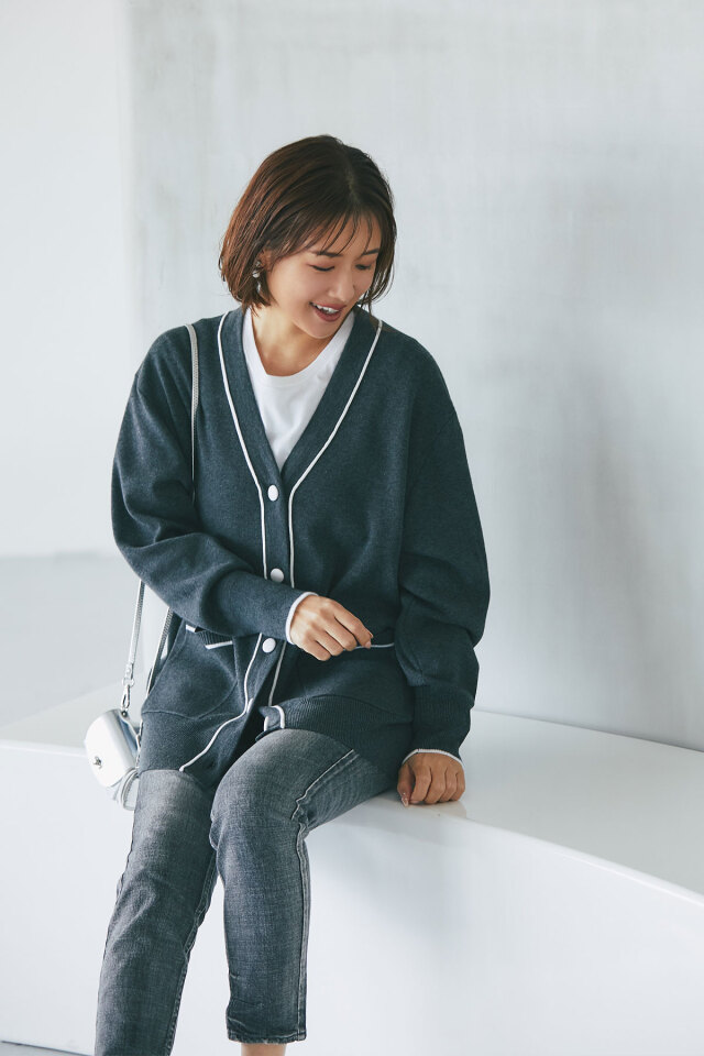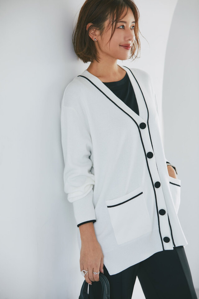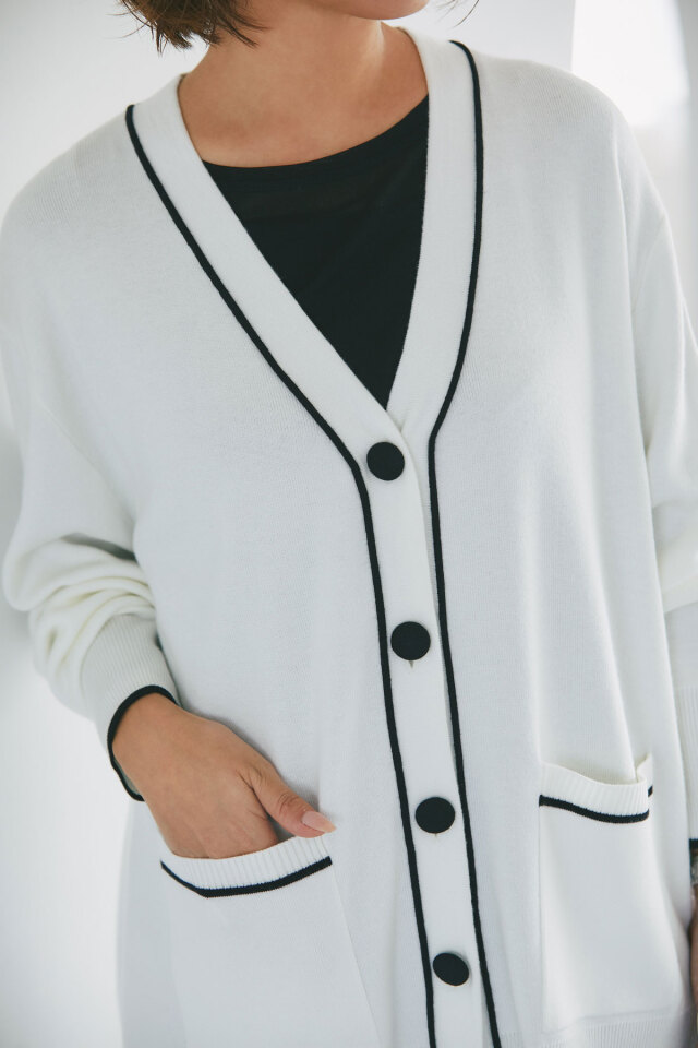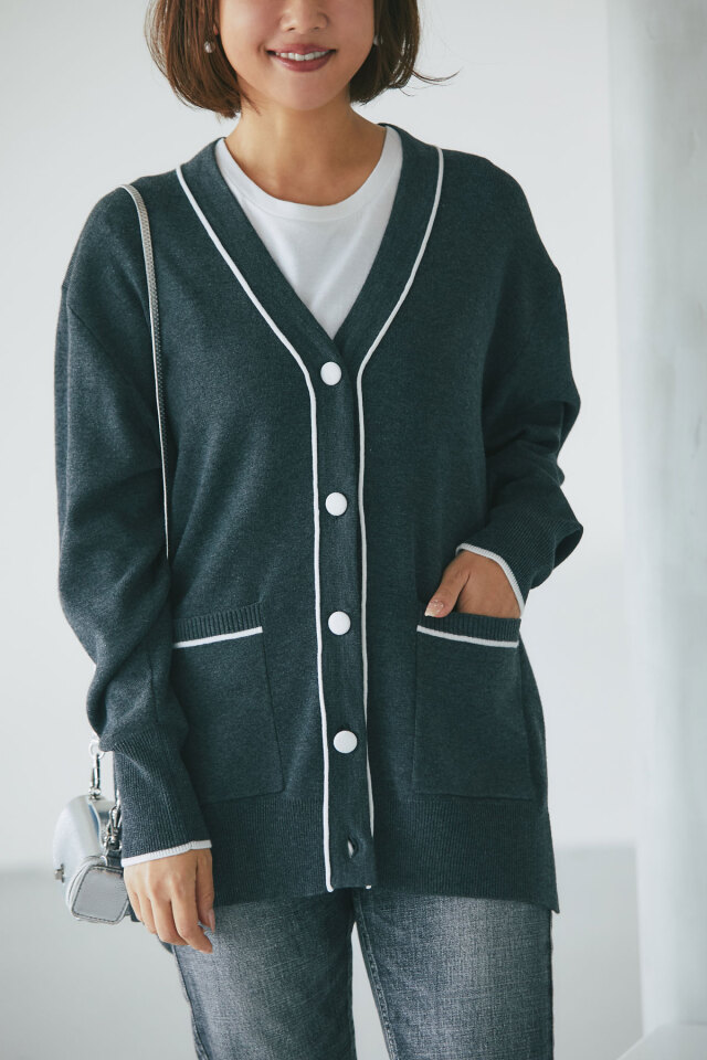 羽織にもトップスにも使える!配色が魅力的なVネックカーディガン