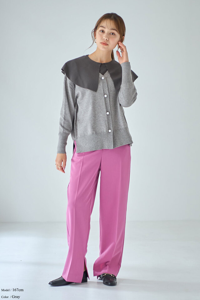 パール調の釦が目を惹く上品な印象のカーディガンは、可愛い4色のくすみカラー展開でデイリーにはもちろん、お仕事シーンやオケージョンにもおすすめ。