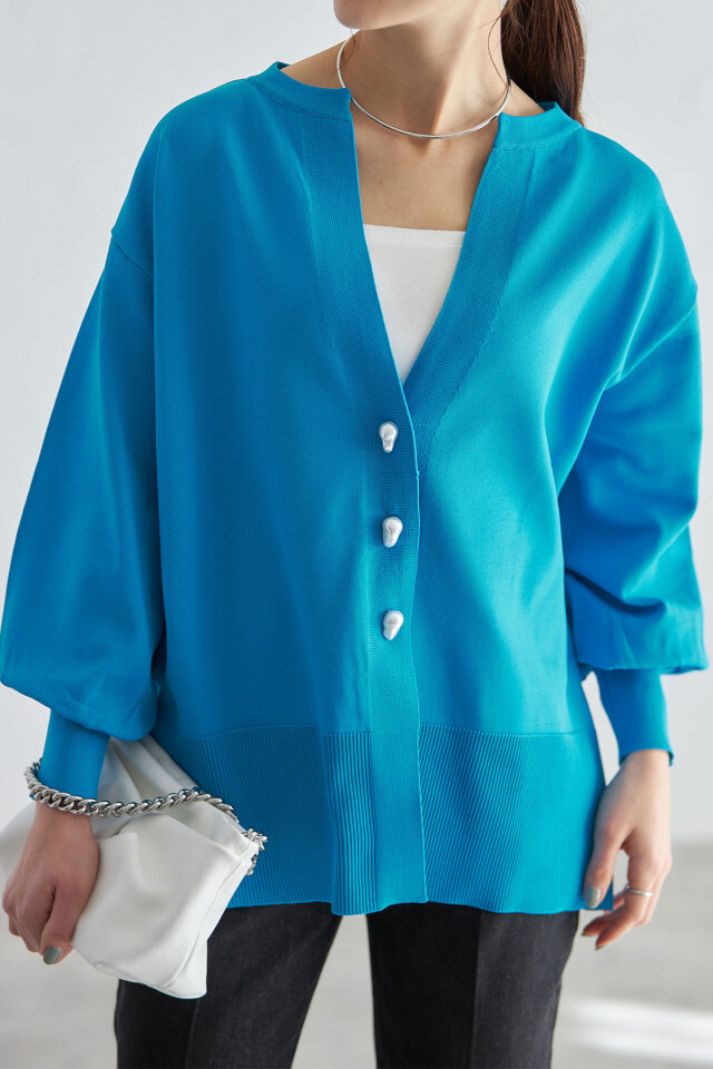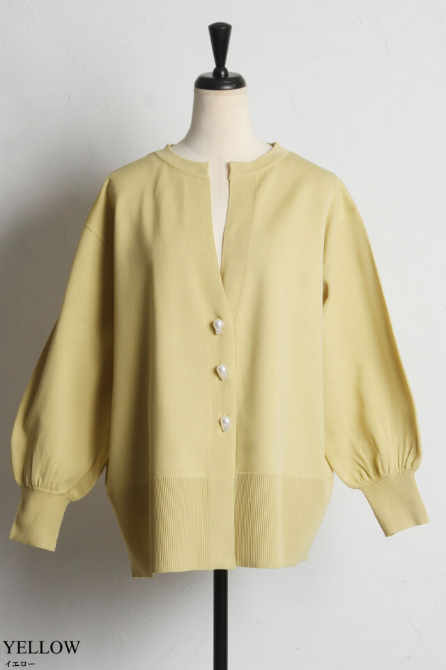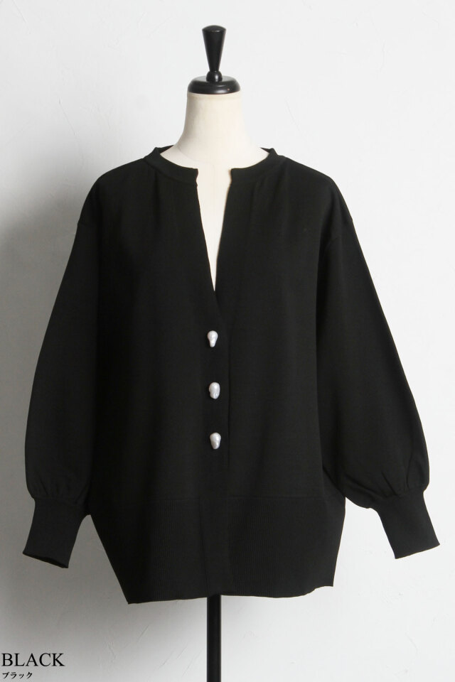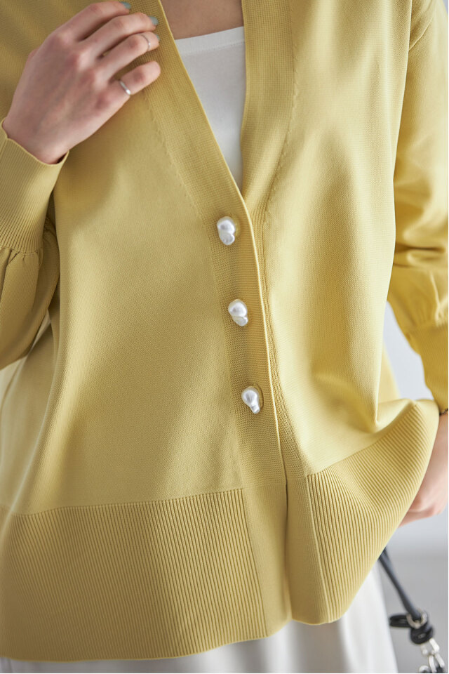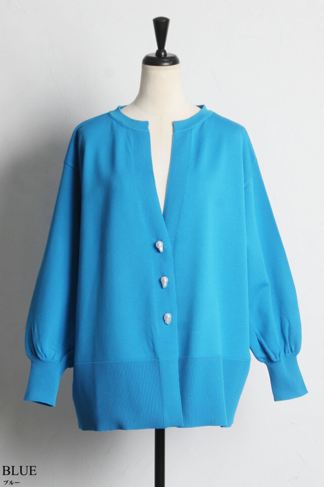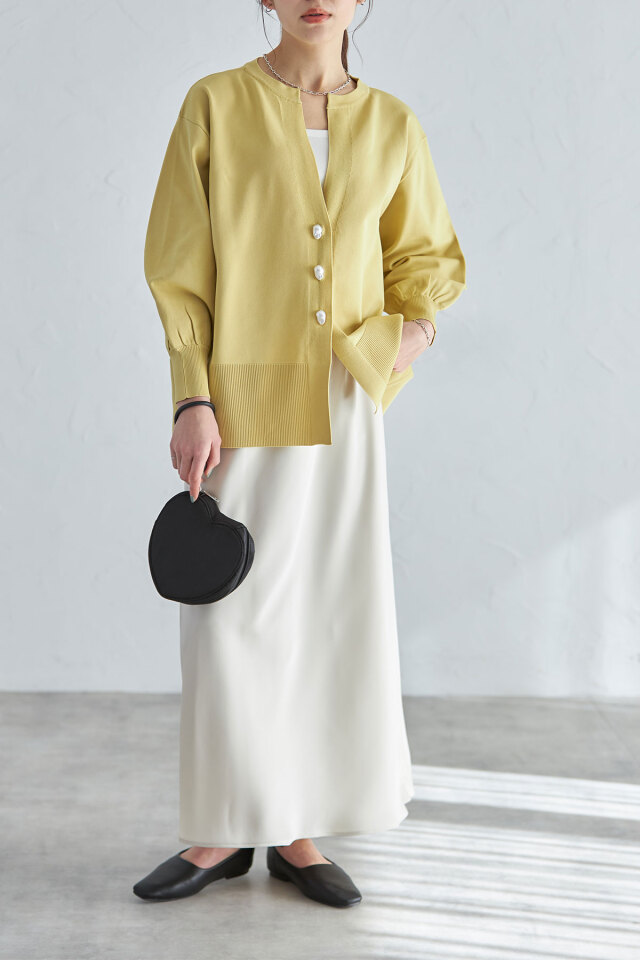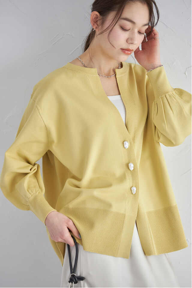 ニュアンスのあるバロックパールがポイント、バロックパールニットカーディガン