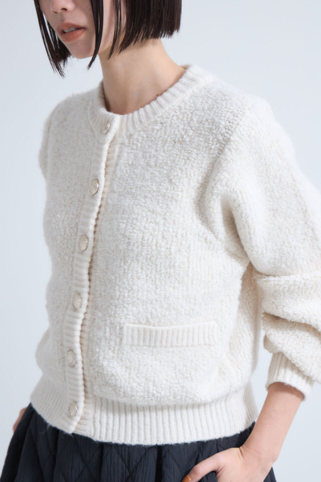 ふっくらしたプードル生地が高見えする、プードルニットカーディガン