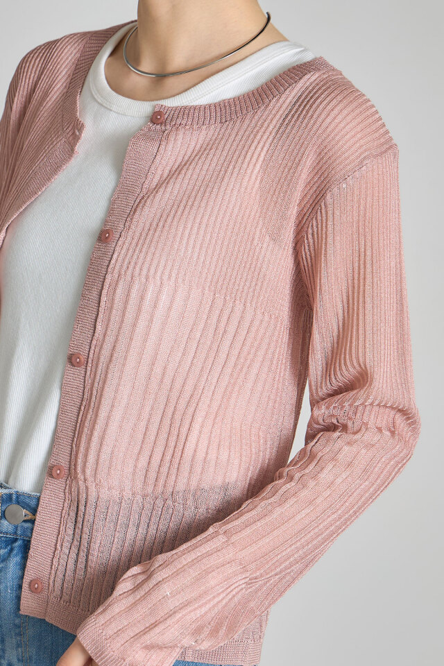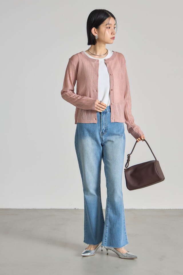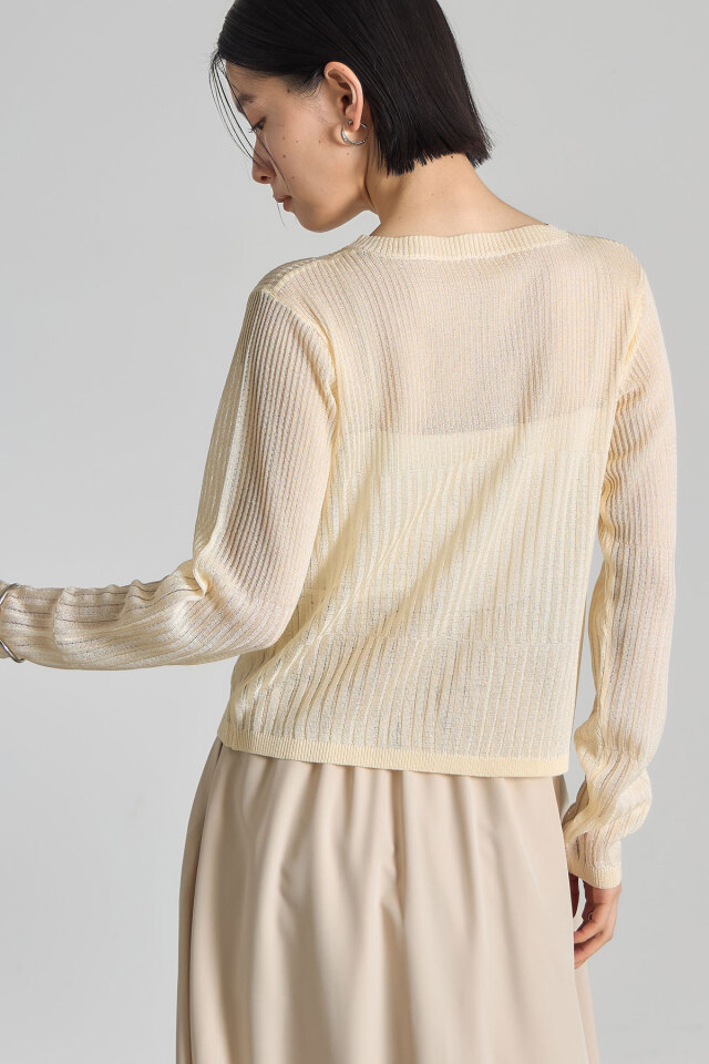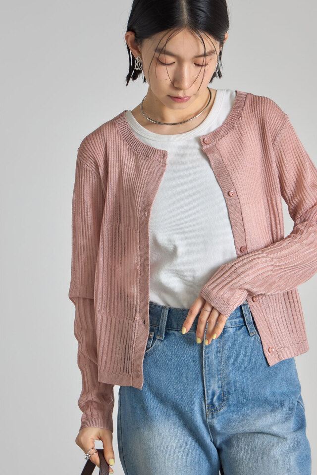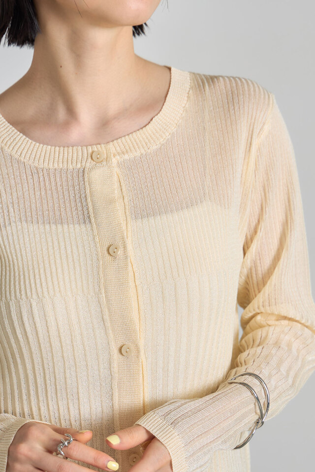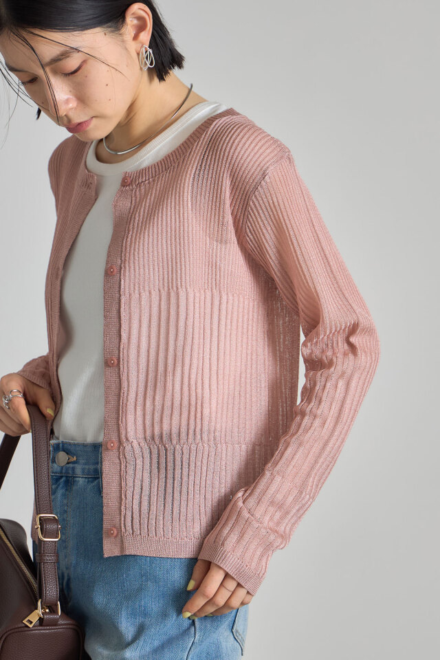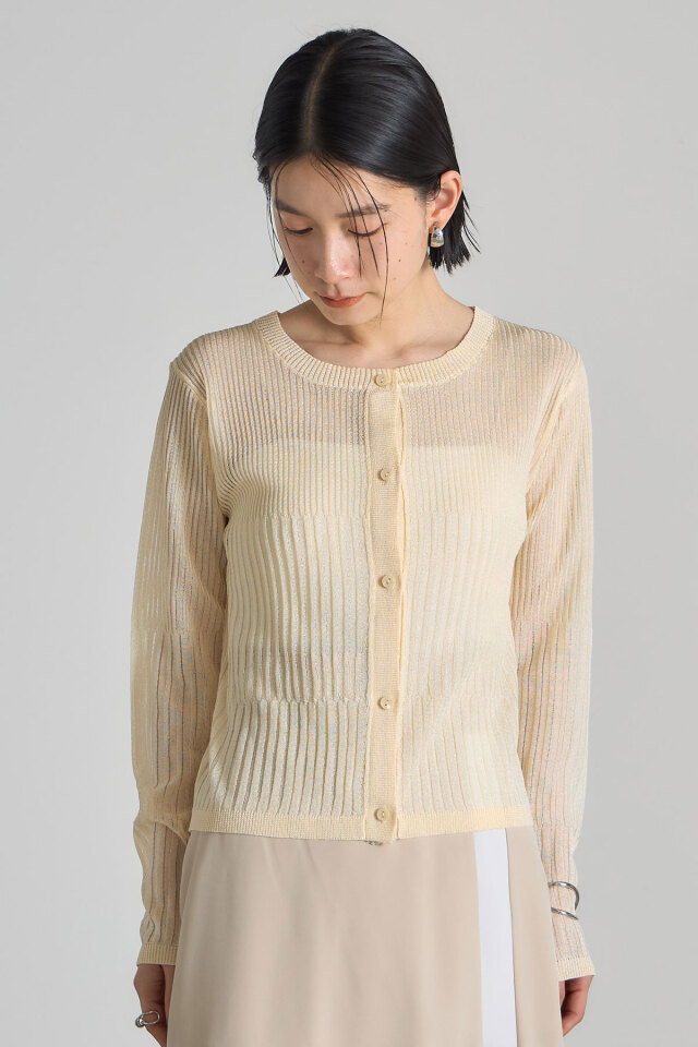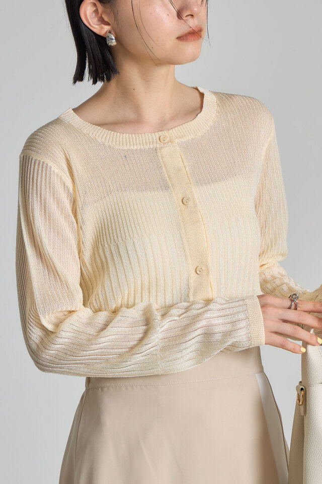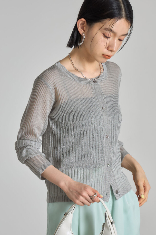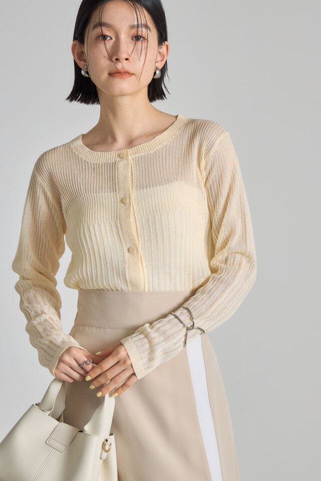 軽やかな透け感で、レイヤードスタイルをアップデートするシアーカーディガン