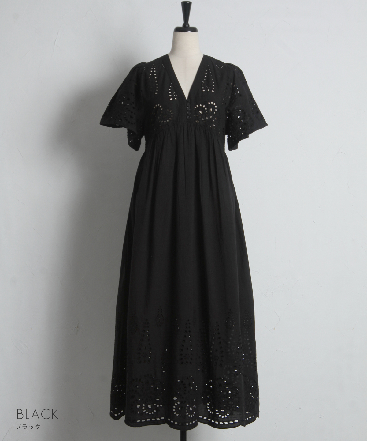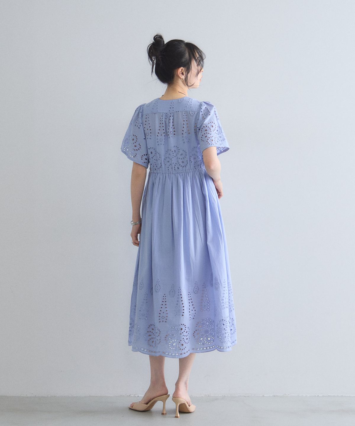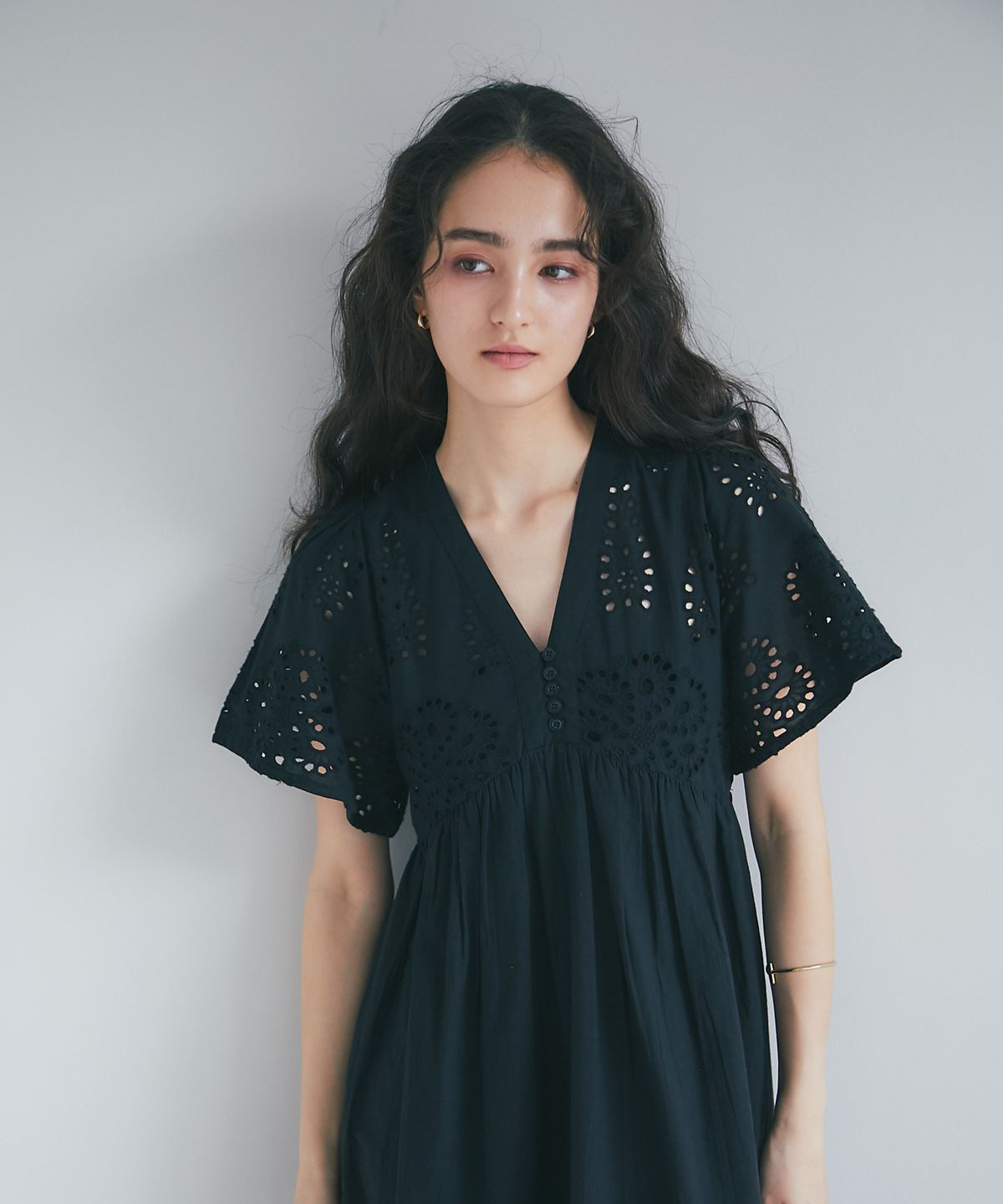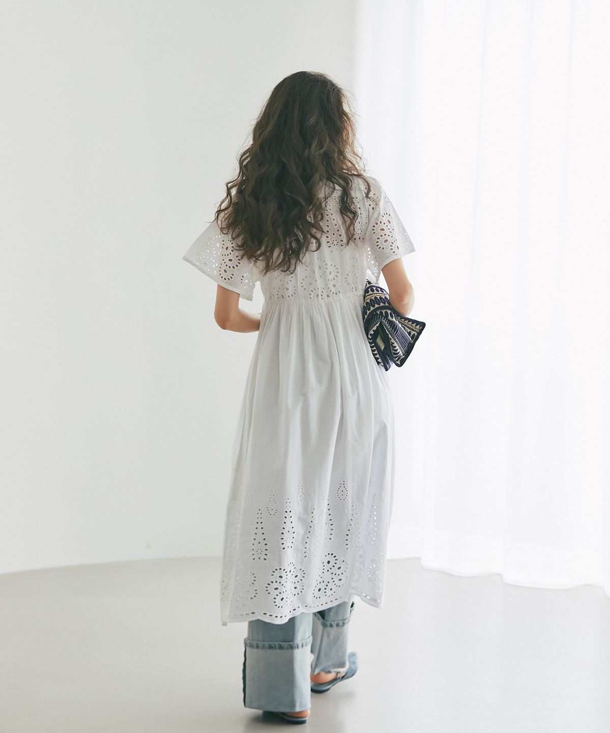 贅沢なコットンレースがリゾートムードを運ぶ、清涼感あふれるVネックワンピース。