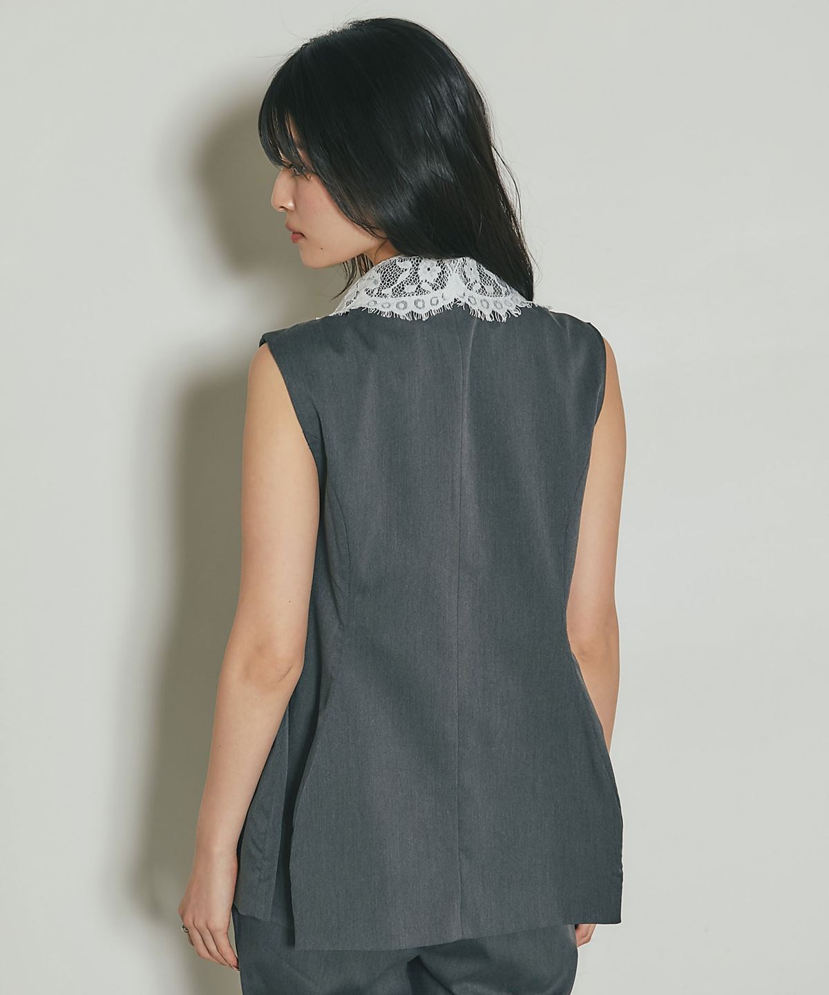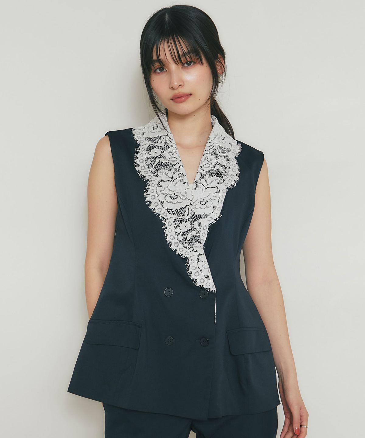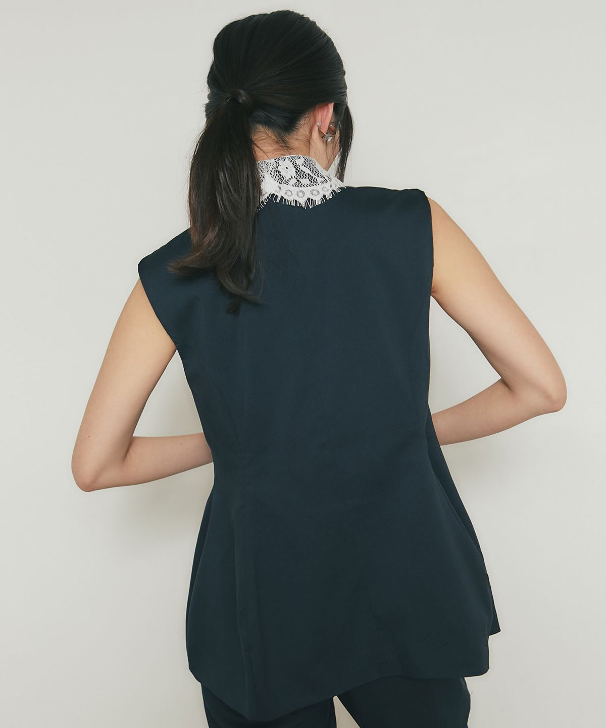 マニッシュなジレに甘美なエッセンスを添えた、大人の格上げアイテム。