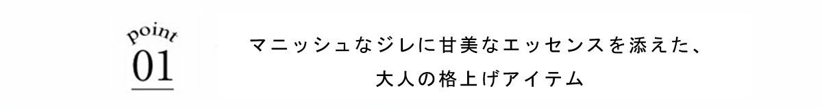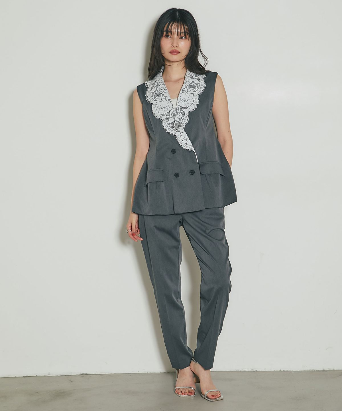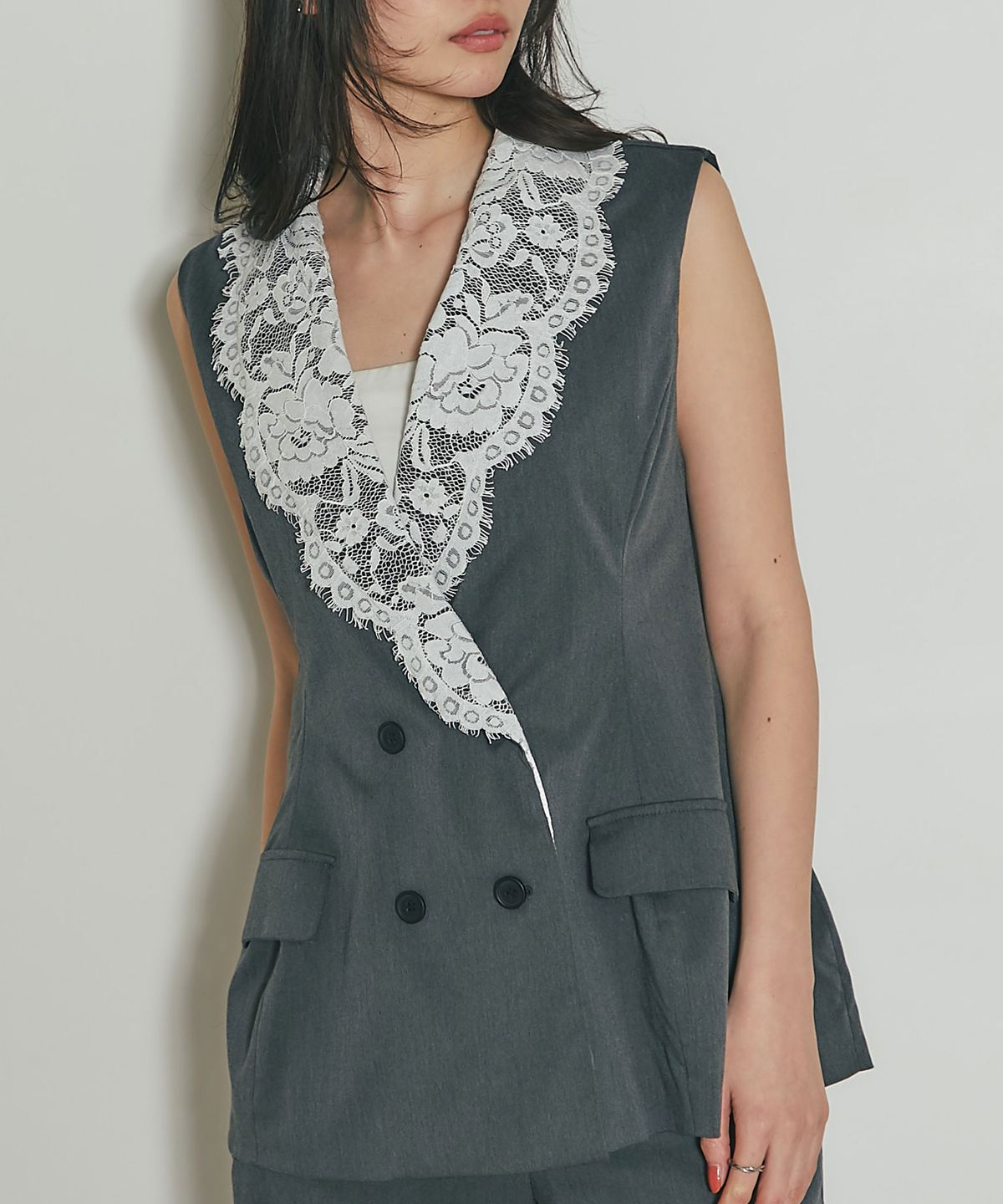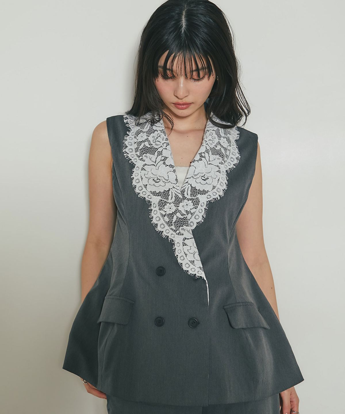 マニッシュなジレに甘美なエッセンスを添えた、大人の格上げアイテム。