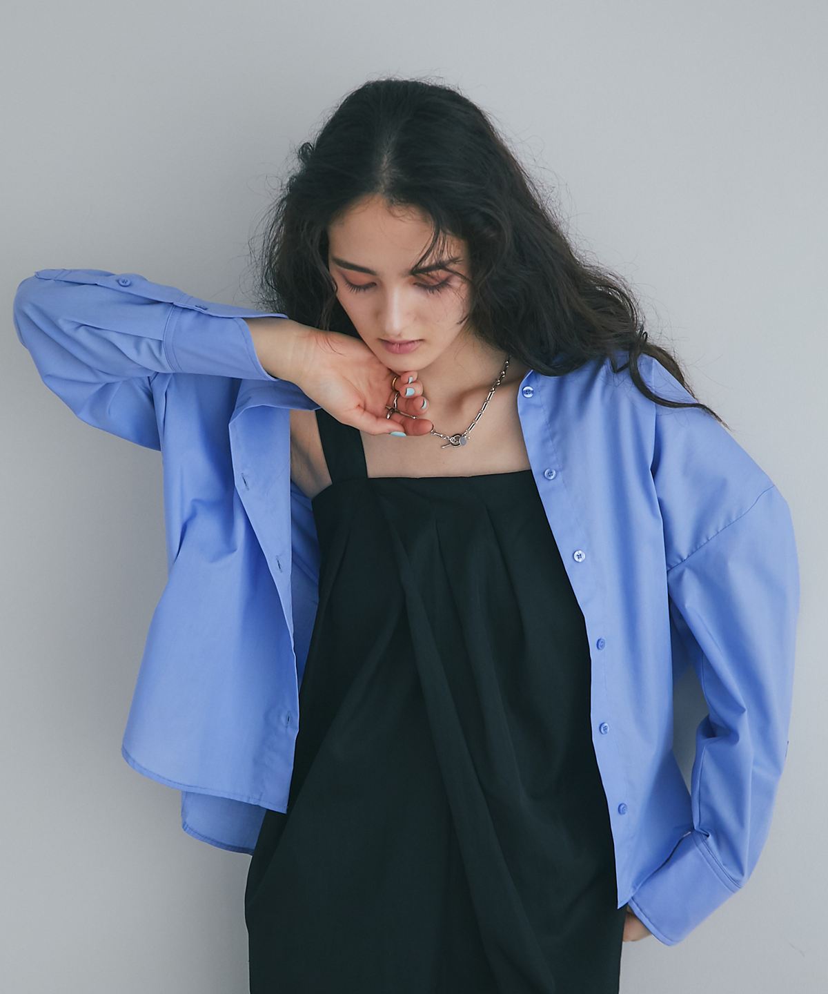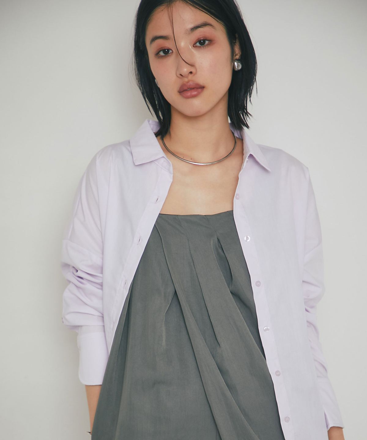 インナーにシアートップスやコンパクトなニットを合わせるだけで、デイリーから華やかなシーンまで幅広く着回せる、こなれ感たっぷりの一着です。